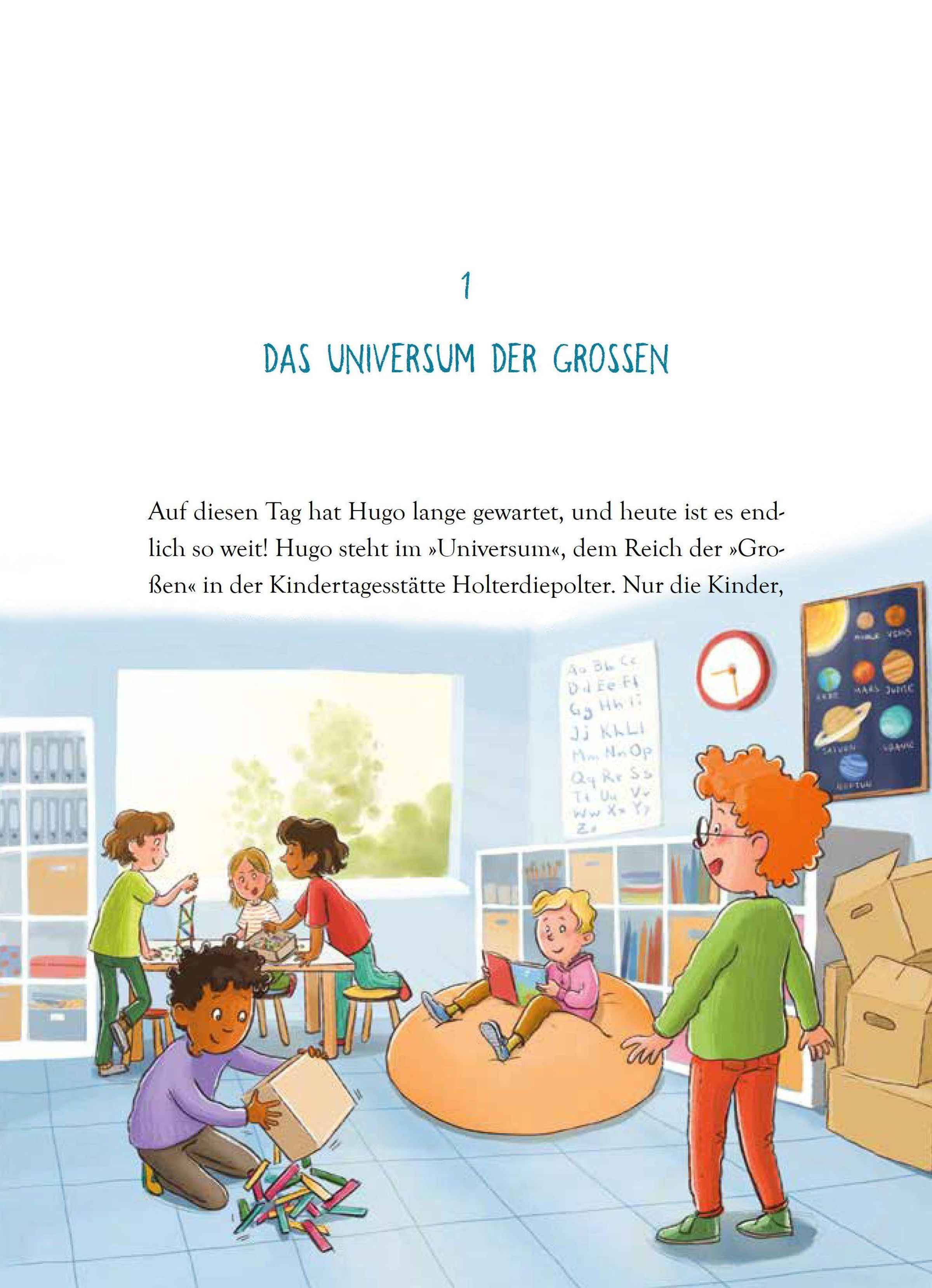 Für die "Großen" der Kita Holterdiepolter heißt es bald: Tschüss, Kindergarten! Bis dahin gibt es noch so viel zu erleben, wie den Ausflug zur Polizeiwache, bei dem Elif und Linus sich in ein echtes Polizeiauto setzen dürfen. Oder die Übernachtungsparty in der Kita. Und dann ist er da, der große Tag der Einschulung, und das Kribbeln im Bauch nimmt zu. Mit Schultüte und Ranzen geht es zur Feier und in die erste Schulstunde. Ob die anderen auch so aufgeregt sind? Am zweiten Schultag steht Hugo vor der Frage, wo eigentlich das Klo ist. Und was man in der Nachmittagsbetreuung alles erlebt. Eins ist sicher: In der Schule warten viele neue Freunde und eine Menge Spaß!