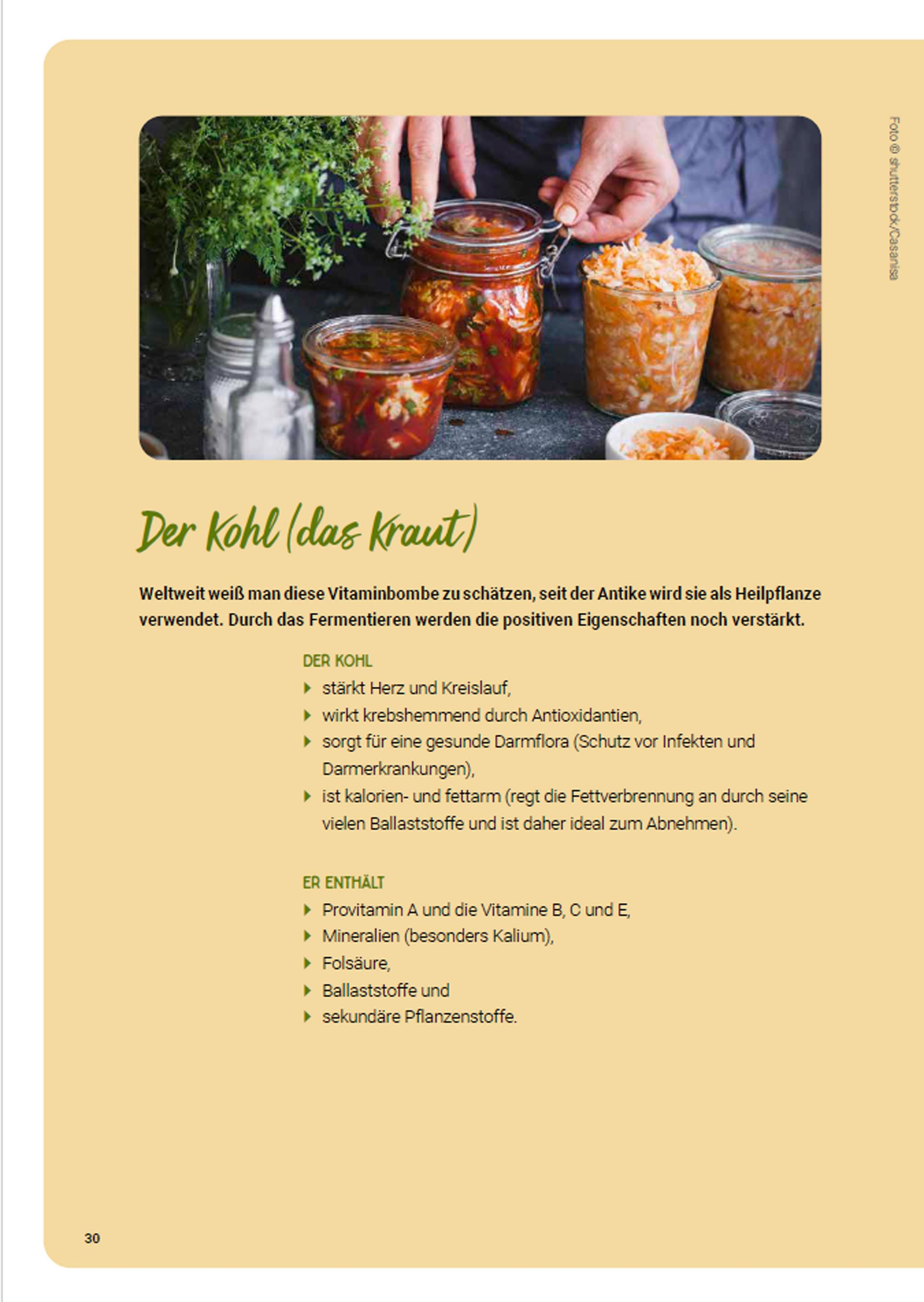 Fermentieren ist eine uralte Technik, seit Tausenden von Jahren werden Lebensmittel "milchsauer vergoren". Dadurch sind sie länger haltbar, bekömmlicher und gesundheitsfördernd. Die Heilkraft von fermentiertem Gemüse ist in vielen Kulturen bekannt, da es für eine gesunde Darmflora sorgt. Fermentierte Lebensmittel stärken unsere Abwehrkräfte und schützen vor vielen Krankheiten. Durch das Fermentieren werden zudem neue Geschmackserlebnisse geschaffen, denn durch kreativen Einsatz von Kräutern, Gewürzen und Zutaten können immer neue Rezepte entstehen. Die Autorin bringt auch Menschen ohne Vorkenntnisse die Einfachheit des Fermentierens näher. Nach einer kompakten allgemeinen Einleitung und Informationen zu den positiven gesundheitlichen Auswirkungen fermentierter Lebensmittel finden sich 30 Rezepte für das Fermentieren einheimischer Gemüseklassiker mit exotischen (asiatischen) Gewürzzugaben.