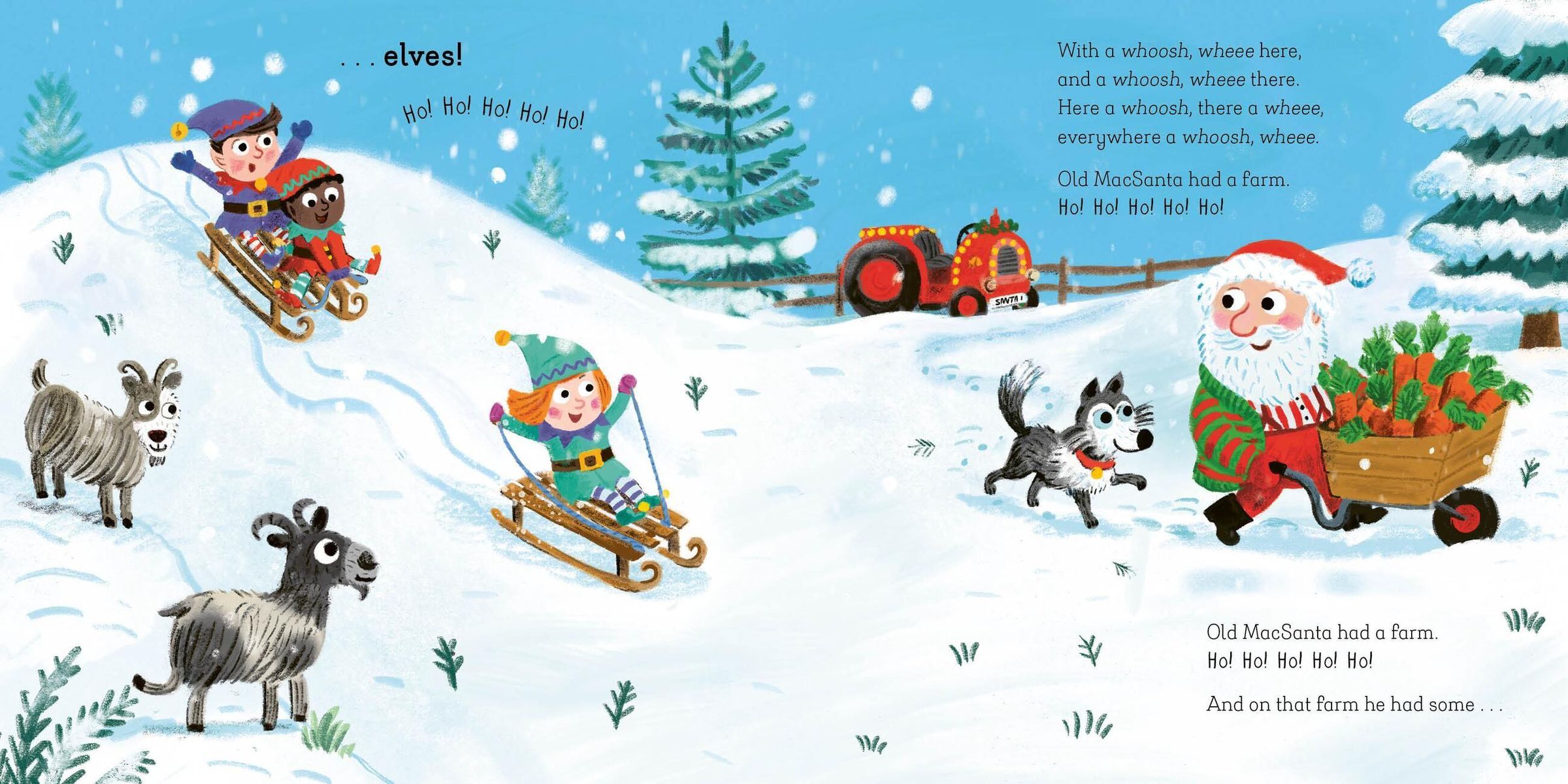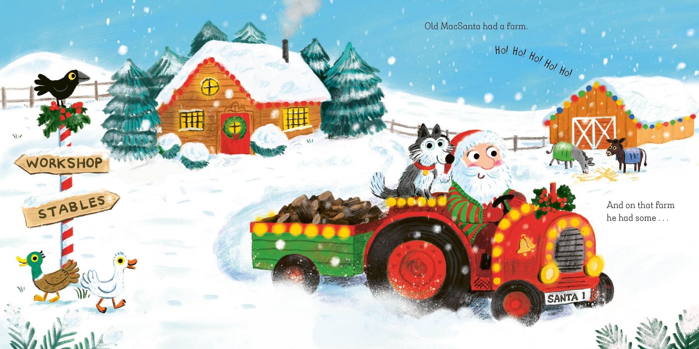 Old MacSanta had a farm. Ho! Ho! Ho! Ho! Ho! And on that farm he had . . . elves, reindeer, a snowman, a tree, bells, cookies, and presents! Join Santa as he prepares for Christmas Eve in this festive picture book with a playful text from Katrina Charman and quirky illustrations from award-winning Georgie Birkett.