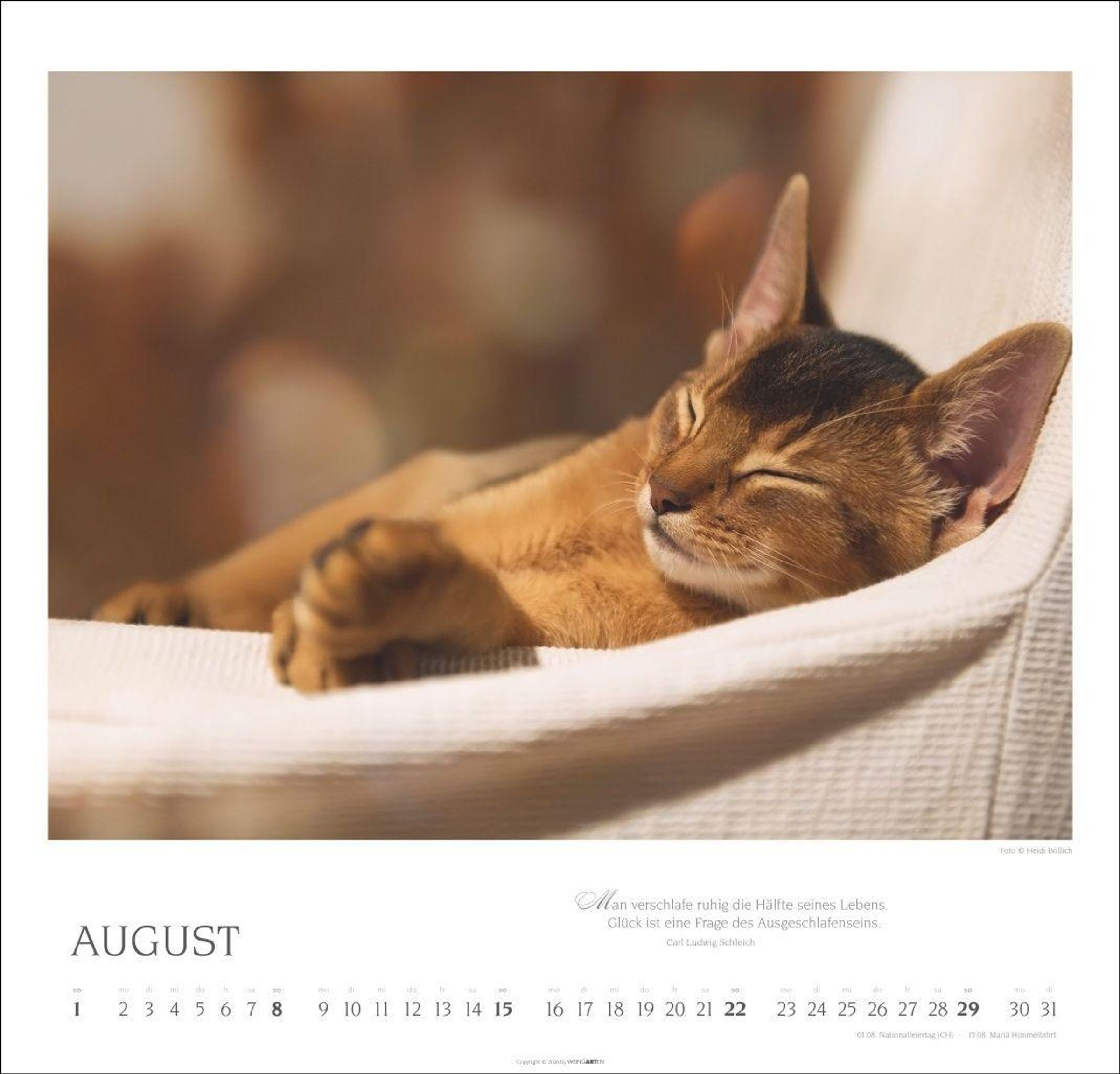 Monat für Monat mit Eleganz auf Samtpfoten: Katzen-Kalender mit anmutigen Fotografien und Zitaten berühmter Katzenfreund: innen