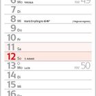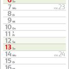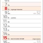Kalendarium auf Deutsch mit hervorgehobenen Sonn- und Feiertagen für D, A und CH