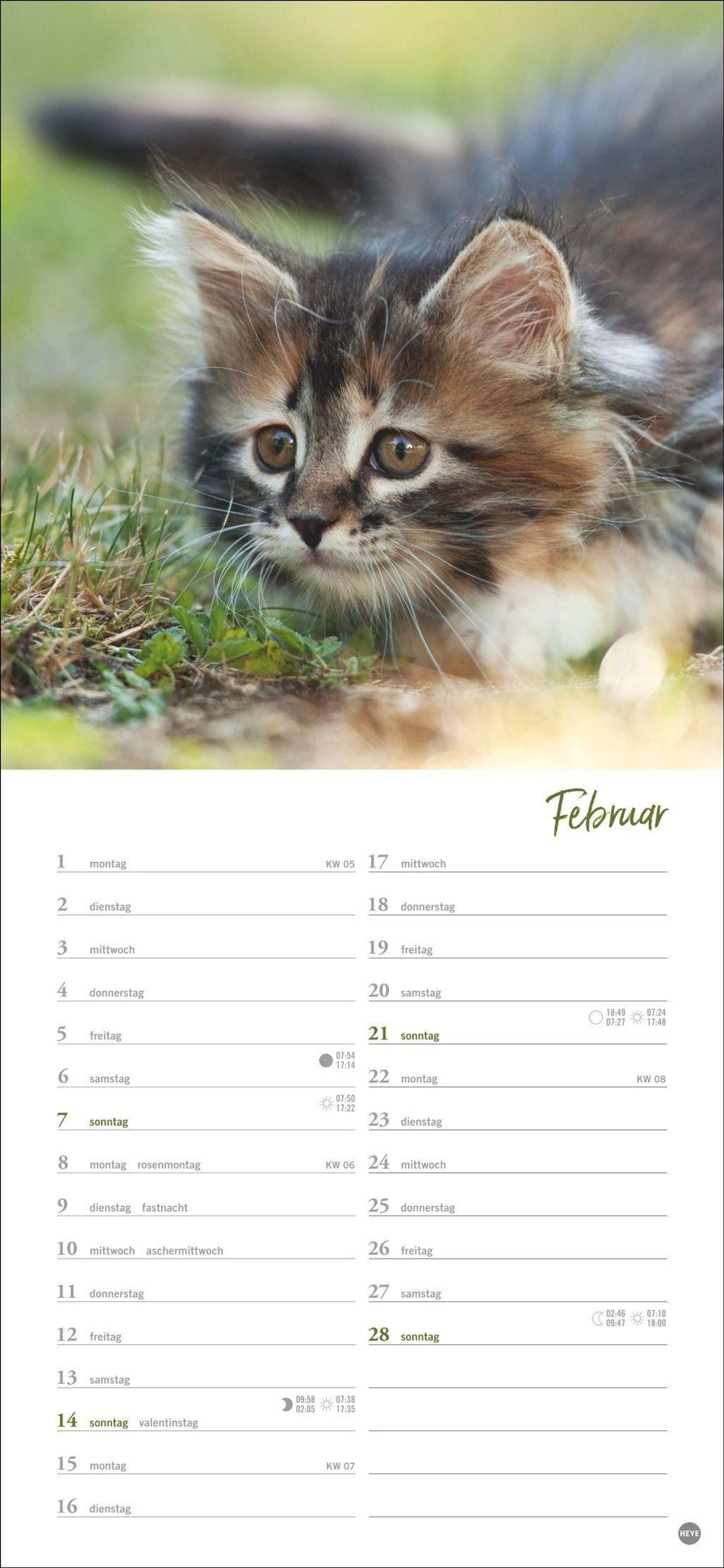Bühne frei für verschmuste Miezen auf vier Pfoten: länglicher Kalender mit anmutigen Aufnahmen junger Kätzchen