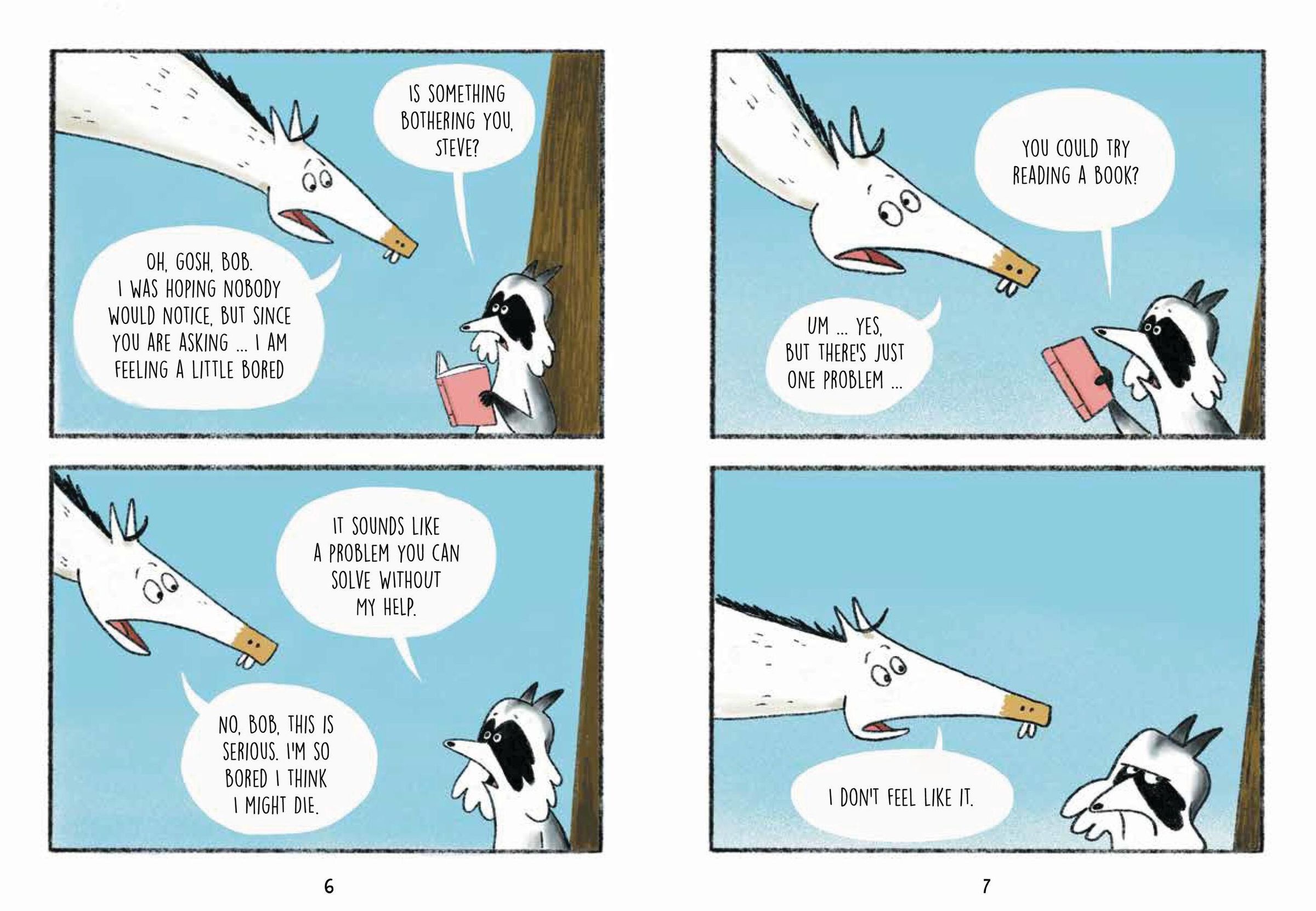 Steve has come up with just the thing to relieve his excruciating boredom: an expedition! He's going to discover a new land! He'll call it Steve-topia. Or, maybe, Steve-ville. If he leaves now, he can be back in time for dinner. Sure, his best friend Bob the raccoon has reason to be concerned, since Steve's never been on an expedition before and hasn't even packed supplies. But as anyone will tell you, Steve has an adventurous spirit - what more could he need?