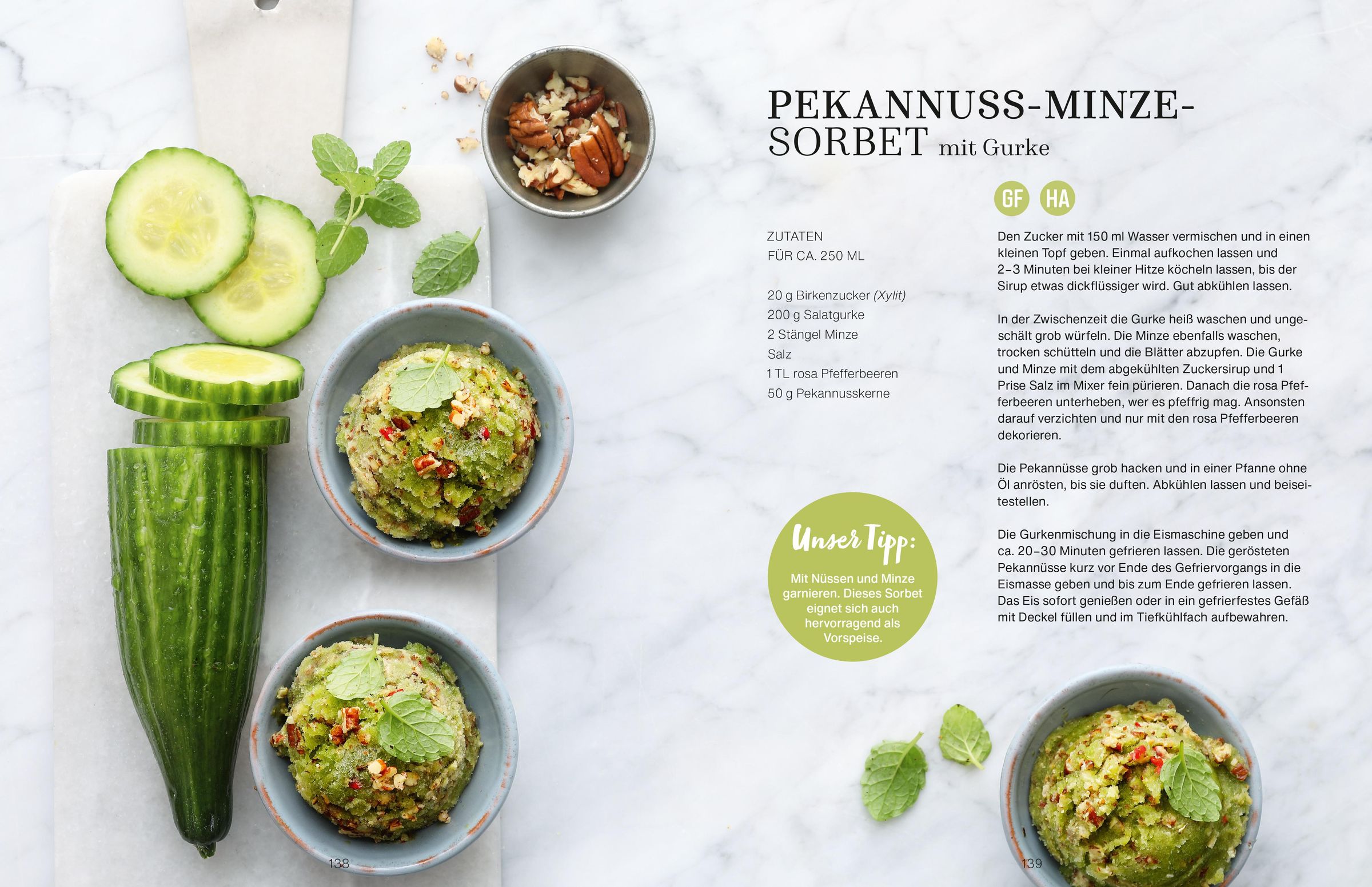 Pistazie, Amarena oder Haselnuss - wäre es nicht schön, wenn es die geliebte Eisgeschmacks-Kombi nicht nur im Sommer gäbe, sondern auch im Winter, zum Beispiel als knusprigen Keks oder Energy Ball? Gibt es. Sogar vegan und für alle, die es mal im Bauch zwickt, weil sie unter einer Nahrungsmittelunverträglichkeit leiden. In diesem Buch verrät Kerstin Pooth über 60 Eis- und Sweetsrezepte, die jedes Süßhunger-Verlangen auf gesunde Weise stillen - immer auf pflanzlicher Basis und ohne raffinierten Zucker. Jedes Rezept ist außerdem gekennzeichnet, ob es bei einer Glutenunverträglichkeit, einer Histamin- oder Lactoseintoleranz geeignet ist. Damit Eis, Cookie & Co. nicht nur der Seele, sondern auch dem Bauch guttun. Eis ohne Milch? Kekse ohne Weizenmehl? Geht das überhaupt? Schmeckt das dann noch? Klar geht das, zum Beispiel dank reifer Früchte, dunkler Schokolade und Birkensüße. Dazu gibt es eine Menge Informationen, worauf man bei der Herstellung von veganen Naschereien bei einer Nahrungsmittelunverträglichkeit, der Aufbewahrung und der Haltbarkeit achten muss.