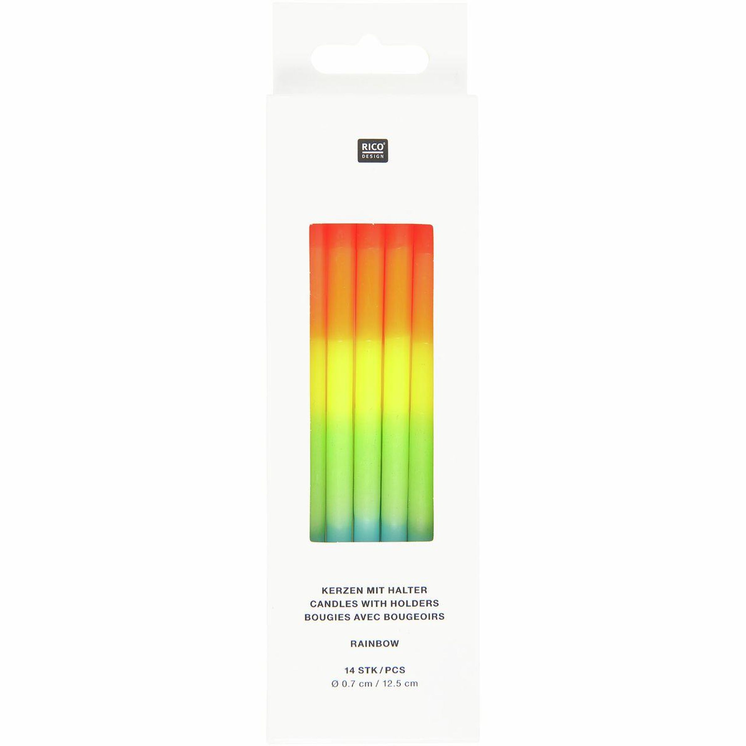 - Inhalt: Set mit 14 Kerzen im Regenbogen-Design