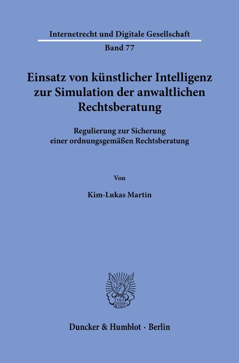 Kim-Lukas Martin: Einsatz von künstlicher Intelligenz zur Simulation der anwaltlichen Rechtsberatung, Gebunden