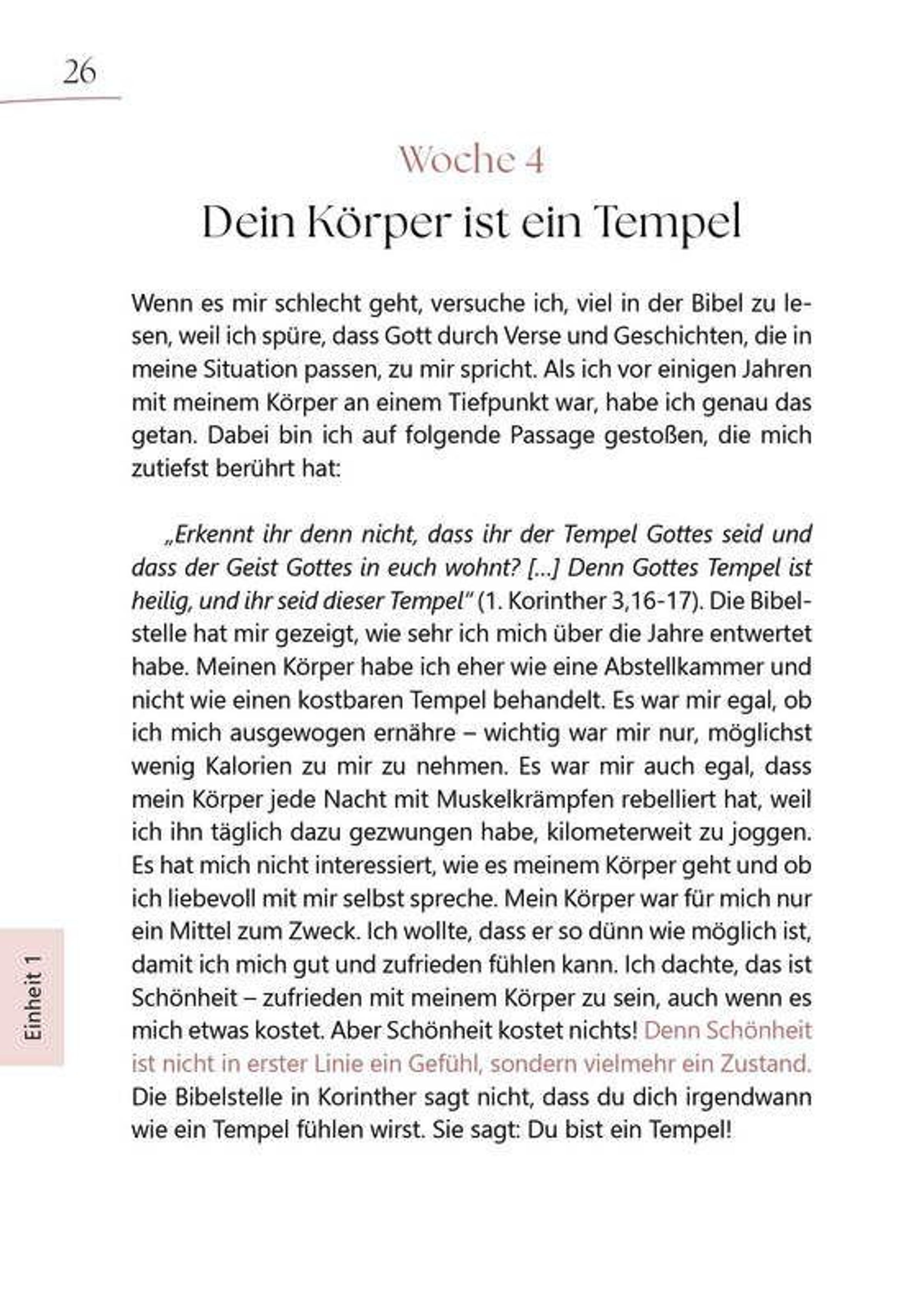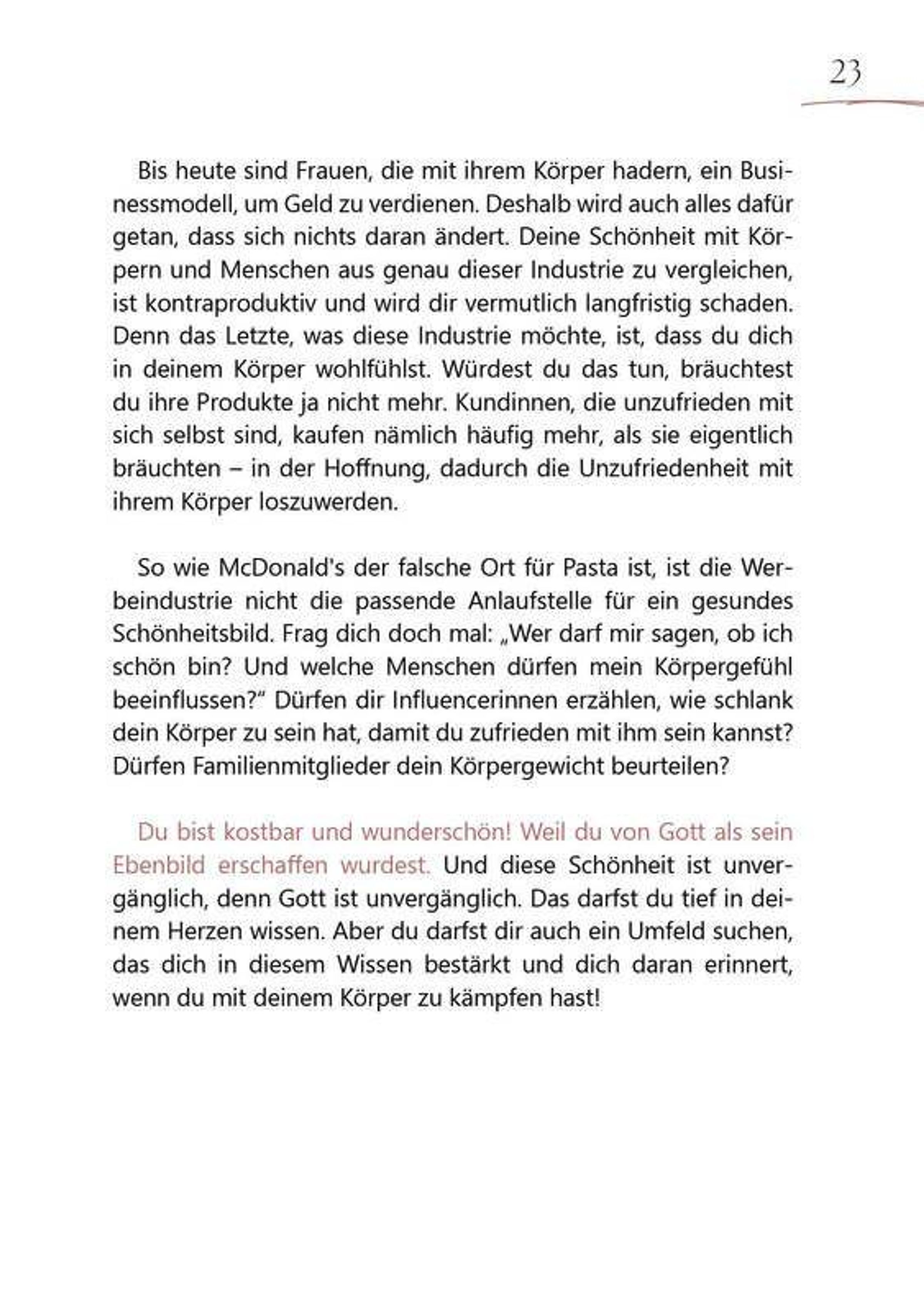 Kira Geiss veröffentlicht ihr neues Buch, das eine zentrale Botschaft enthält: Du bist wunderschön und wertvoll - genau so, wie Gott dich geschaffen hat! Zeitgemäß gestaltet, kombiniert es persönliche Impulse der Autorin mit ermutigenden Bibelversen und exklusiven Videobotschaften christlicher Influencerinnen, die über QR-Codes auf dem Handy abrufbar sind. Zusätzlich bietet das schöne Innenlayout viel Platz für eigene Gedanken. Gerade diese authentische Mischung spricht Mädchen und junge Frauen an, die auf der Suche nach Identität, Halt und Selbstwert sind - unabhängig von kirchlicher Sozialisation. Ob als Geschenk, Mutmachimpuls oder Einstieg in den Glauben: Dieses feminin und edel gestaltete Buch begegnet Leserinnen auf Augenhöhe und spricht ihnen zu: Dein Wert hängt nicht von Leistung, Aussehen oder Meinungen anderer ab. Gottes bedingungslose Liebe und seine Gnade schenken dir deine Identität und deinen unwiderruflichen Status als geliebte Tochter.