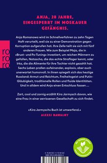 Zart und cool, rau und zornig erzählt Kira Jarmysch davon, wie eine Frau in einer zerrissenen Gesellschaft zu sich findet, erzählt von Willkür und Repression, Freiheit und Aufbruch - mit der Kraft und Wucht einer neuen Generation, der trotz allem die Zukunft gehört.