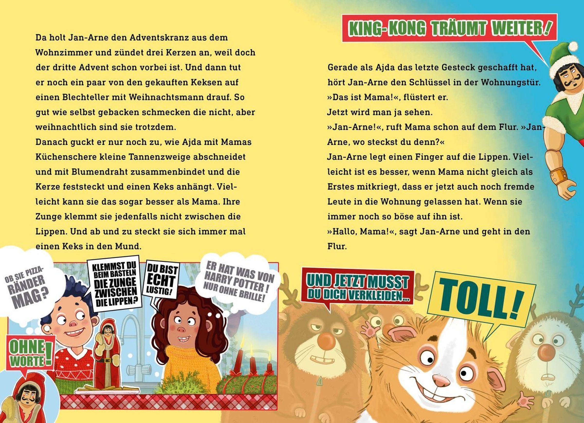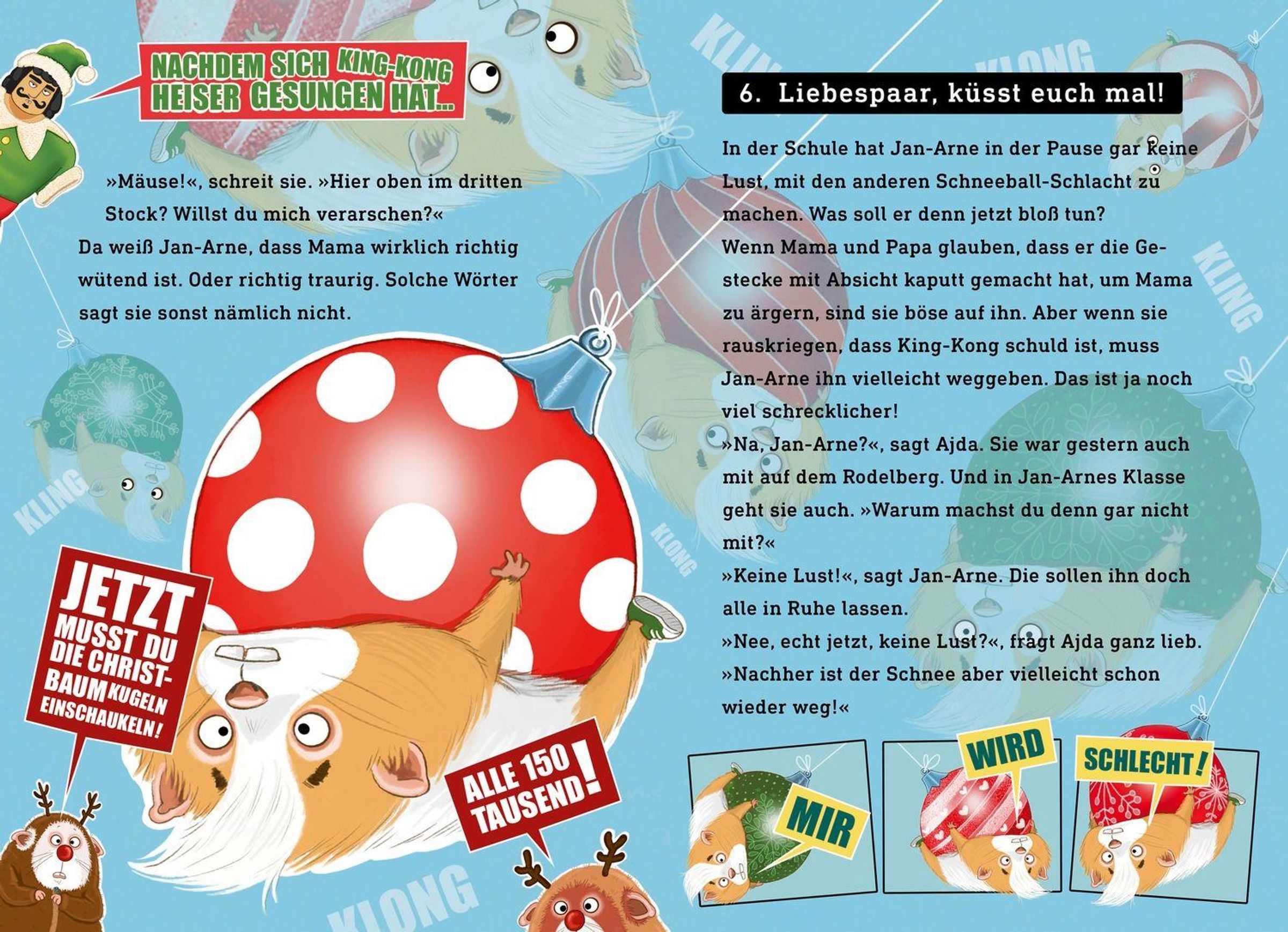 Das kleine Meerschweinchen King-Kong sorgt für allerlei Trubel, besonders zur Weihnachtszeit. Der erste Schnee, Mamas leckere Plätzchen, Rodeln mit Michi ... Weihnachten kann kommen, findet Jan-Arne. Aber dann sind die Adventsgestecke, die seine Mutter für die Kegelclub-Weihnachtsfeier vorbereitet hat, plötzlich ganz zerrupft. Das war doch nicht etwa King-Kong, Jan-Arnes Meerschweinchen?