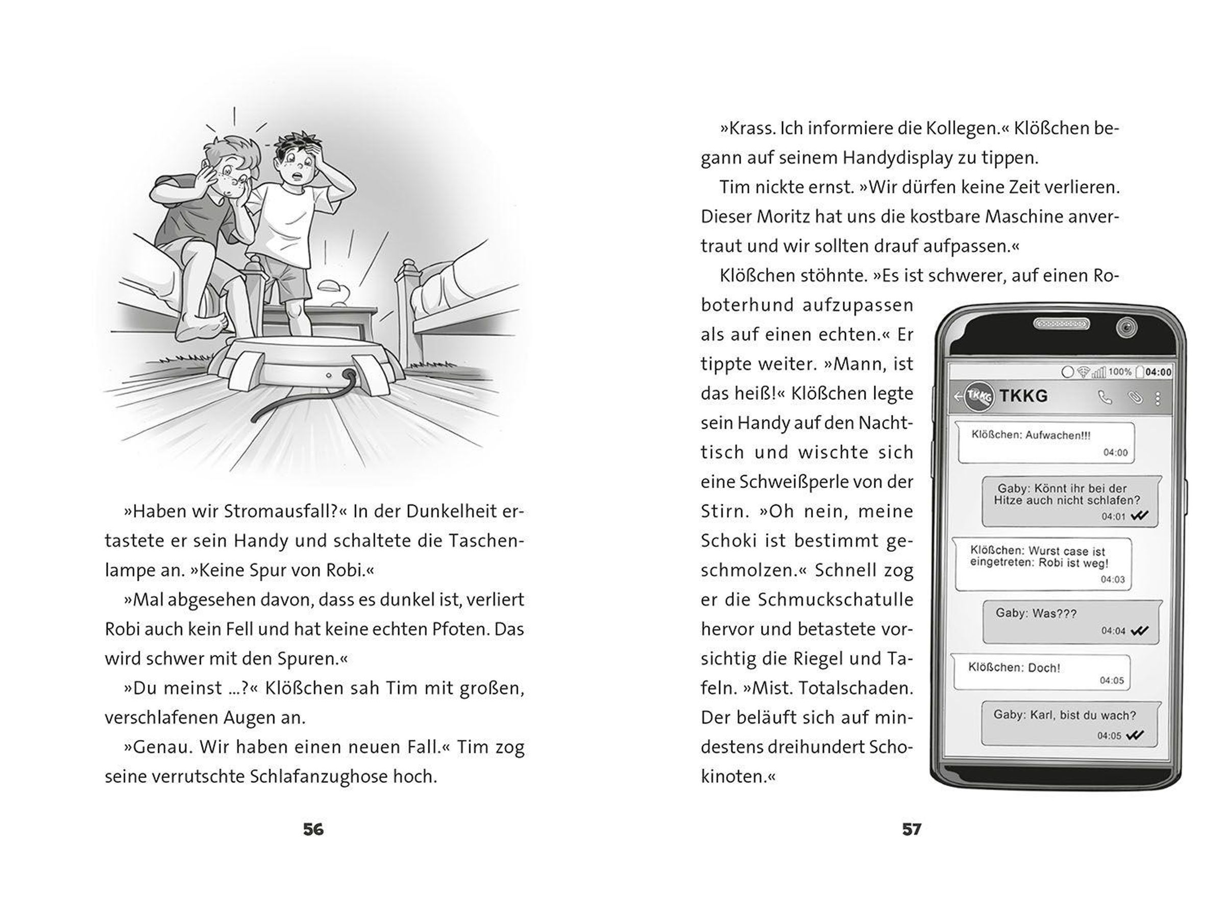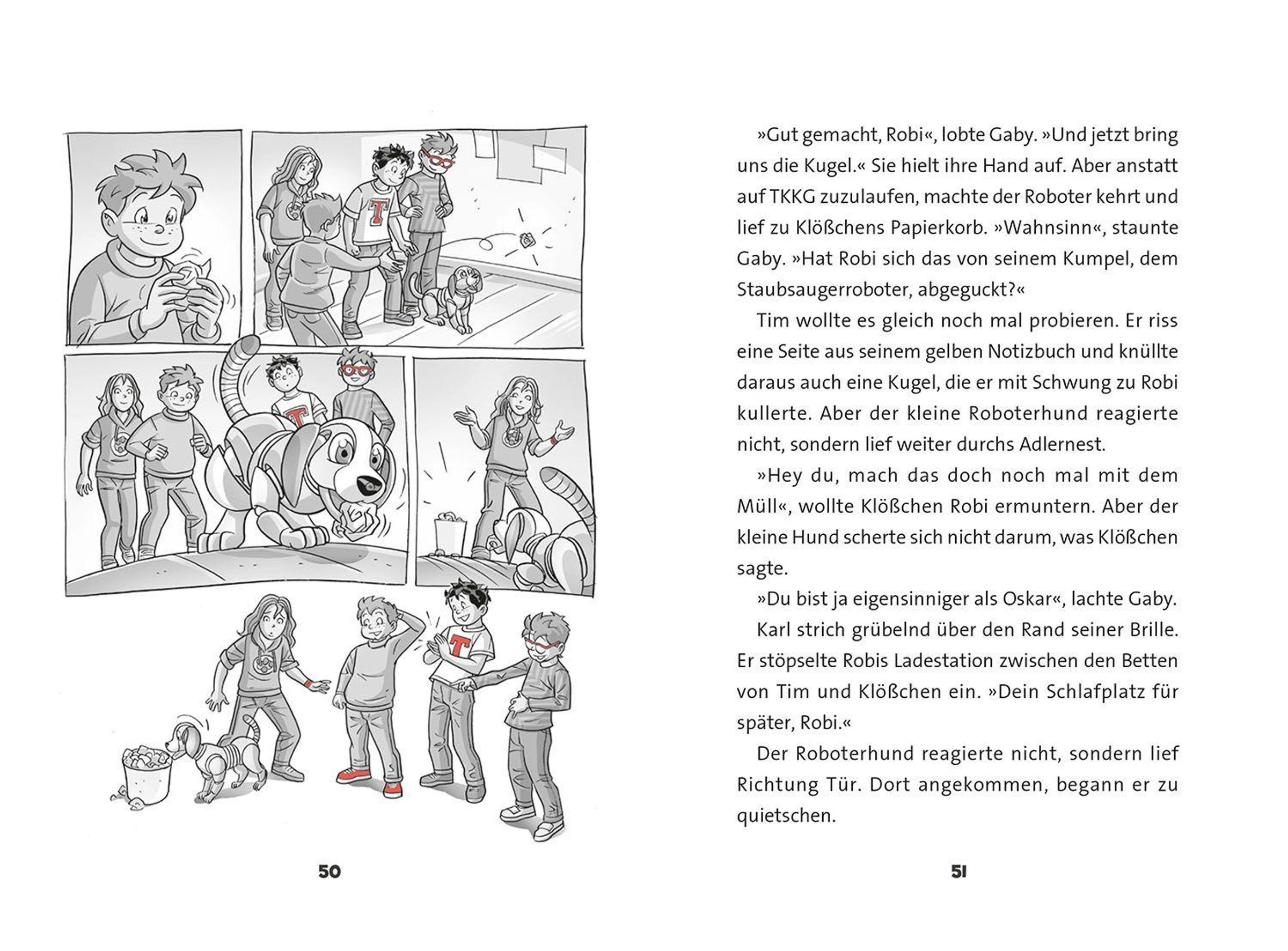 Tim, Karl, Klößchen und Gaby sind ganz aufgeregt: Sie dürfen den neuen Roboterhund Robi ausprobieren! Doch die Freude hält nicht lange an, denn plötzlich verschwindet der kleine Roboter spurlos aus dem Adlernest. Als dann noch weitere Gegenstände aus dem Internat verschwinden und der Schulcomputer gehackt wird, steht für TKKG fest: Hier steckt mehr dahinter! Ein rasanter und actiongeladener Kriminalfall mit vielen farbigen Illustrationen für alle Detektivfans ab 7 Jahren.