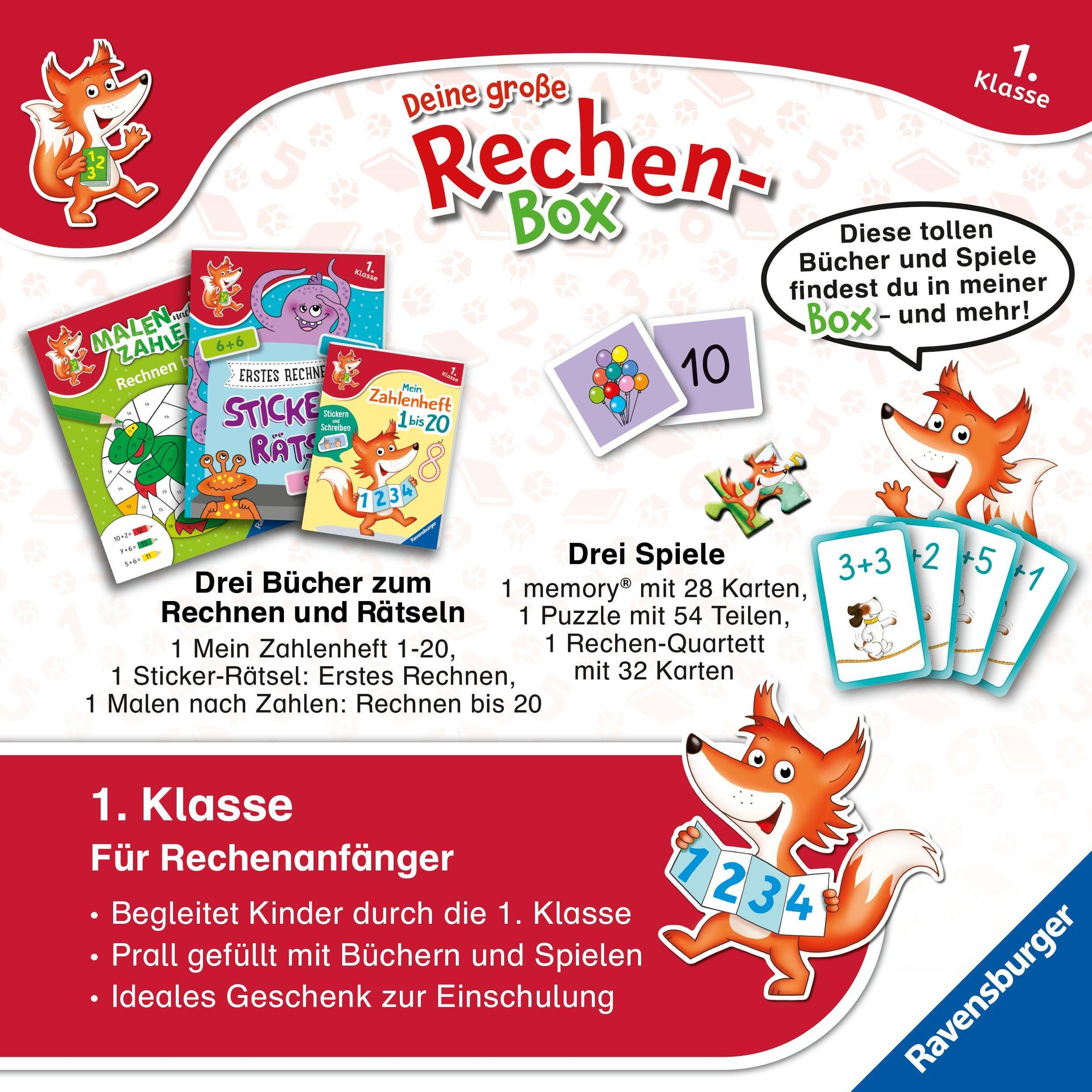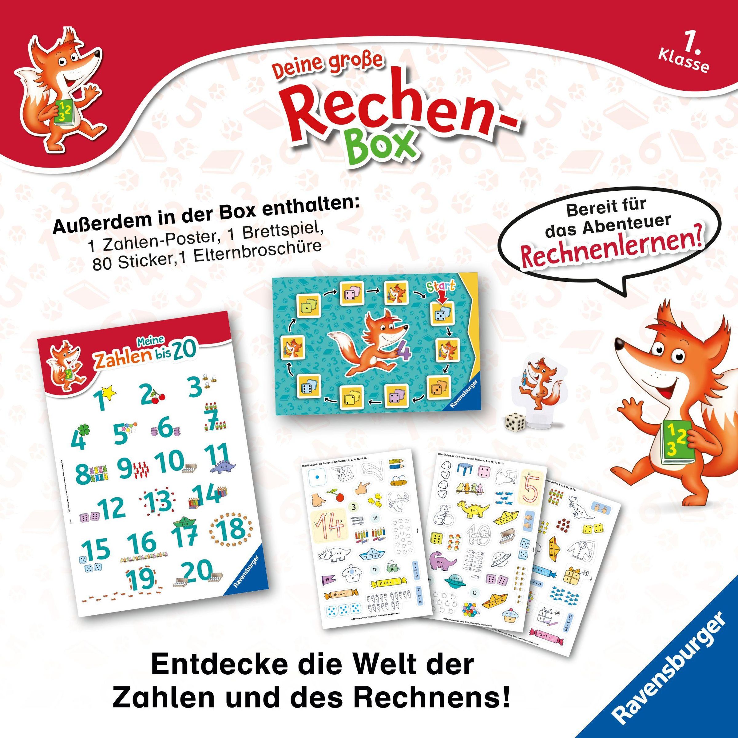 Endlich Schulkind! Bereit für das Abenteuer Rechnenlernen? Der Rechenfuchs zeigt Erstklässlern Zahlen bis 20 und erste einfache Rechnungen. Spielerisch führt er die Kinder in die Welt der Zahlen ein. Die hochwertige Box enthält tolle Rätsel, Sticker, lustige Spiele und ein Puzzle. Sie begleitet die Kinder durch die gesamte 1. Klasse. So wird Rechnenlernen zum Kinderspiel!