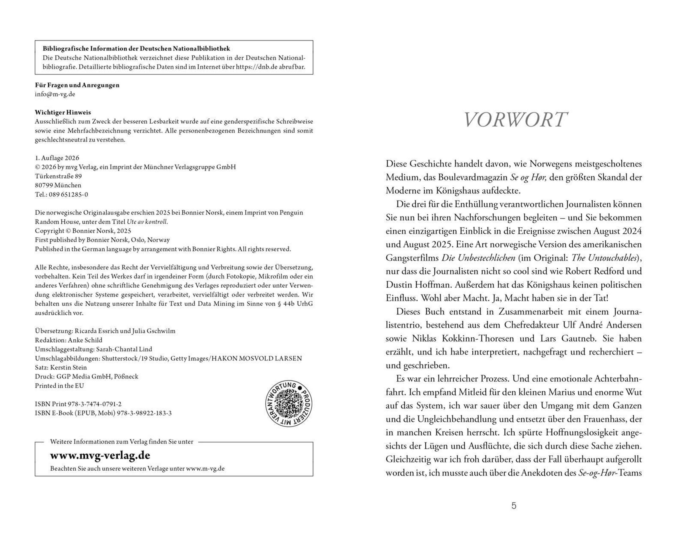 Der Skandal um Marius Borg Høiby, Sohn der norwegischen Kronprinzessin Mette-Marit, erschüttert Land, Leute und die Weltöffentlichkeit: 2026 steht er wegen sexueller Übergriffe und Körperverletzung vor Gericht. Die Reporter von Norwegens größter Boulevard-Zeitschrift Se og Hør enthüllen, wie die Royals durch ein System aus Schweigen, Medienmacht und Privilegien geschützt wurden. Interviews, Leaks und eine Familiengeschichte voller Gewalt - von den Vorfahren bis zum aktuellen Prozess - machen das Buch zum brisanten True-Crime-Report[BR1] und schonungslosen Blick hinter die royale Fassade Norwegens - hochaktuell, brisant und von größter gesellschaftlicher Relevanz.