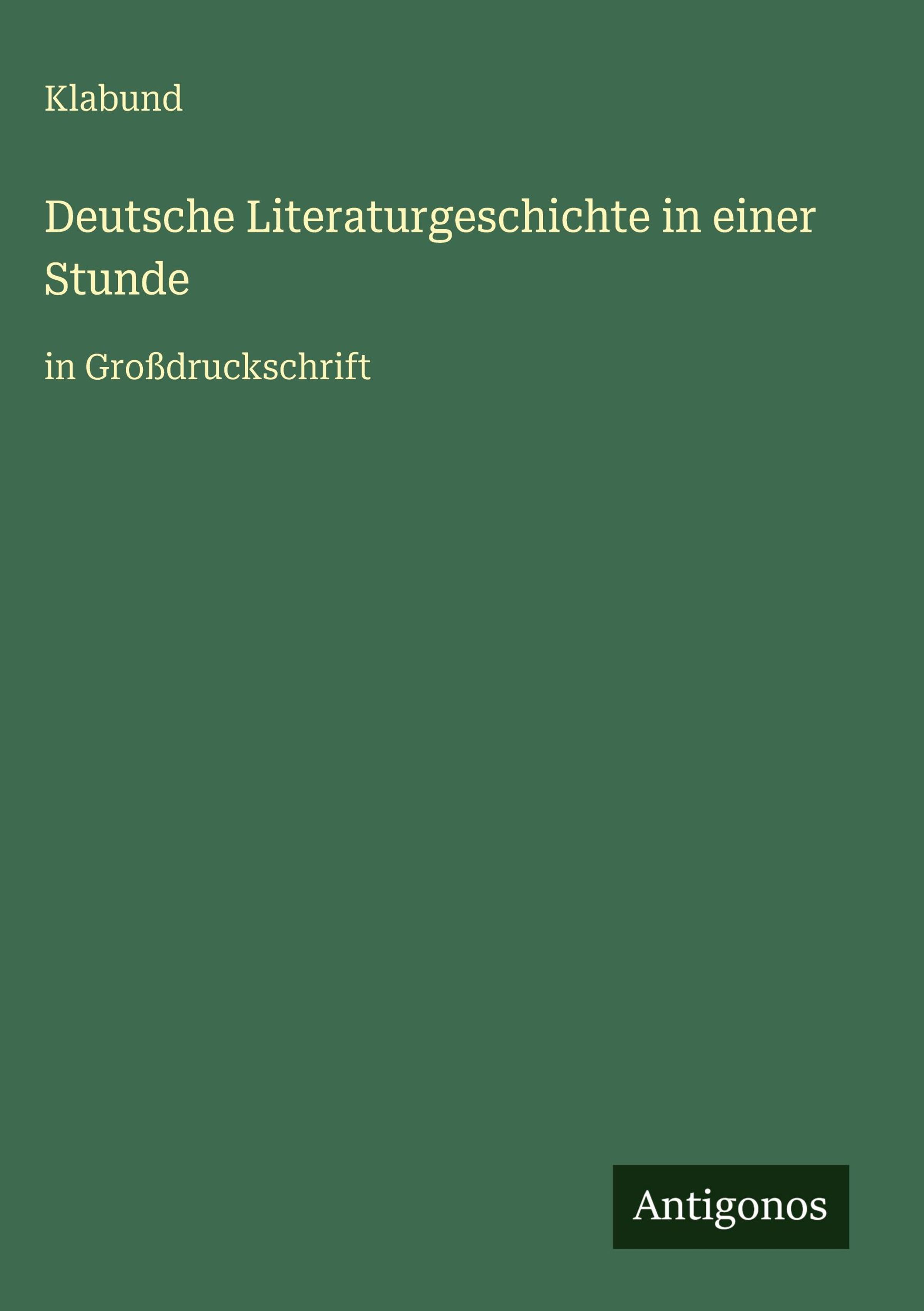 Klabund: Deutsche Literaturgeschichte in einer Stunde, Buch