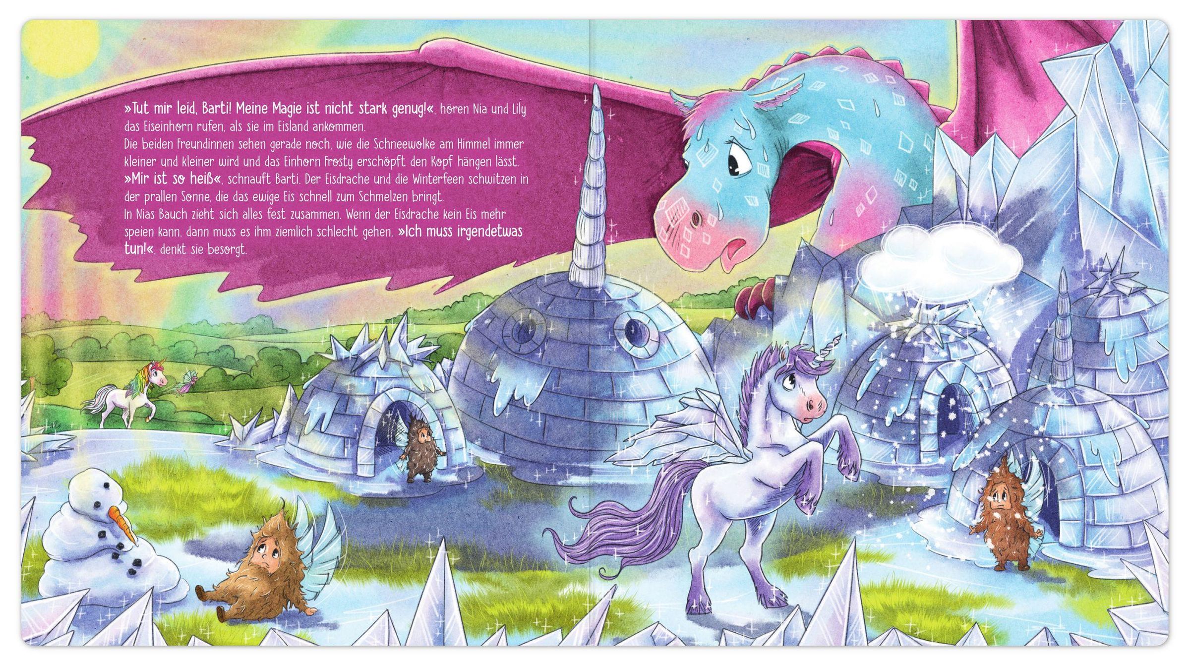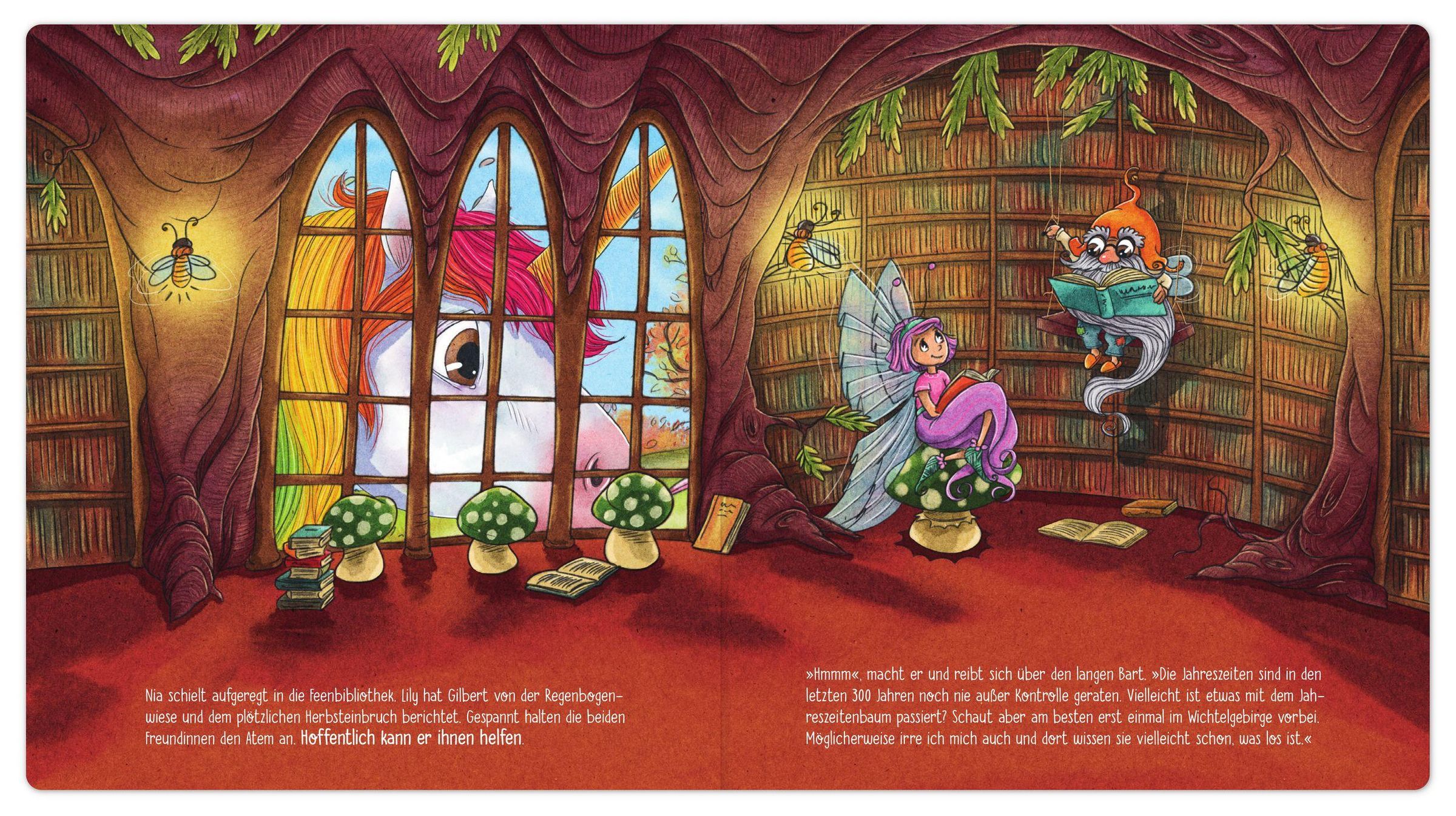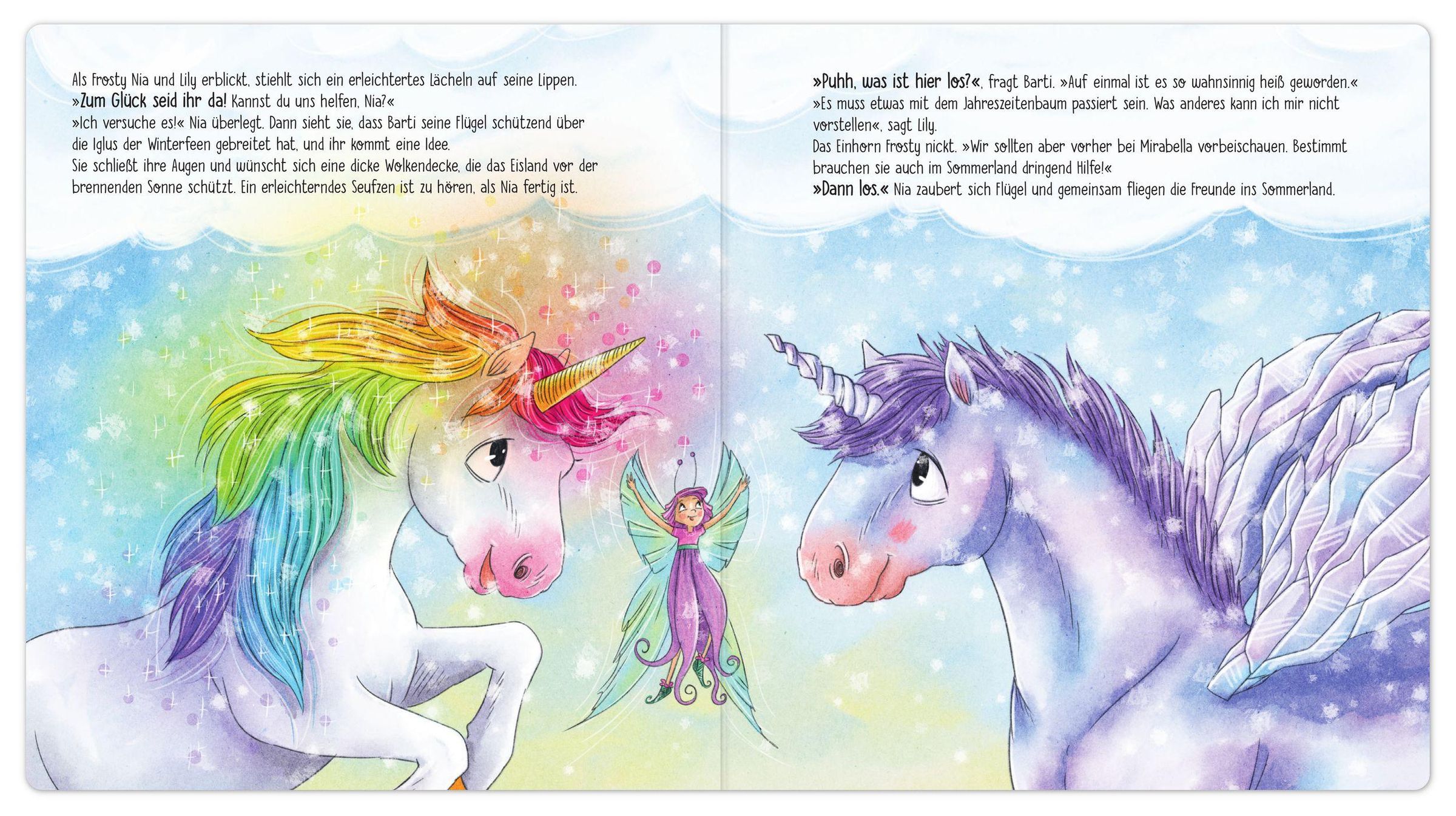 Im Einhorn-Land geht plötzlich alles drunter und drüber: goldene Blätter im Frühling, Hitze im Winter - was ist bloß los? Entschlossen machen sich Einhorn Nia und Fee Lily auf den Weg, um herauszufinden, was passiert ist, und ihren Freunden zu helfen. Auf ihrer abenteuerlichen Reise lernen sie, wie wichtig Zusammenhalt, Freundschaft und gegenseitige Unterstützung sind.