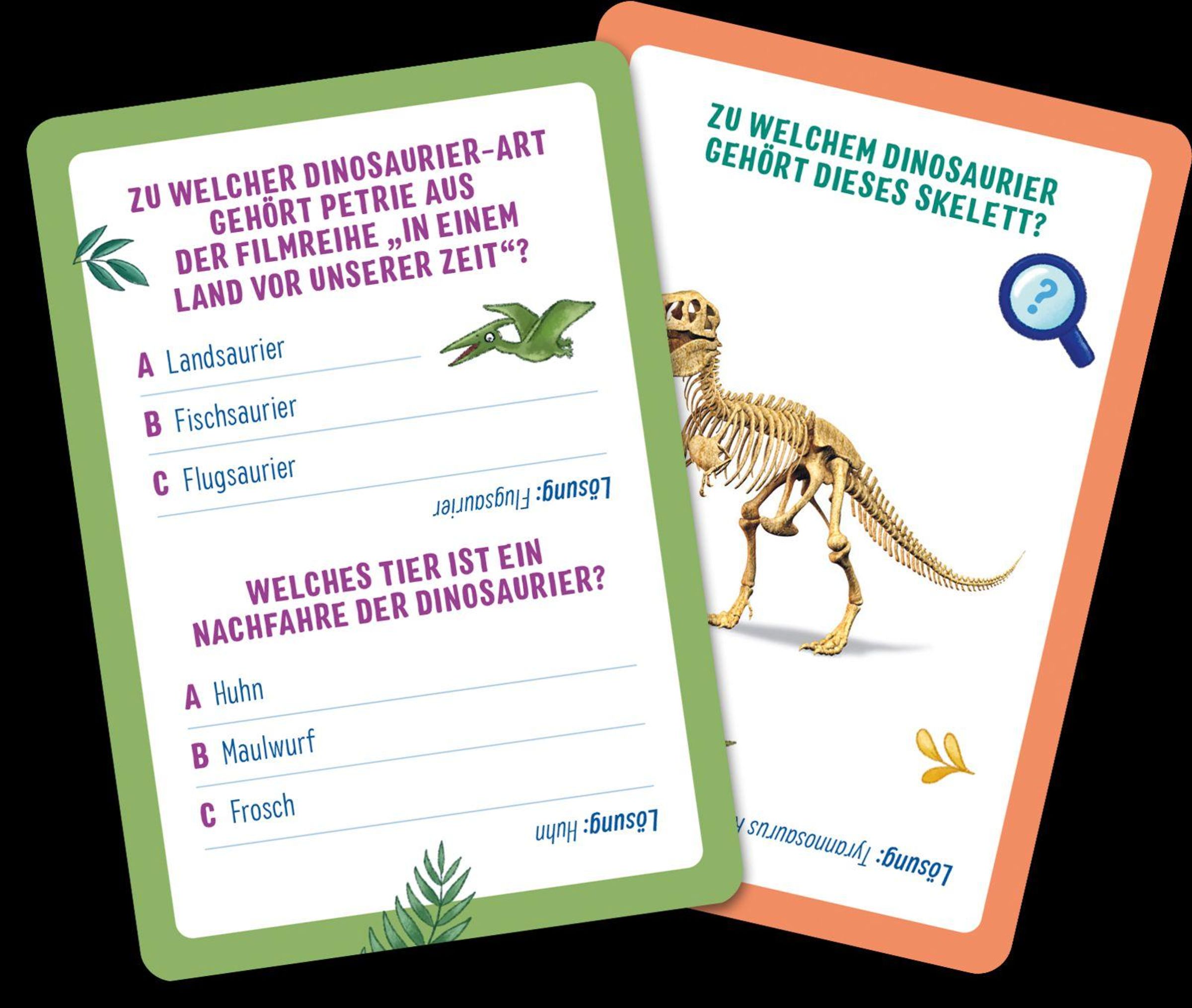 Dieses lustige Dinoquiz enthält über 50 Multiple-Choice- und Bildfragen rund um die spannenden Urzeitechsen. Die liebevollen Illustrationen von Katharina Staar lassen die Dinowelt lebendig werden und sorgen für gute Laune. Die Antworten auf die Quizfragen sind kursiv und auf dem Kopf stehend auf die Karten gedruckt, sodass das Dinoquiz auch alleine gespielt werden kann. Ein wunderbarer Ratespaß für Familien mit Kindern ab 6 Jahren und ein spannender Wissenstest für kleine Paläontologen und Dinofans.