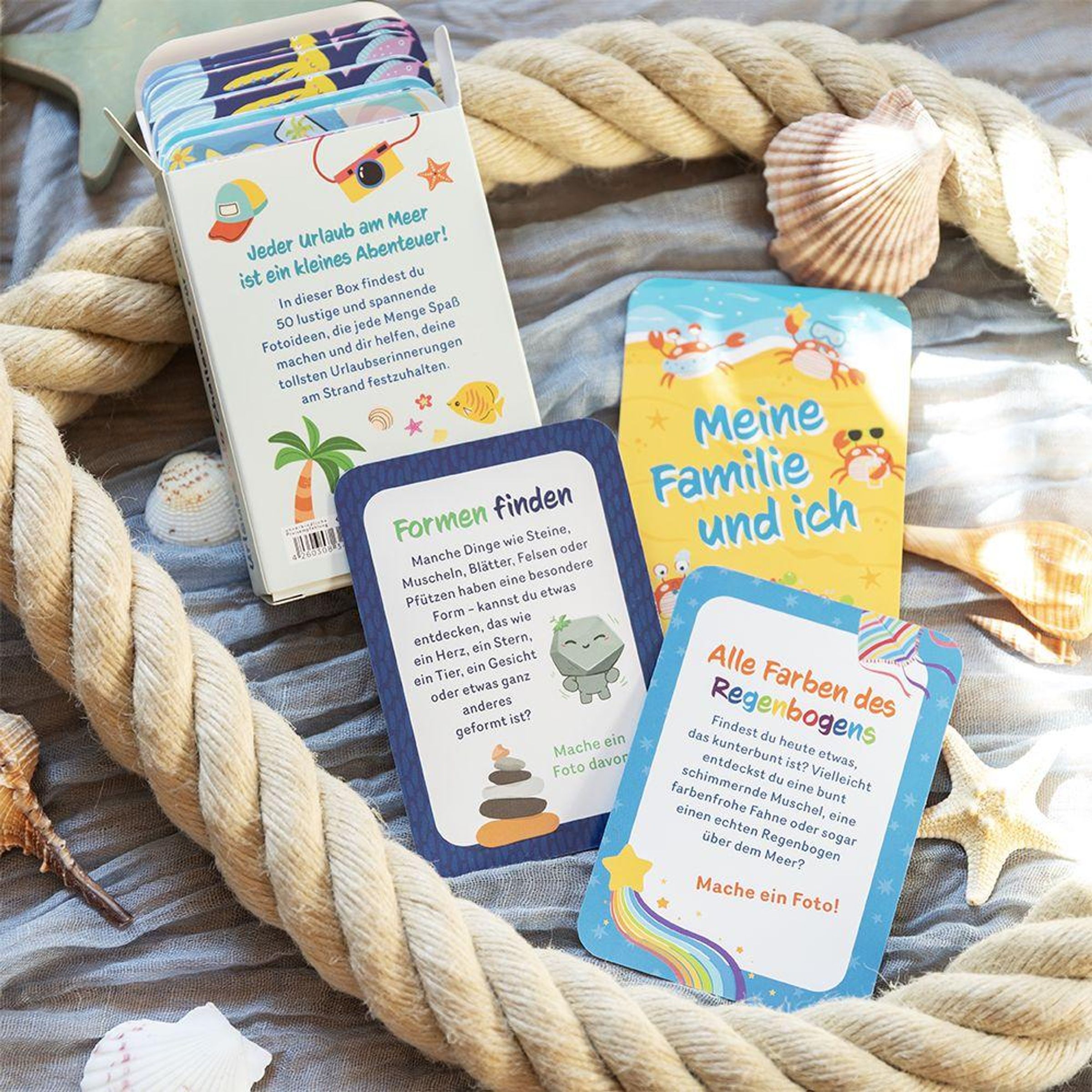 - Kartenset mit 50 fröhlichen und kreativen Fotoaufgaben für den nächsten Familienurlaub am Strand