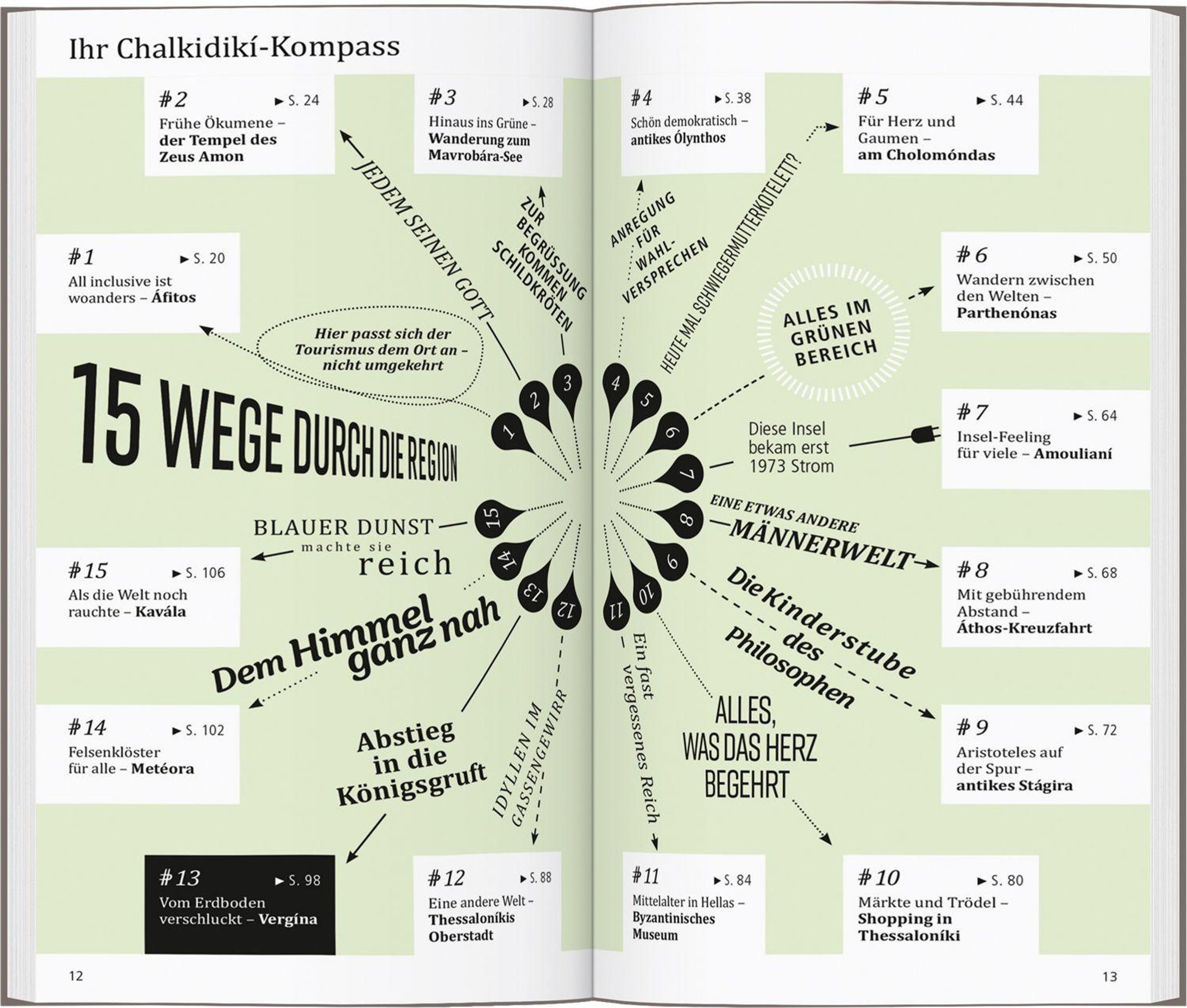 Dank vieler Tipps und Adressen erfahren Sie, wo es sich in fremden Betten gut schläft, wo Sie glücklich satt werden, wohin die Makedonen zum Stöbern und Entdecken gehen und wohin es sie zieht, wenn die Nacht beginnt.