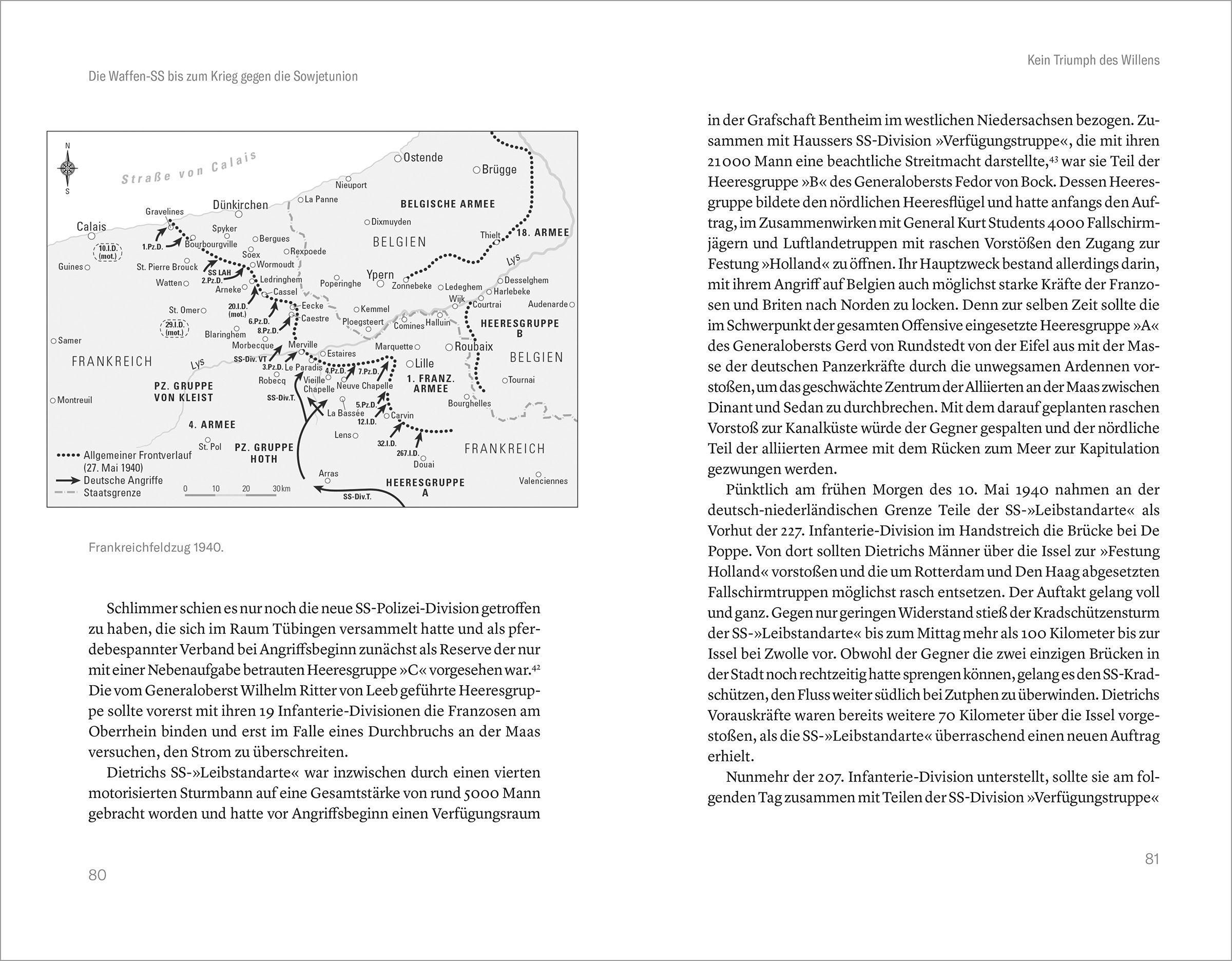 Der Autor rekonstruiert ideologische Erziehung, Organisationsstrukturen und die konkreten Kampfeinsätze. Dabei nimmt er die militärische Leistungsfähigkeit ebenso kritisch unter die Lupe wie die systematische Brutalität, die Selbstinszenierung durch die Propaganda und die Beteiligung an Kriegsverbrechen, für die die WaffenSS 1946 als "verbrecherische Organisation" eingestuft wurde.