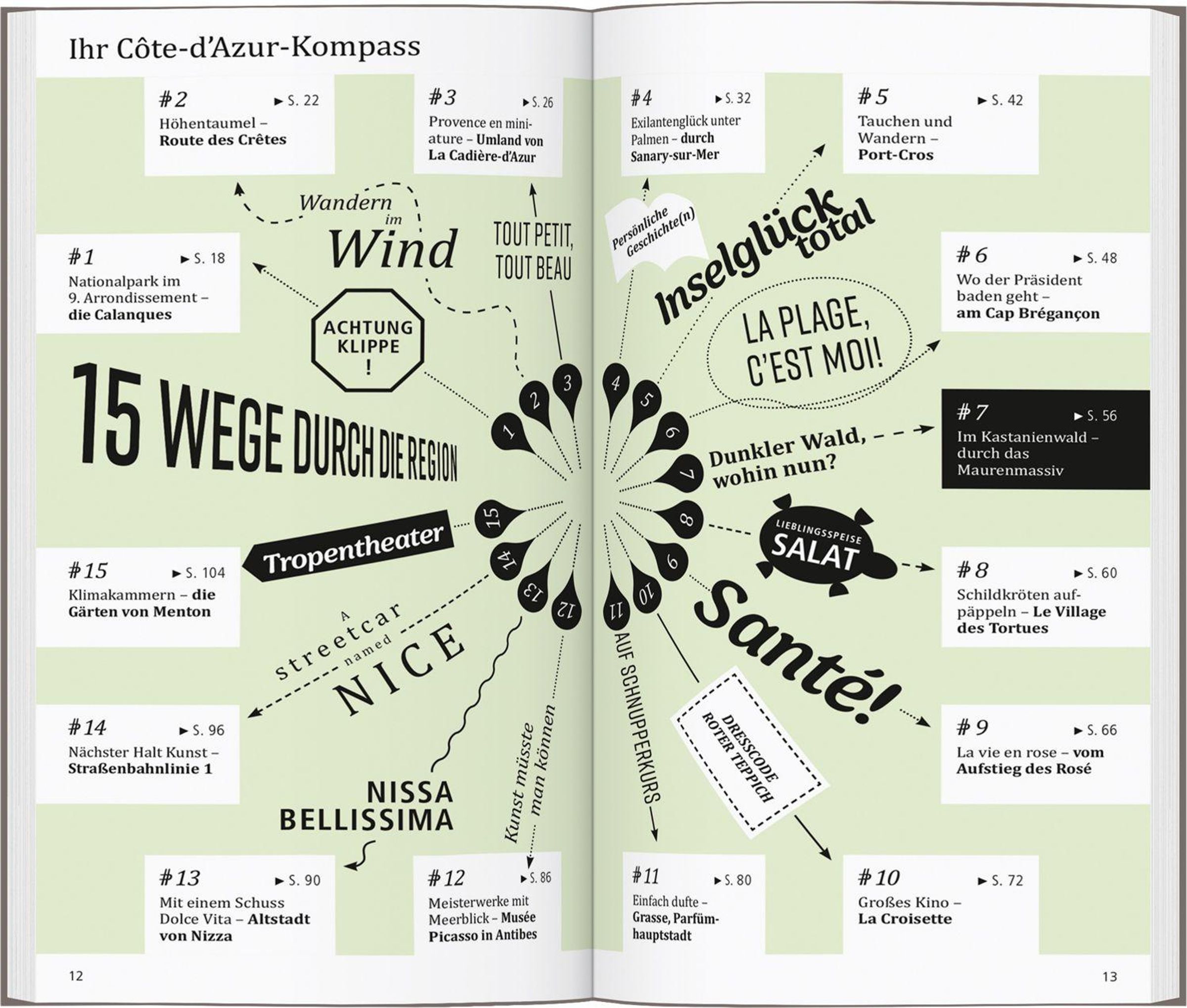 Mit den Übersichtskarten, genauen Stadtplänen und dem separaten großen Faltplan können Sie nach Lust und Laune die Côte d'Azur erkunden.