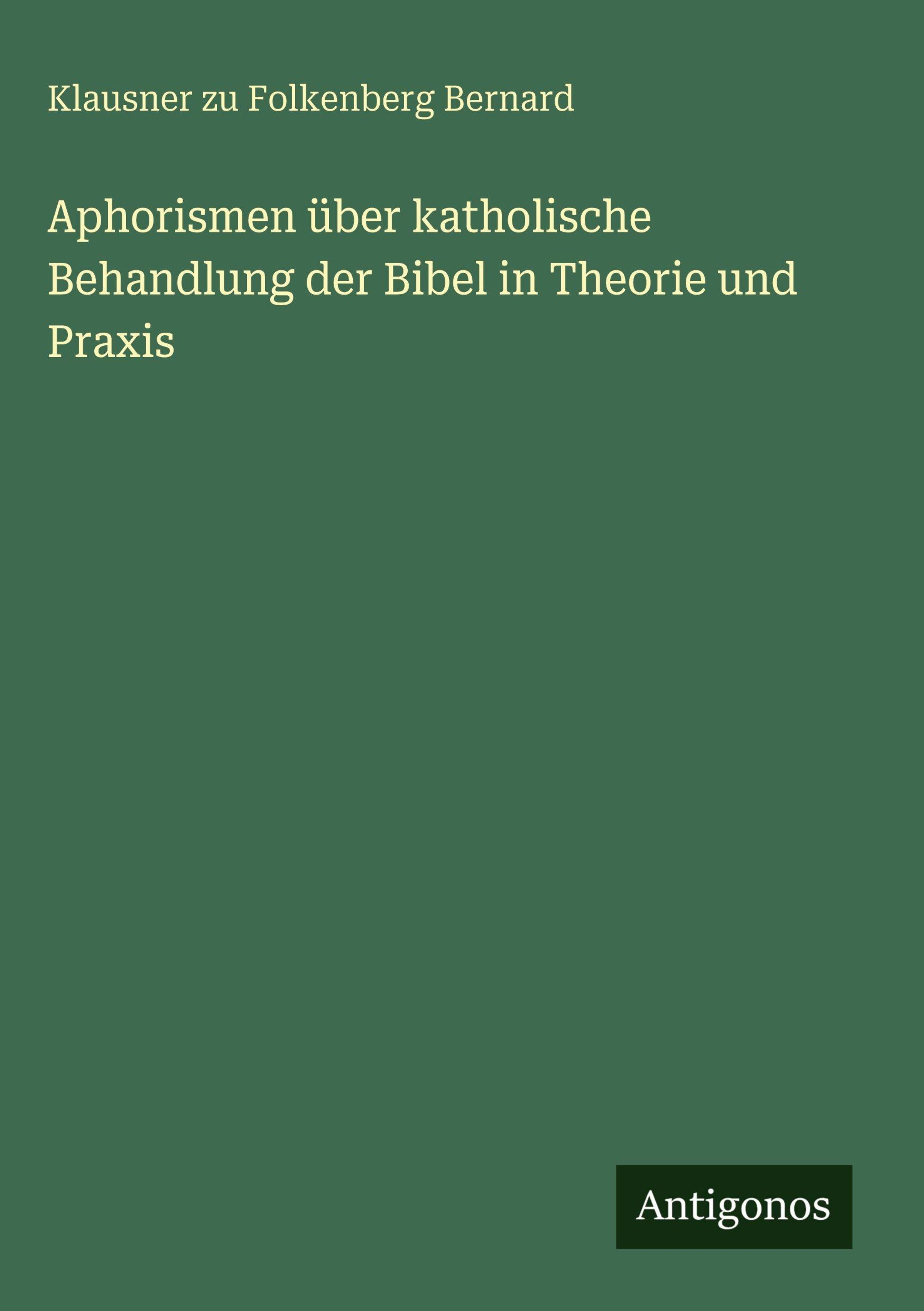 Klausner Zu Folkenberg Bernard: Aphorismen über katholische Behandlung der Bibel in Theorie und Praxis, Gebunden