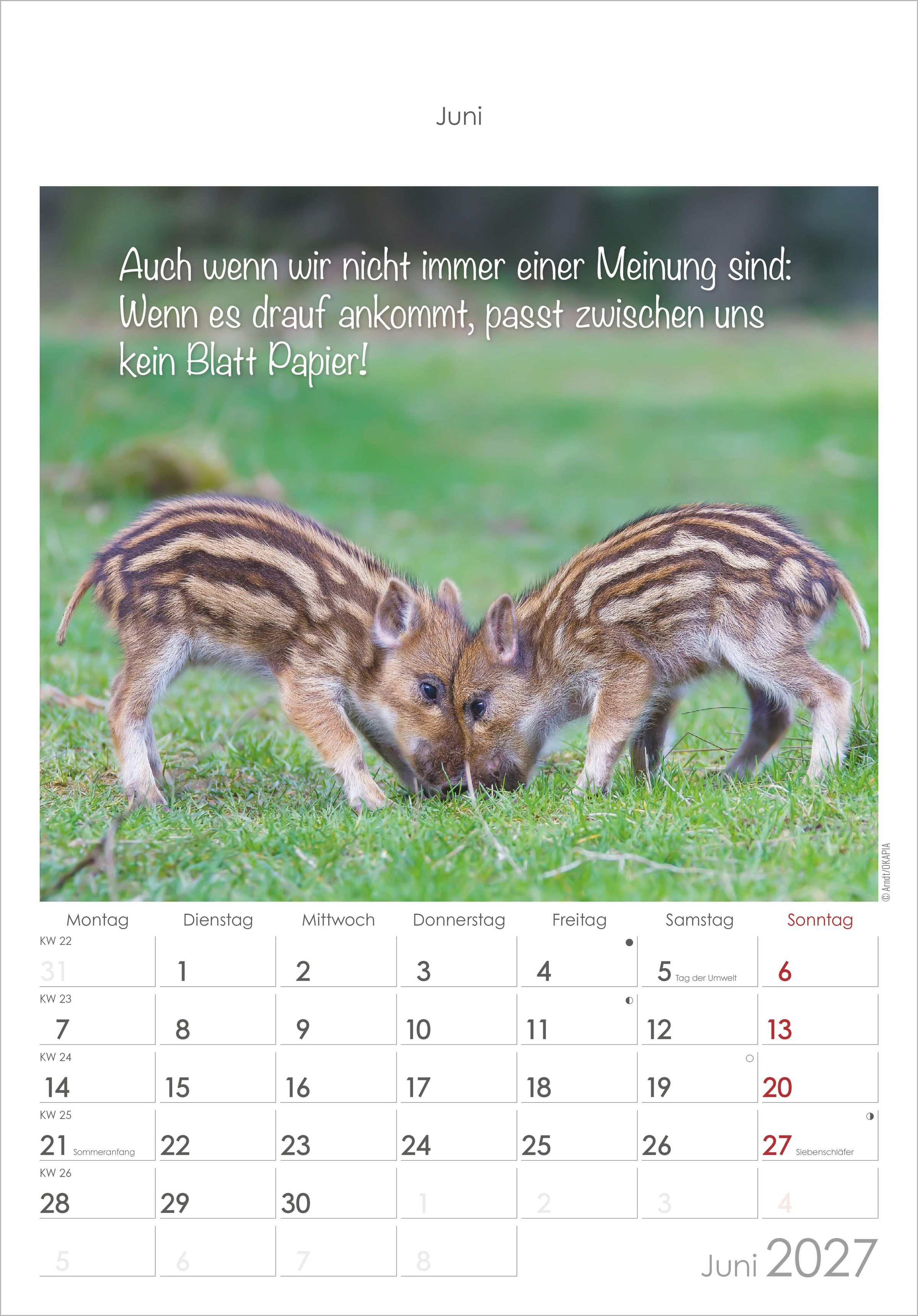 Der Alpha Edition Kleine Freunde Kalender 2027 vereint niedliche Tierfotografie, Humor und praktische Organisation -- ein fröhlicher Begleiter für das ganze Jahr.