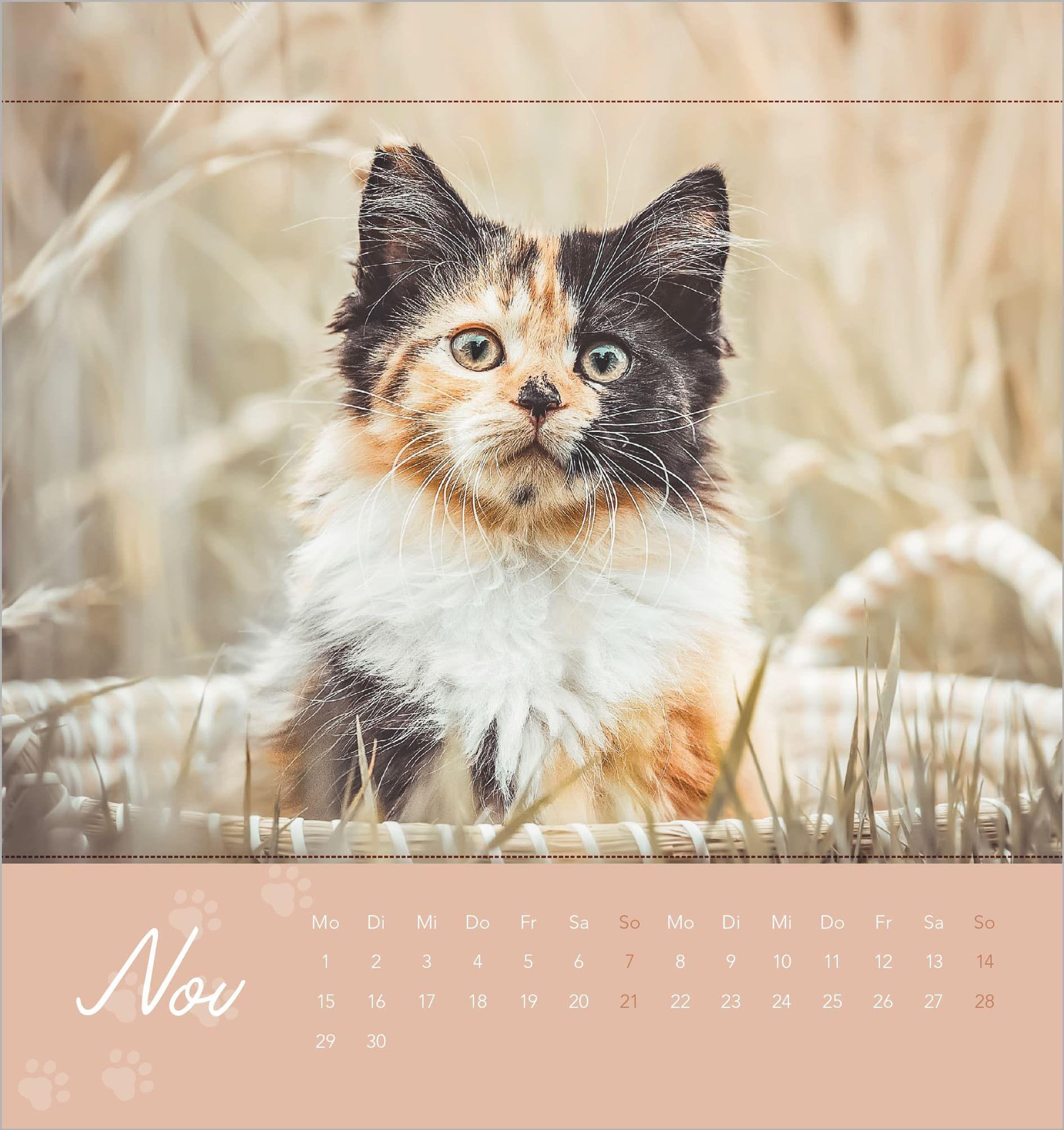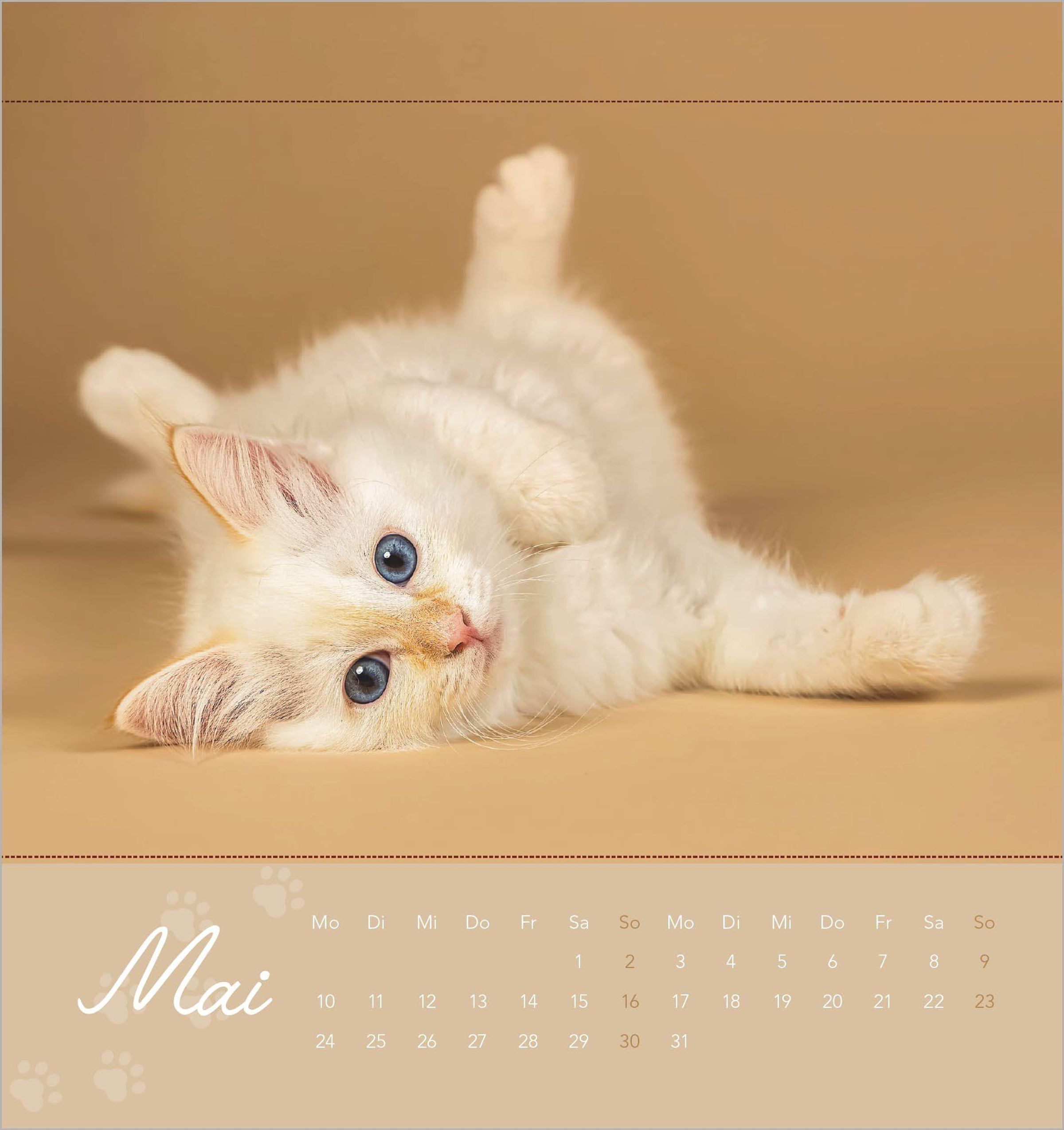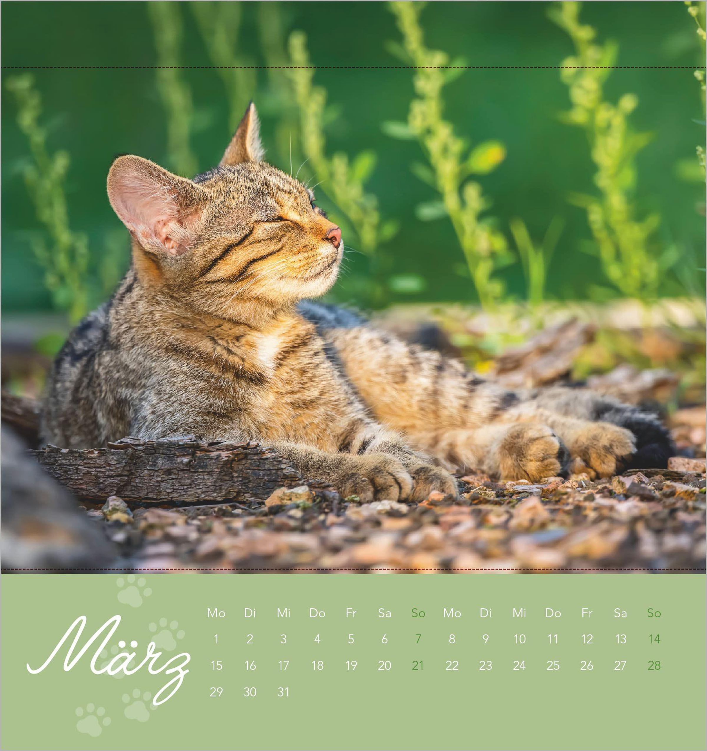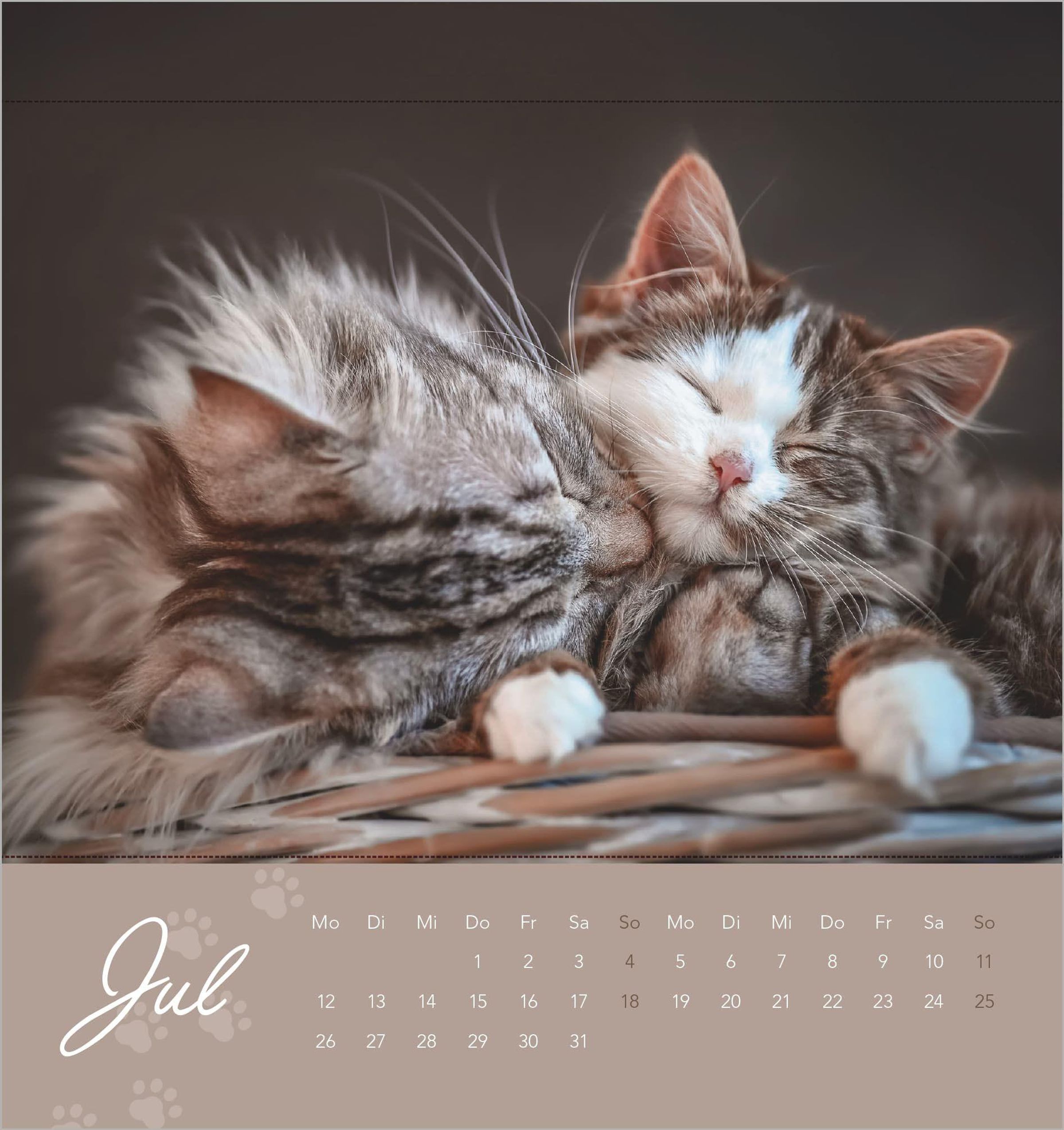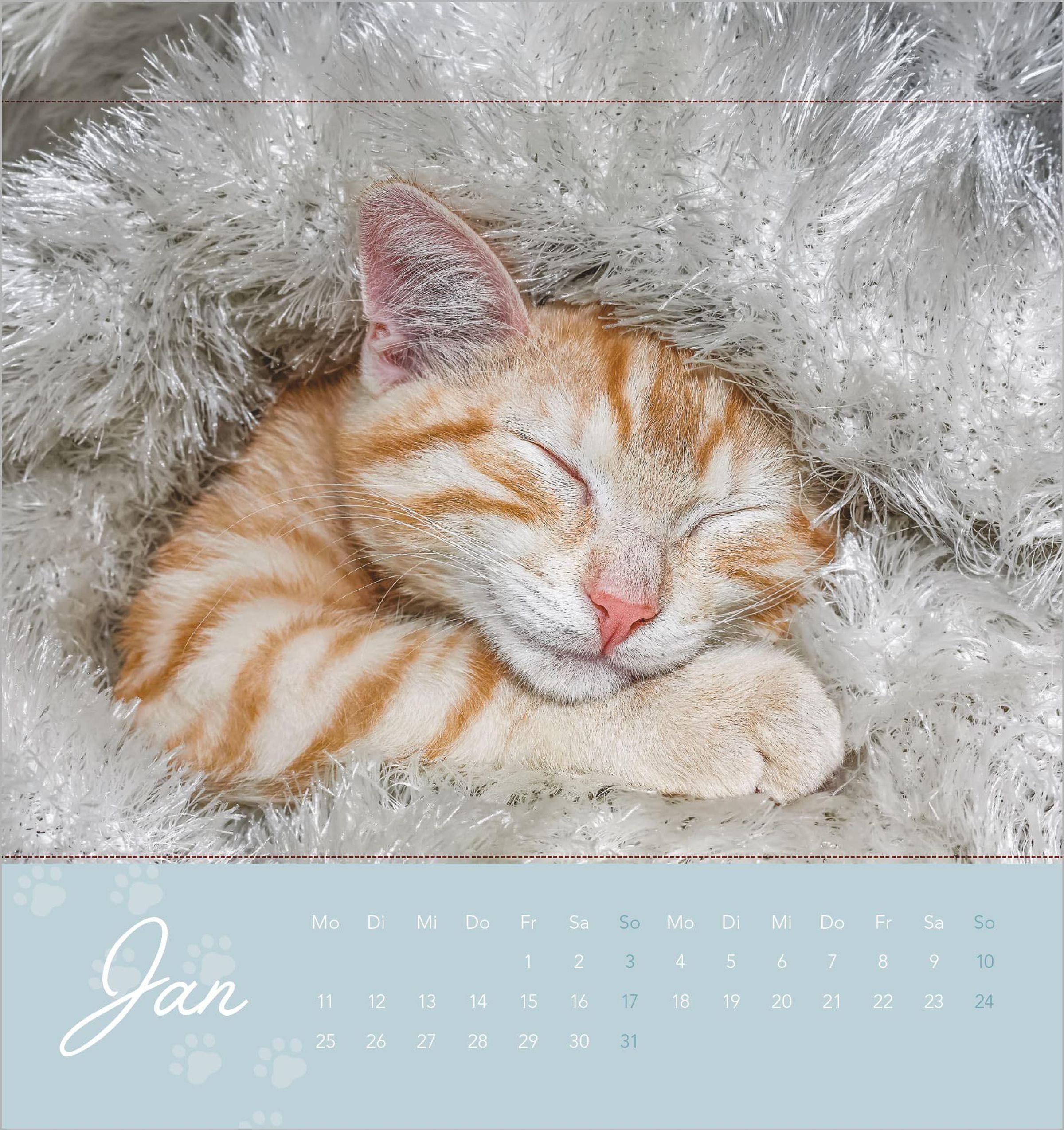 Ansprechendes Design: Zwölf liebevoll fotografierte Katzenmotive -- von verspielten Fellknäueln bis zu kuscheligen Schmusekatzen