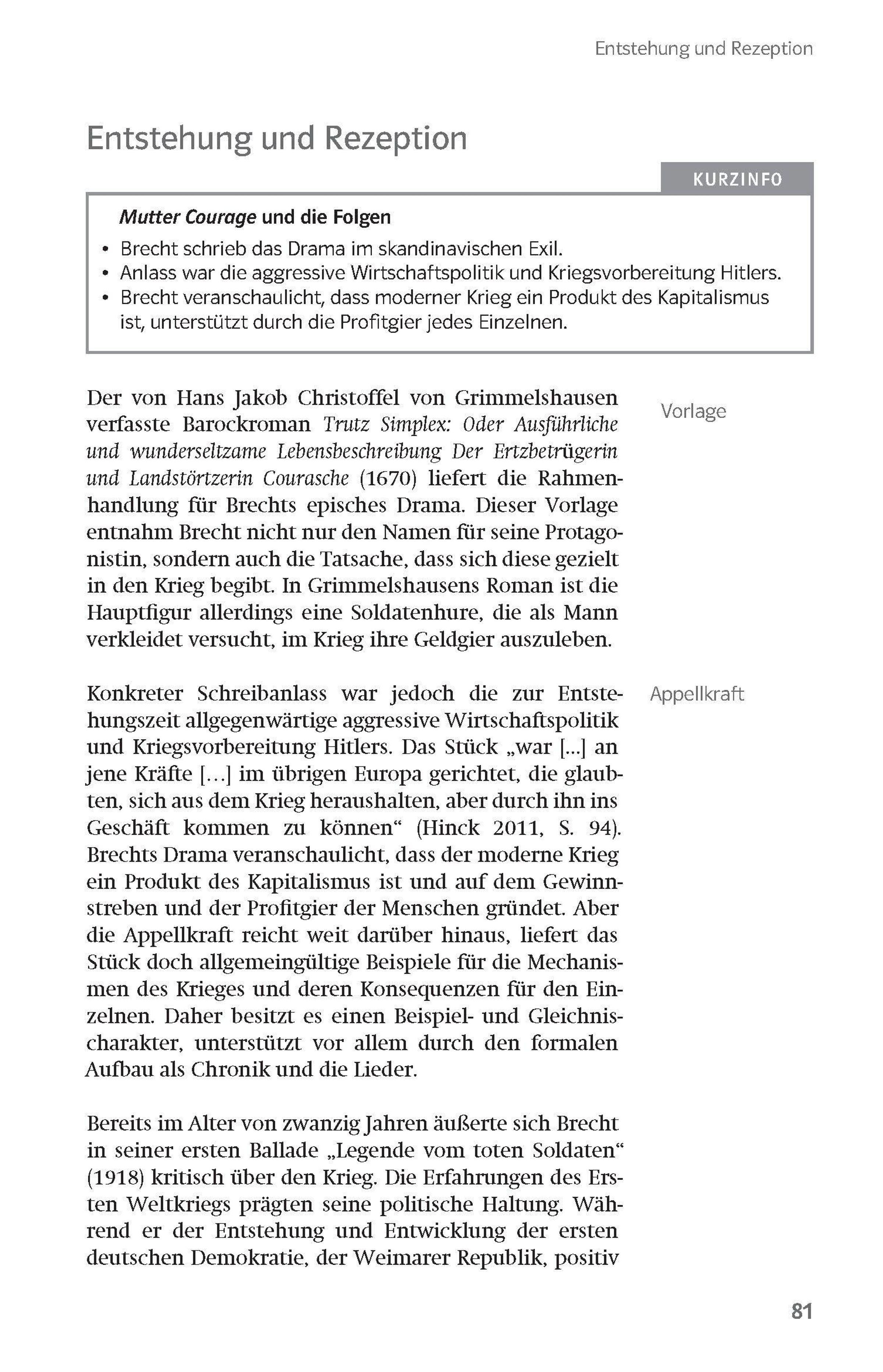 Klett Lektürehilfen Bertolt Brecht "Mutter Courage und ihre Kinder"