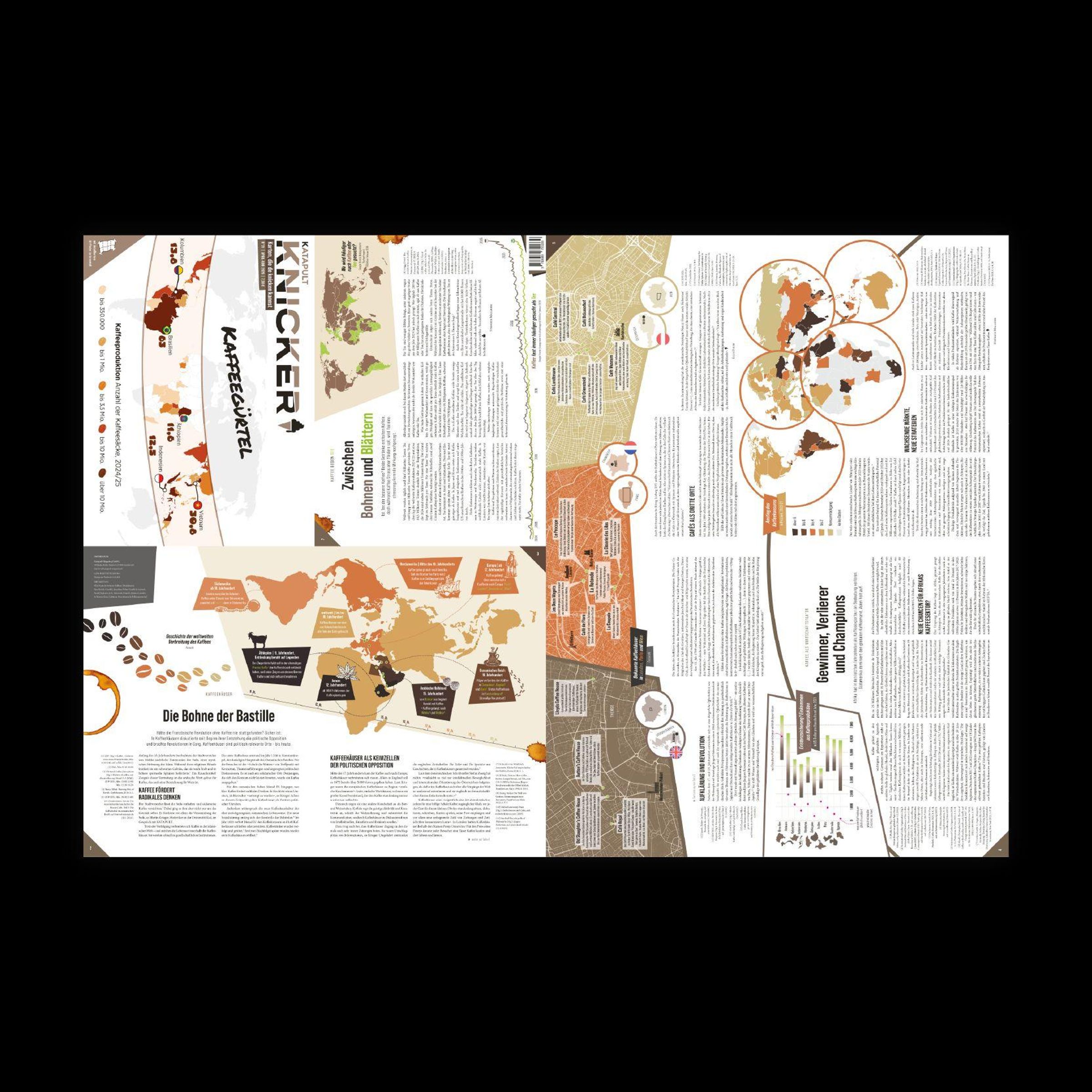 Da man die Zeitschrift auseinanderfalten muss, um die Riesenkarte betrachten oder an die Wand hängen zu können, wollten wir sie eigentlich "Falter" nennen. Allerdings gibt es bereits eine gleichnamige Wiener Wochenzeitung - ohne große Faltkarten. Den Knicker, das wirkliche Faltmagazin, gibt es viermal im Jahr im Buchhandel oder gemeinsam im Abo mit dem Katapult-Magazin. Immer mit Riesenkarten, jedes Mal mit ausführlichen, gründlich recherchierten Berichten zu ausgewählten Themen.