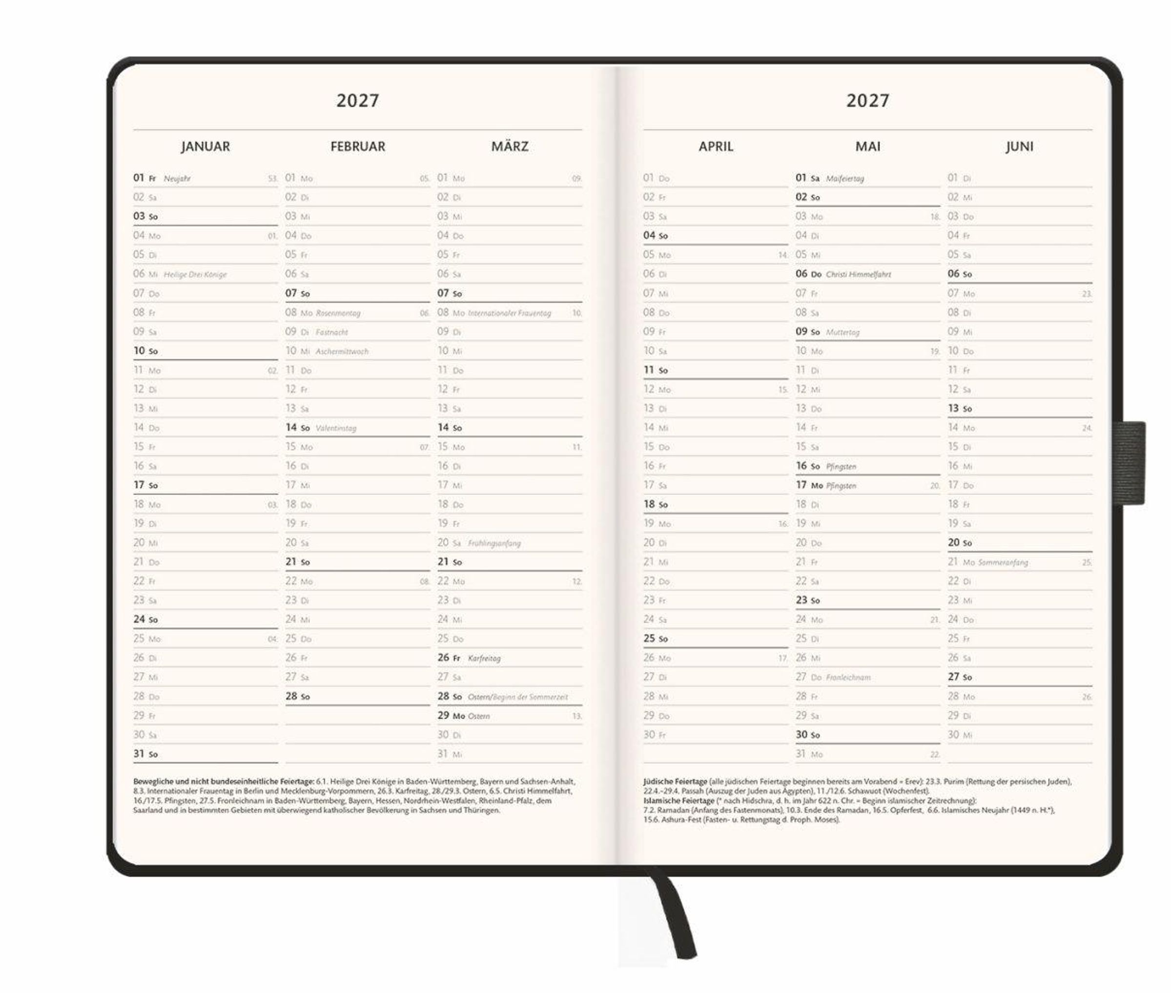 - Schwarzer Terminkalender 2027. Buch-Kalender mit Lesebändchen und Gummiband. Taschenkalender zum Planen von Terminen.