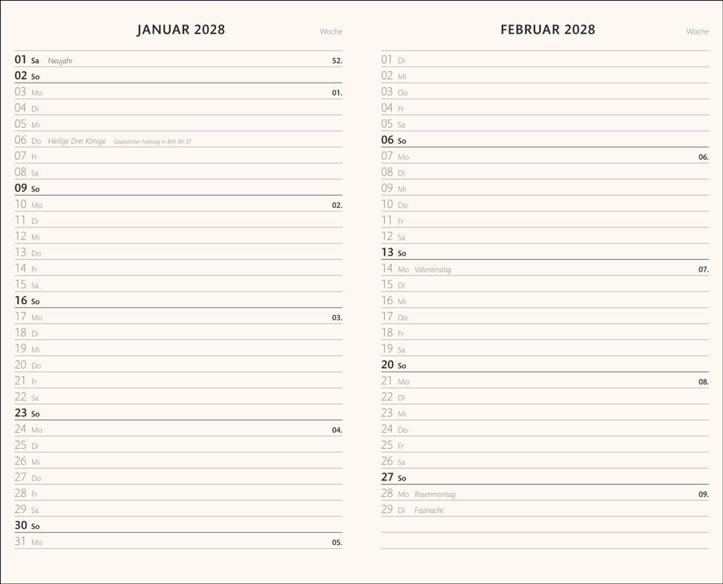 Der mittelgroße Wochenkalender 2027 im handlichen Format: Jede Doppelseite mit Wochenübersicht und Platz für Notizen