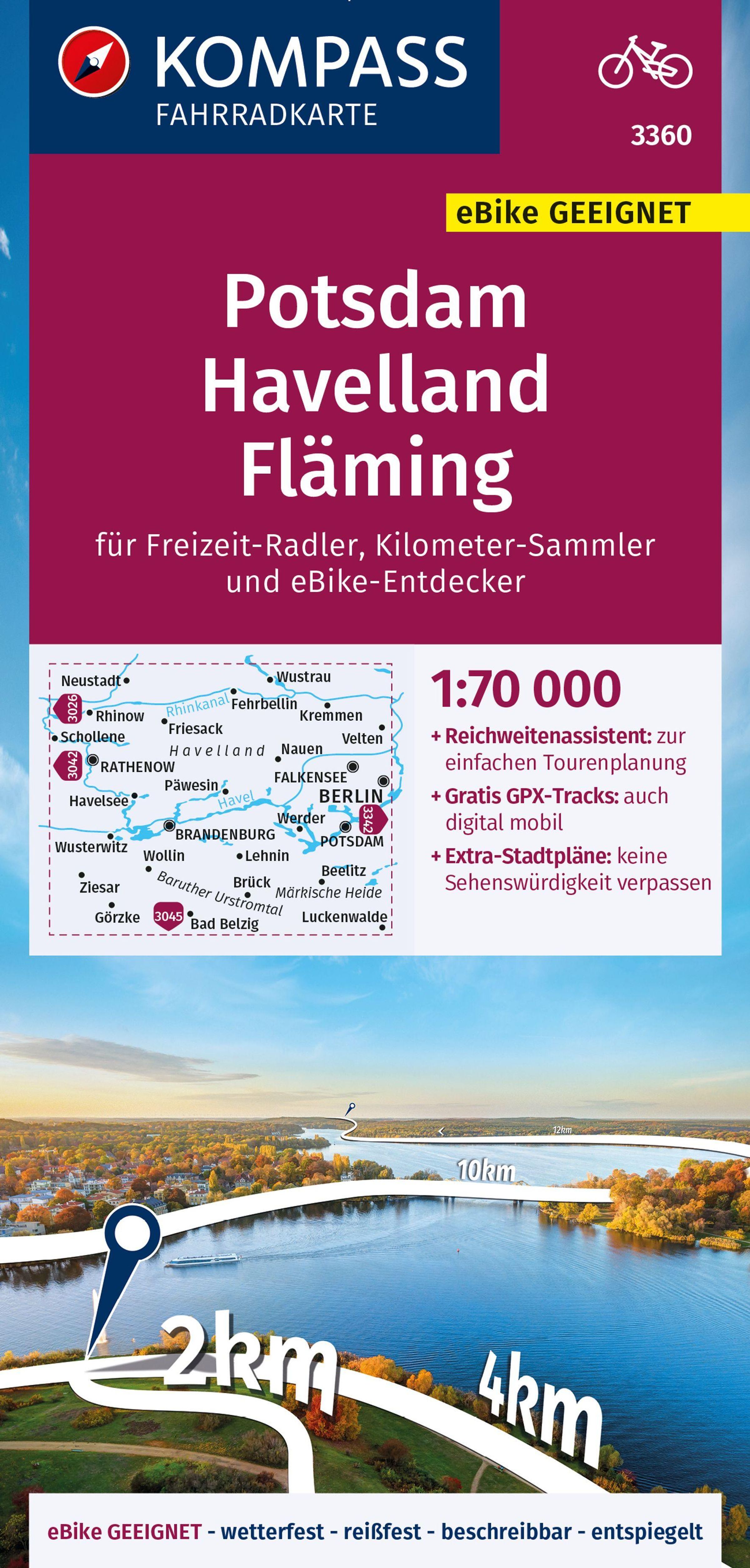 KOMPASS Fahrradkarte 3360 Potsdam, Havelland, Fläming mit Knotenpunkten 1:70.000