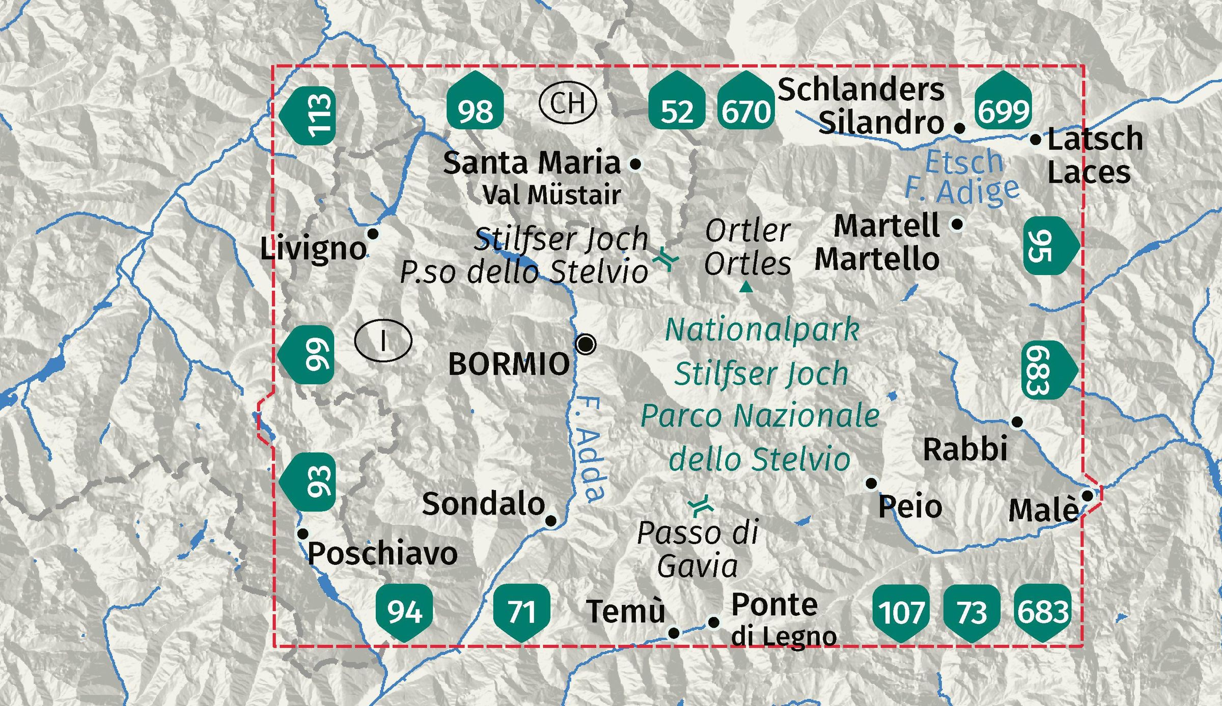 Ausstattung der Wanderkarte Nationalpark Stilfser Joch / Parco Nazionale dello Stelvio: