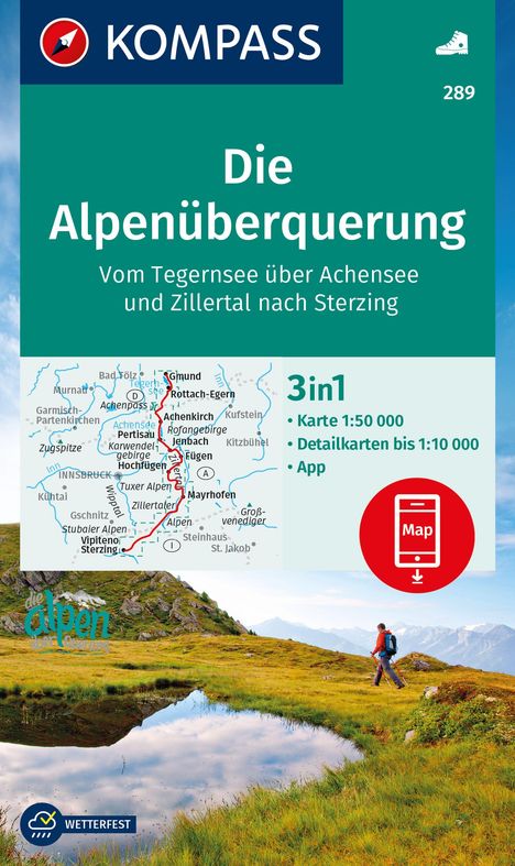 KOMPASS Wanderkarte 289 Die Alpenüberquerung - vom Tegernsee über Achensee und Zillertal nach Sterzing 1:50.000 (Karten)