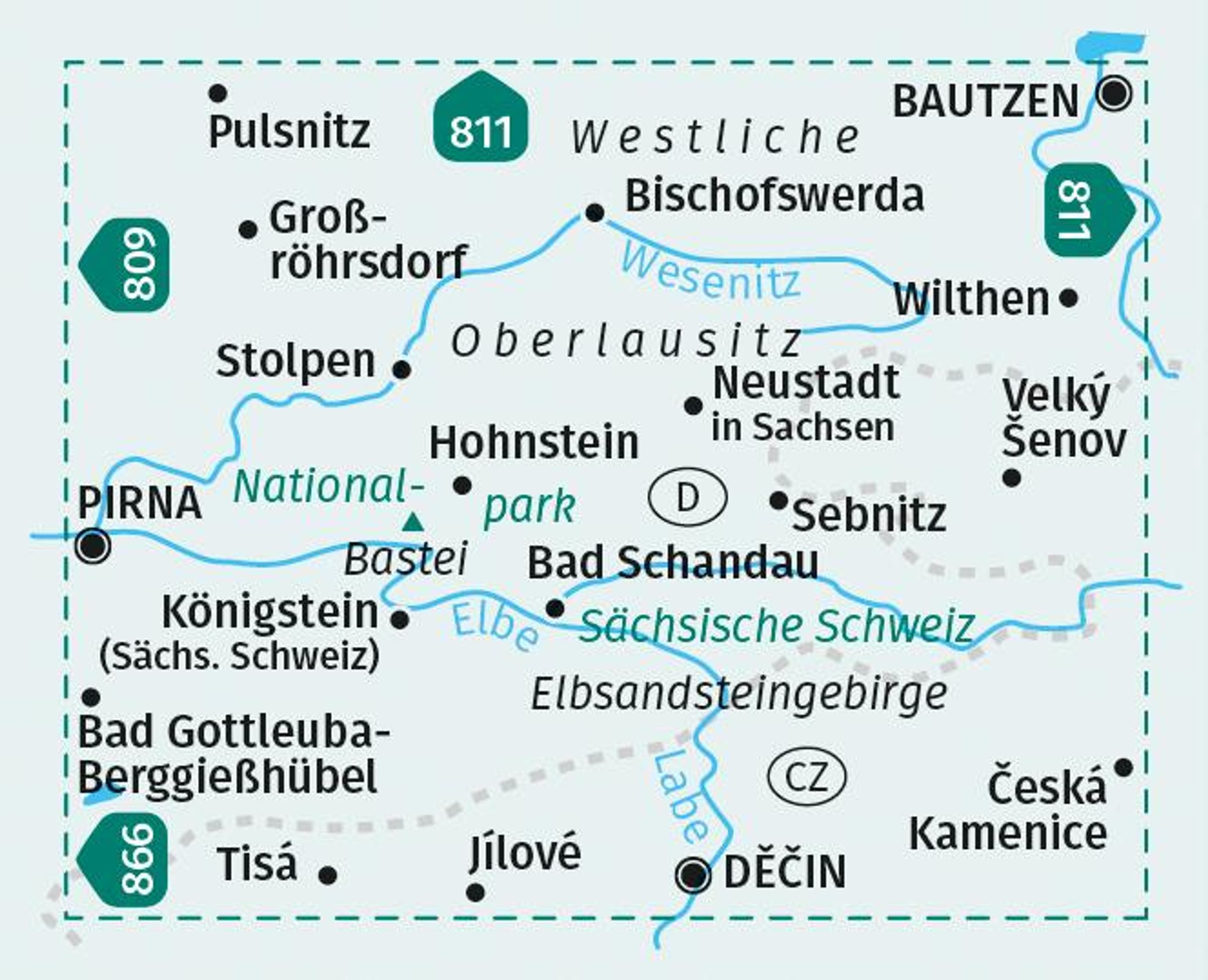 KOMPASS Wanderkarte 810 Sächsische Schweiz, Westliche Oberlausitz 1:50.000
