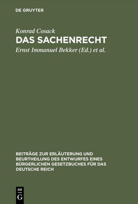 Konrad Cosack: Das Sachenrecht, Buch, Buch