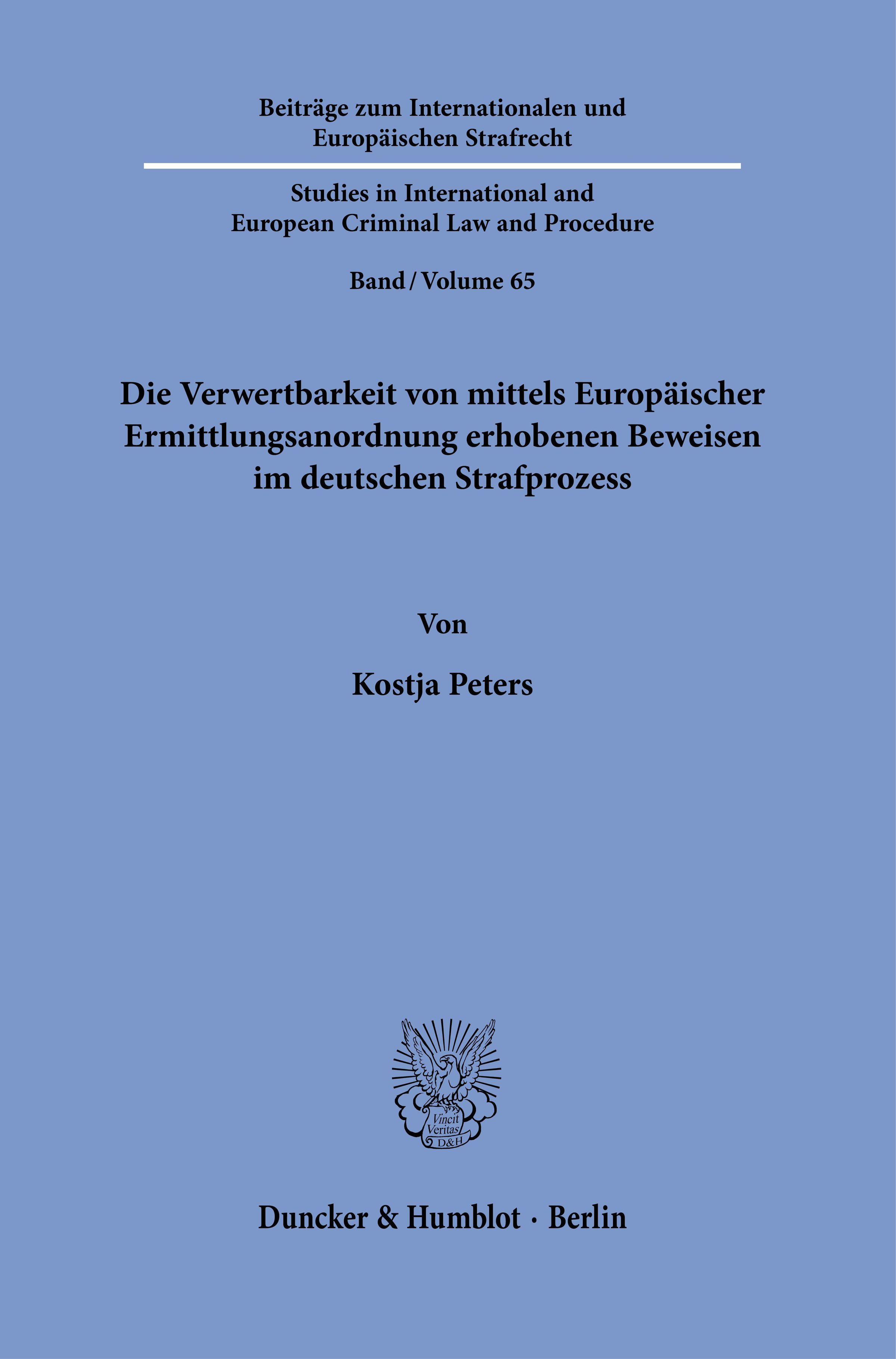 'The Admissibility of Evidence Obtained through European Investigation Orders in German Criminal Proceedings': This thesis deals with the question of how evidence collected in other European countries can be used in German criminal proceedings. In addition to explaining the collection of evidence on the basis of European mutual legal assistance in criminal matters and the Directive on the European Investigation Order, this thesis presents a fundamental concept for the admissibility of such evidence in German criminal proceedings.
