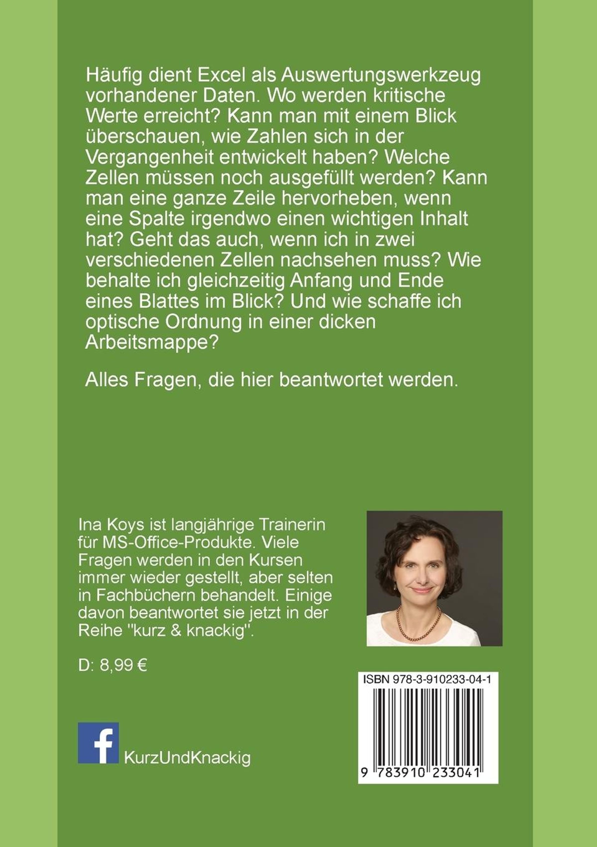 Häufig dient Excel als Auswertungswerkzeug vorhandener Daten. Wo werden kritische Werte erreicht? Kann man mit einem Blick überschauen, wie Zahlen sich in der Vergangenheit entwickelt haben? Welche Zellen müssen noch ausgefüllt werden? Kann man eine ganze Zeile hervorheben, wenn eine Spalte irgendwo einen wichtigen Inhalt hat? Geht das auch, wenn ich in zwei verschiedenen Zellen nachsehen muss? Wie behalte ich gleichzeitig Anfang und Ende eines Blattes im Blick? Und wie schaffe ich optische Ordnung in einer dicken Arbeitsmappe? Alles Fragen, die hier beantwortet werden.