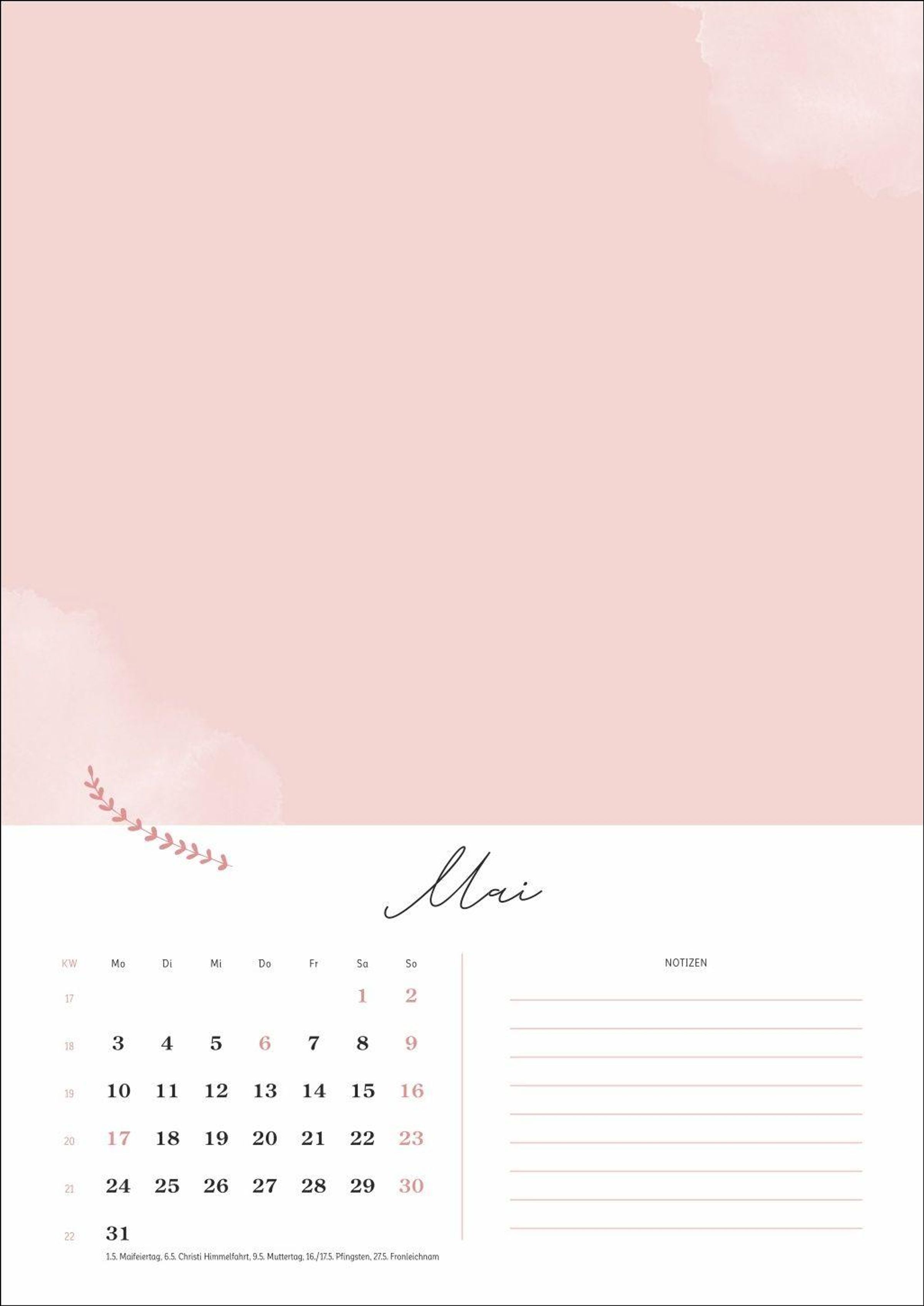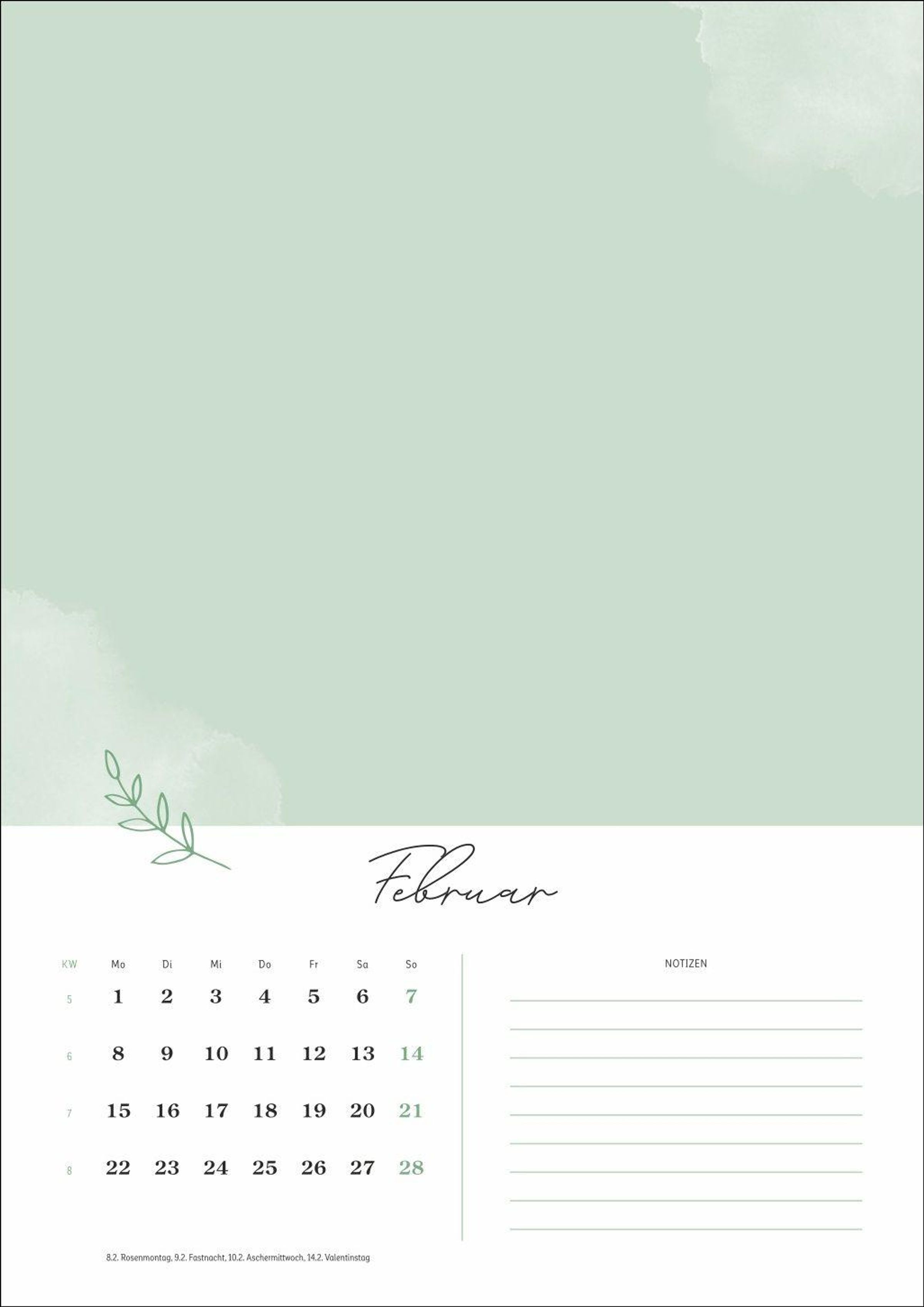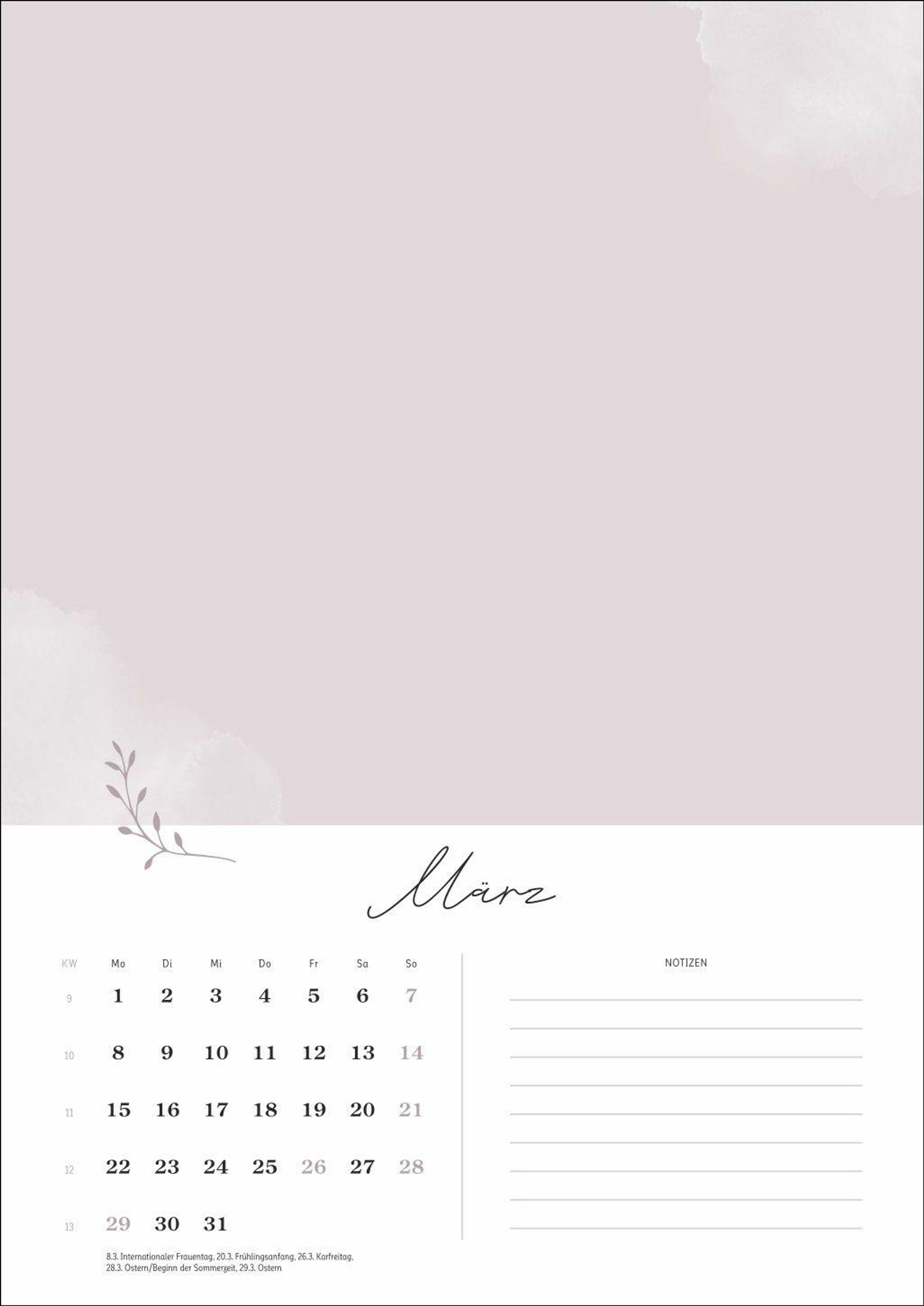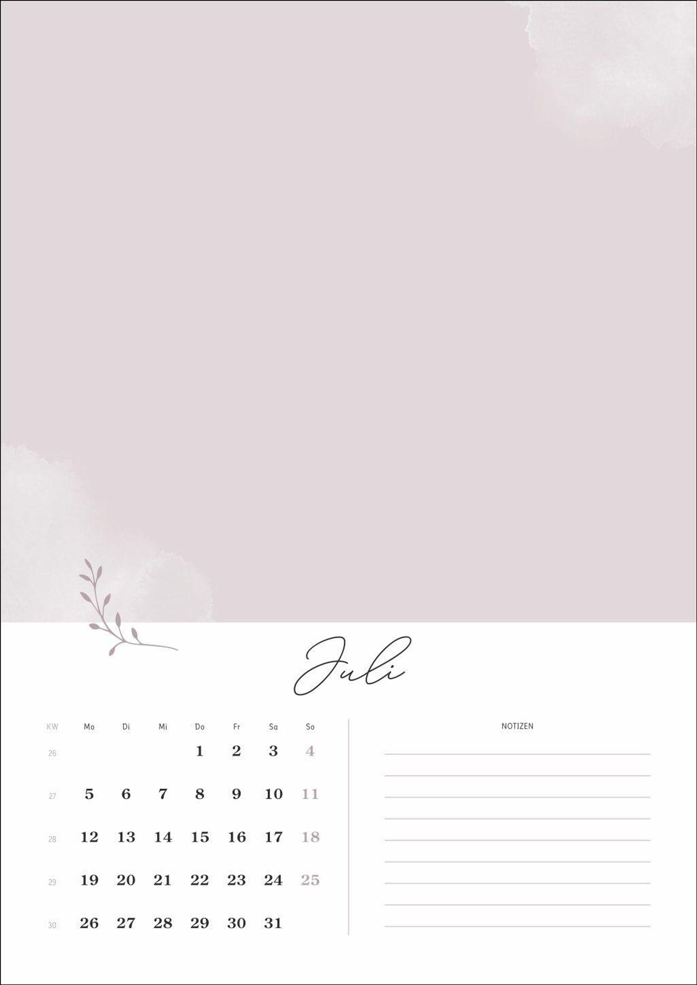 Mit Platz für Fotos bis zu einem Format von 18 x 13 cm (quer) und Raum für Notizen neben dem Kalendarium ist dieser Wandkalender gleichermaßen dekorativ und praktisch