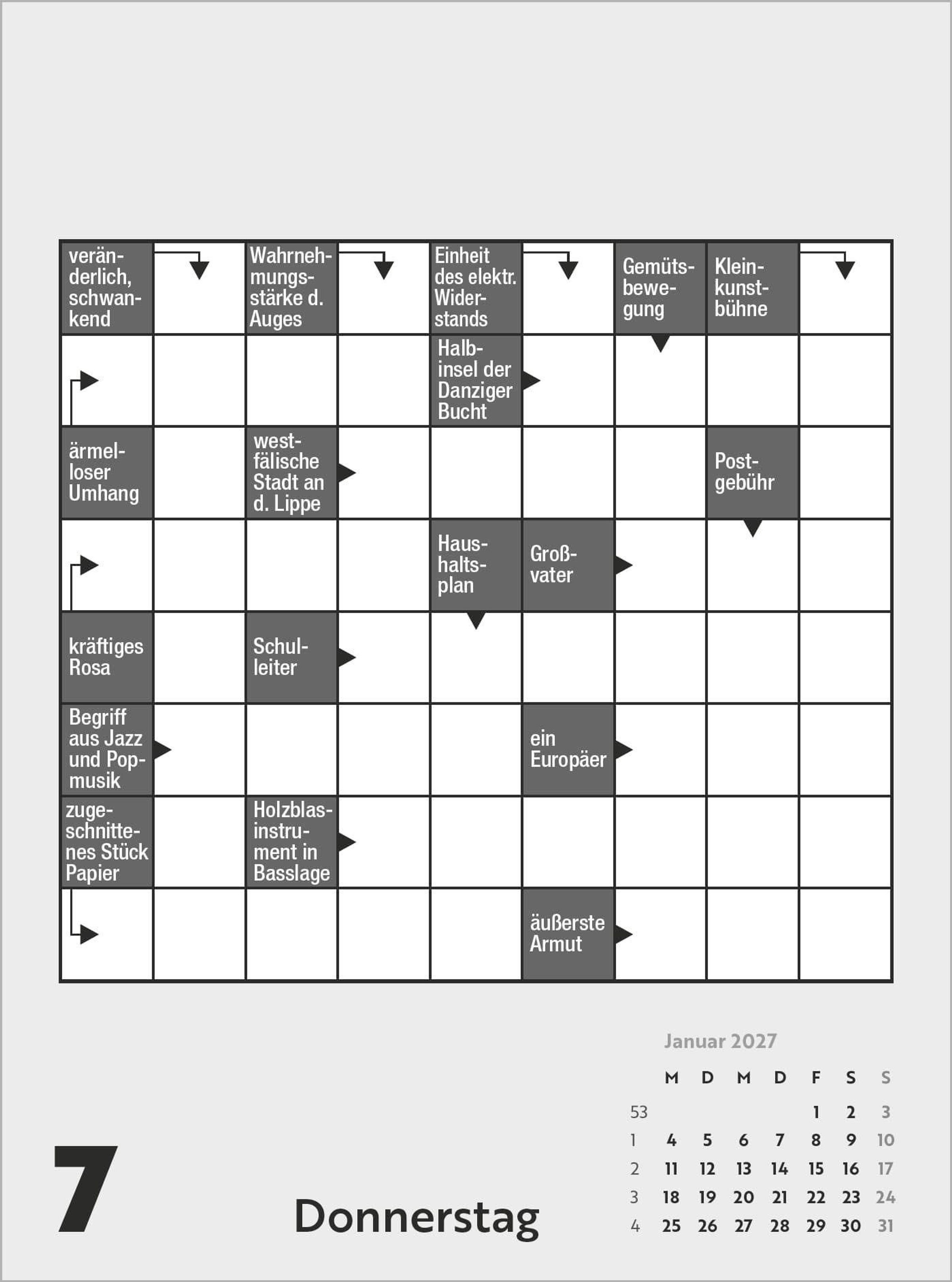 Kreuzworträtsel 2027 (Kalender)