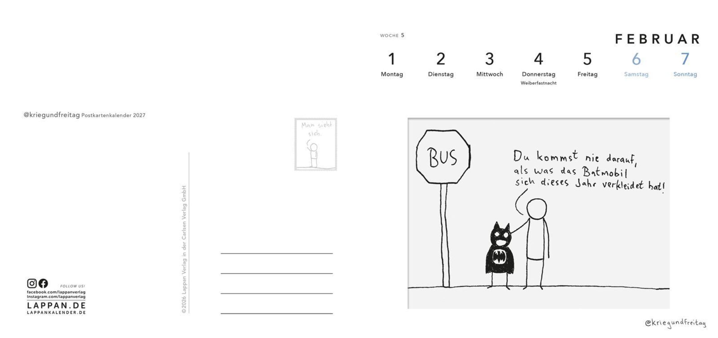 Der @kriegundfreitag-Postkartenkalender 2027: