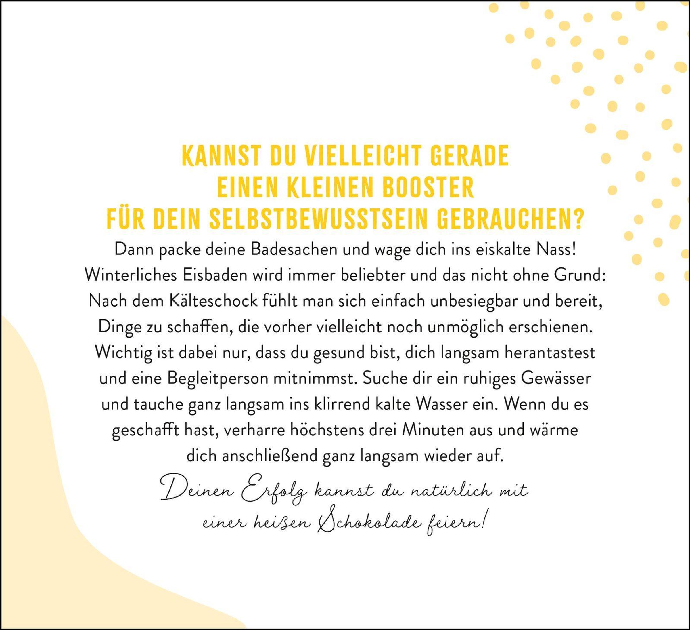 - **Mehr Selbstliebe und Mut:**Fördere deine persönliche Entwicklung täglich mit kleinen Impulsen zur Selbstfürsorge.