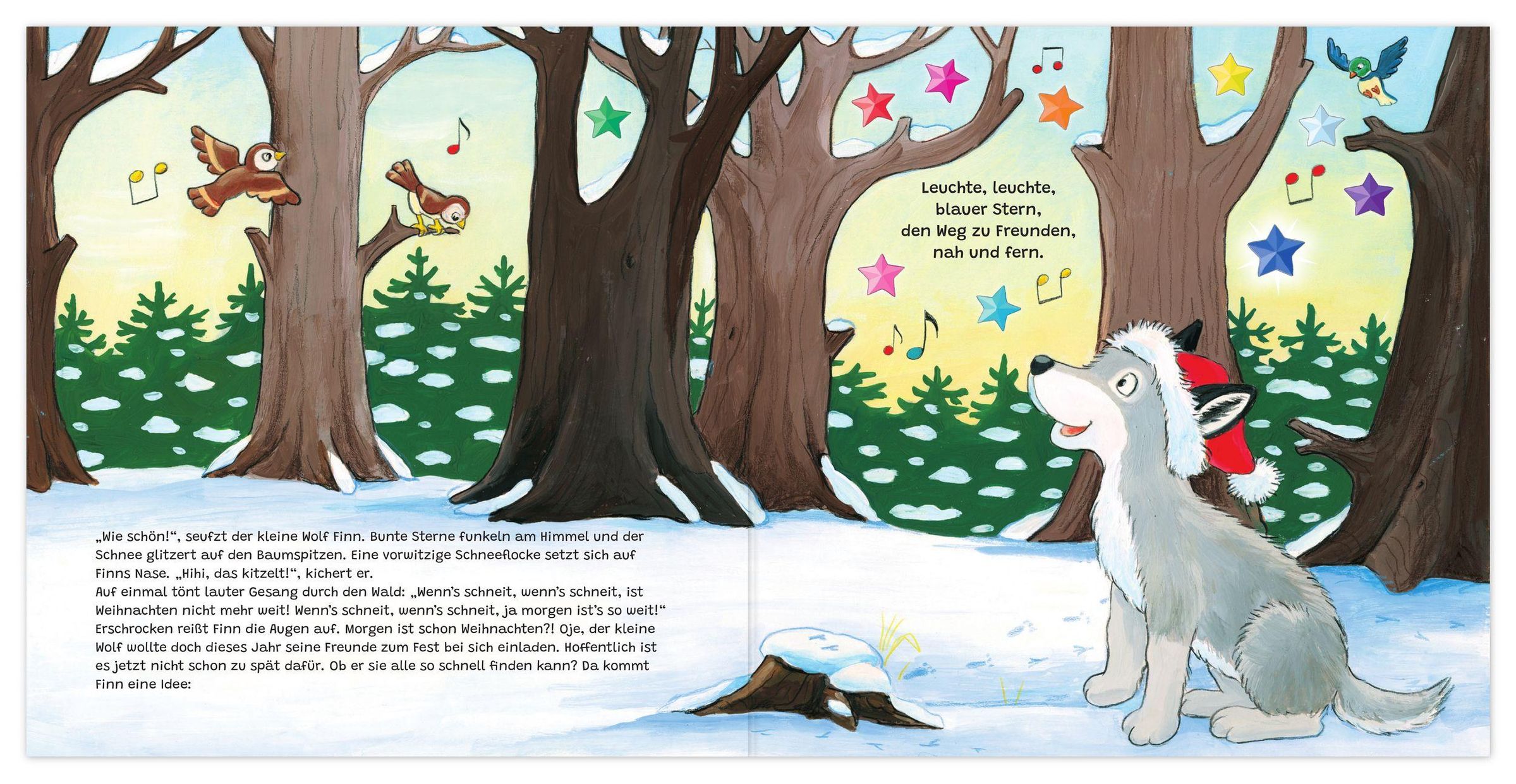 Der kleine Wolf Finn wünscht sich zu Weihnachten nur eins: gemeinsam mit seinen Freunden zu feiern. Doch dafür muss er sie noch alle einladen und der Heilige Abend naht schon. Wie soll Finn seine Freunde nur rechtzeitig alle finden?