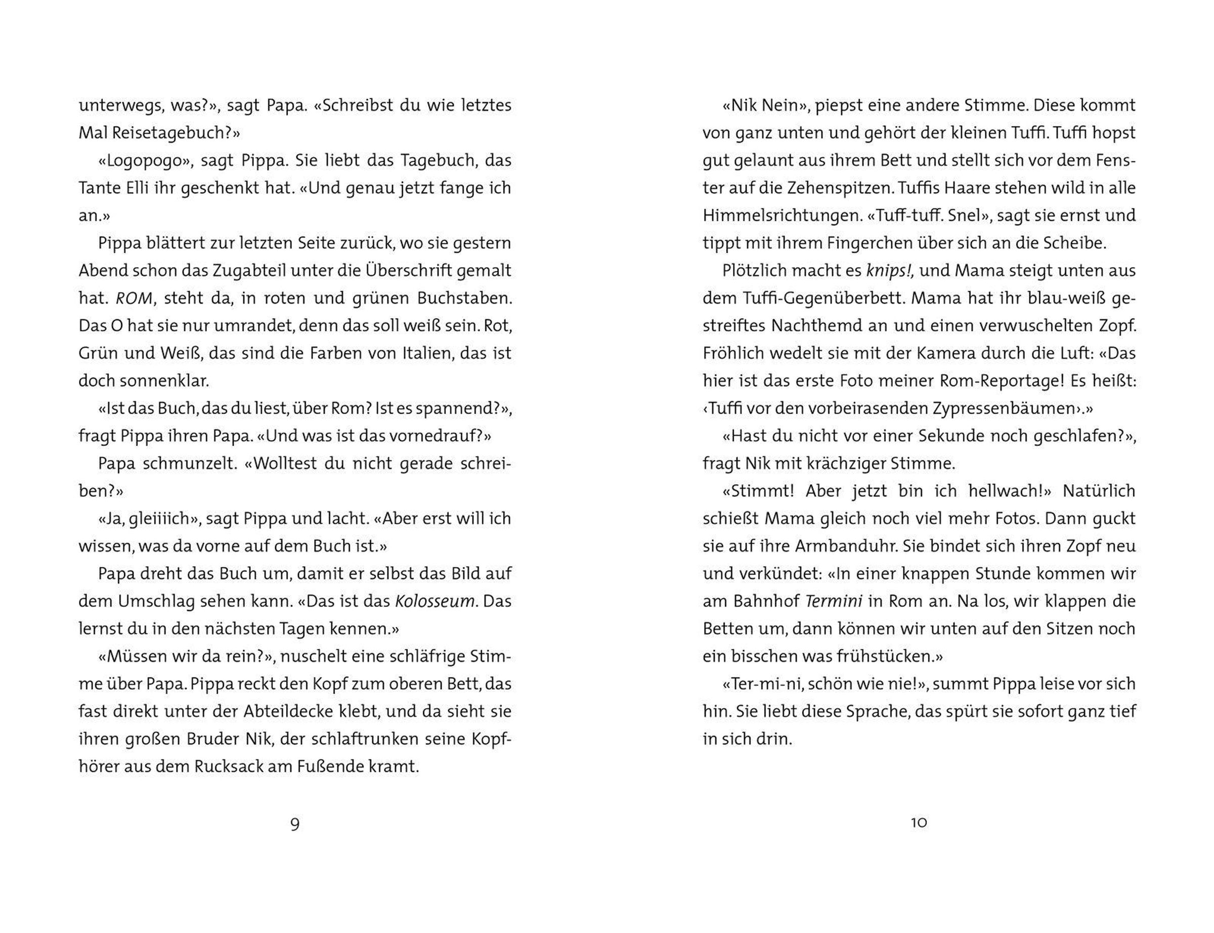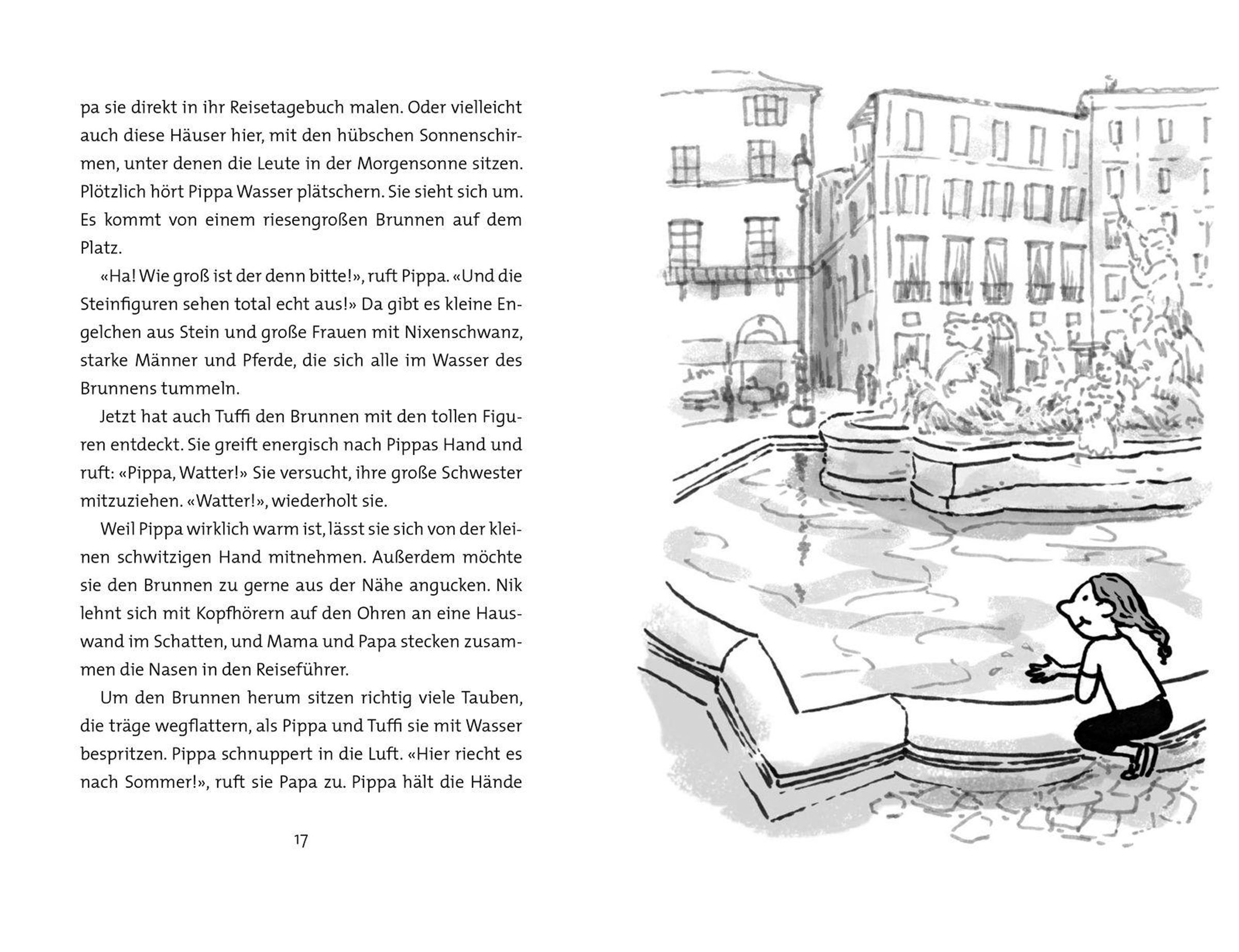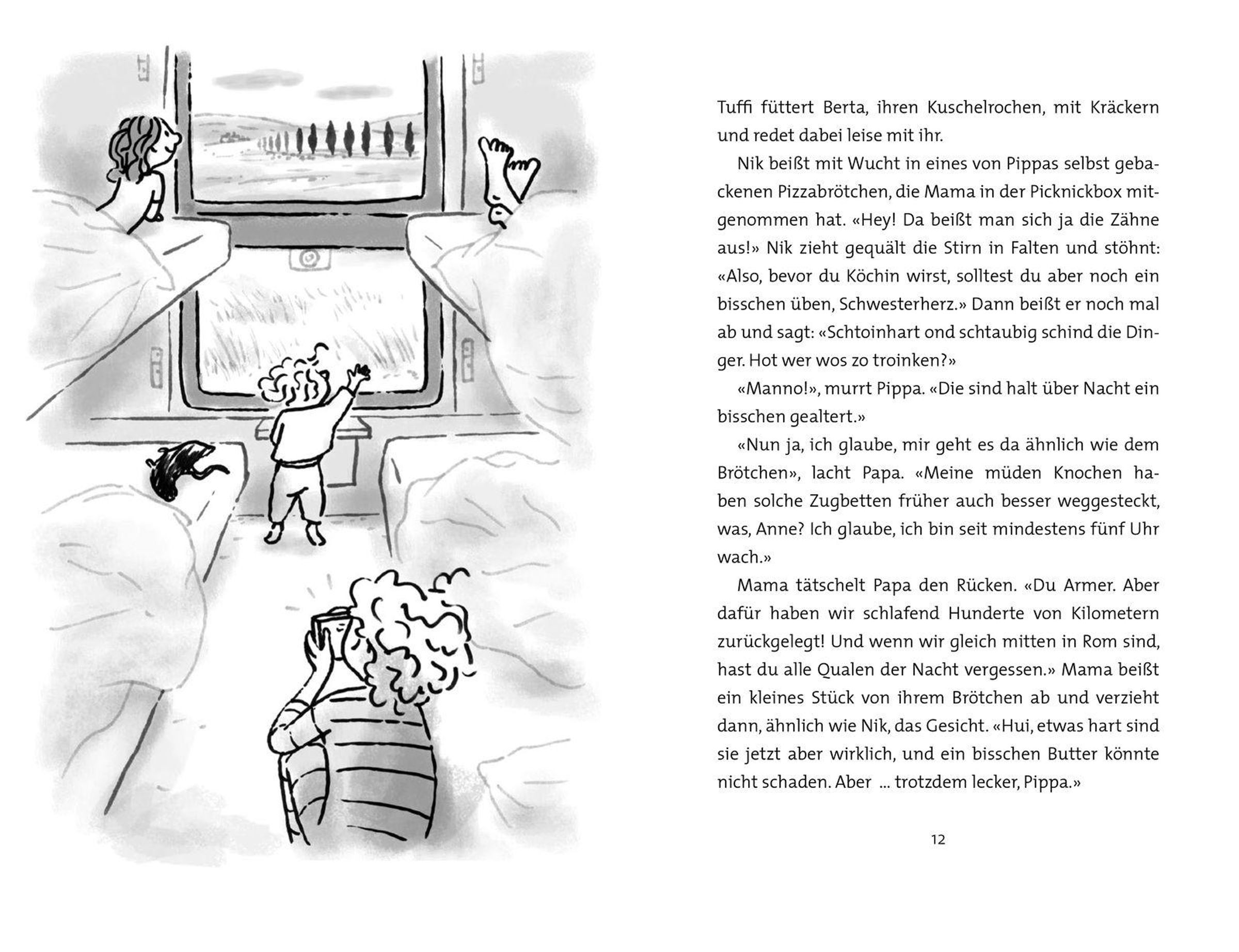 Diesmal geht es für Pippa und ihre reiselustige Familie nach Rom. Das passt gut, denn Pippa möchte seit Neuestem Köchin werden. Als der Besitzer der kleinen Pension in Rom sie einlädt, mit ihm und seinem Sohn Vito Pizza zu backen, geht für Pippa ein Traum in Erfüllung. Vorher lernt sie aber noch die spannende Stadt kennen - sie spielt Wagenrennen im Circus Maximus, schiebt ihre Hand in den <<Mund der Wahrheit>>, wirft eine Münze in den Trevi-Brunnen und sieht vielleicht sogar den Papst hinter einem Fenster des Vatikans. Außerdem lernt sie viele italienische Wörter - und natürlich, wie man Pizza backt.