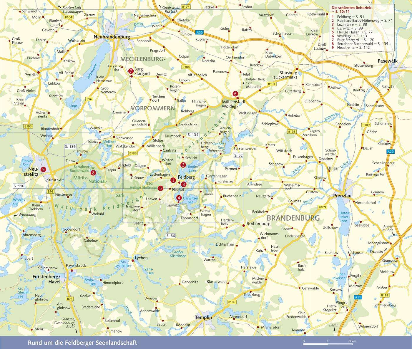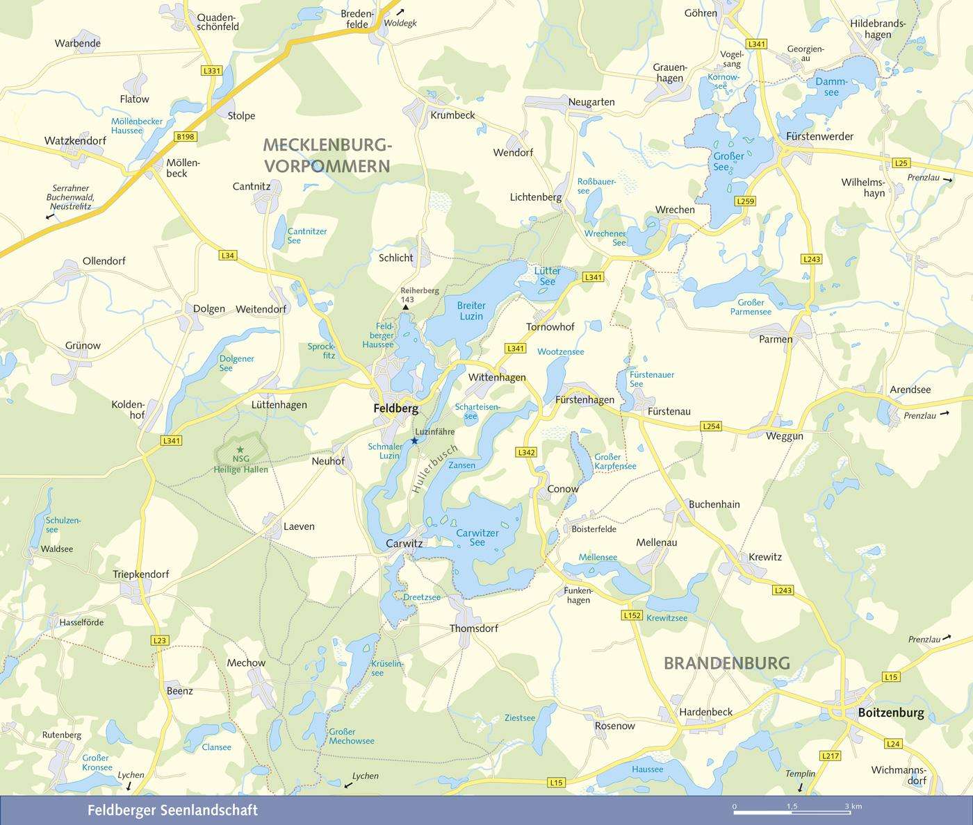 - Mit Feldberg, Carwitz und Luzin-Seen sowie Boitzenburg, Lychen, Neustrelitz, Fürstenberg und Prenzlau
