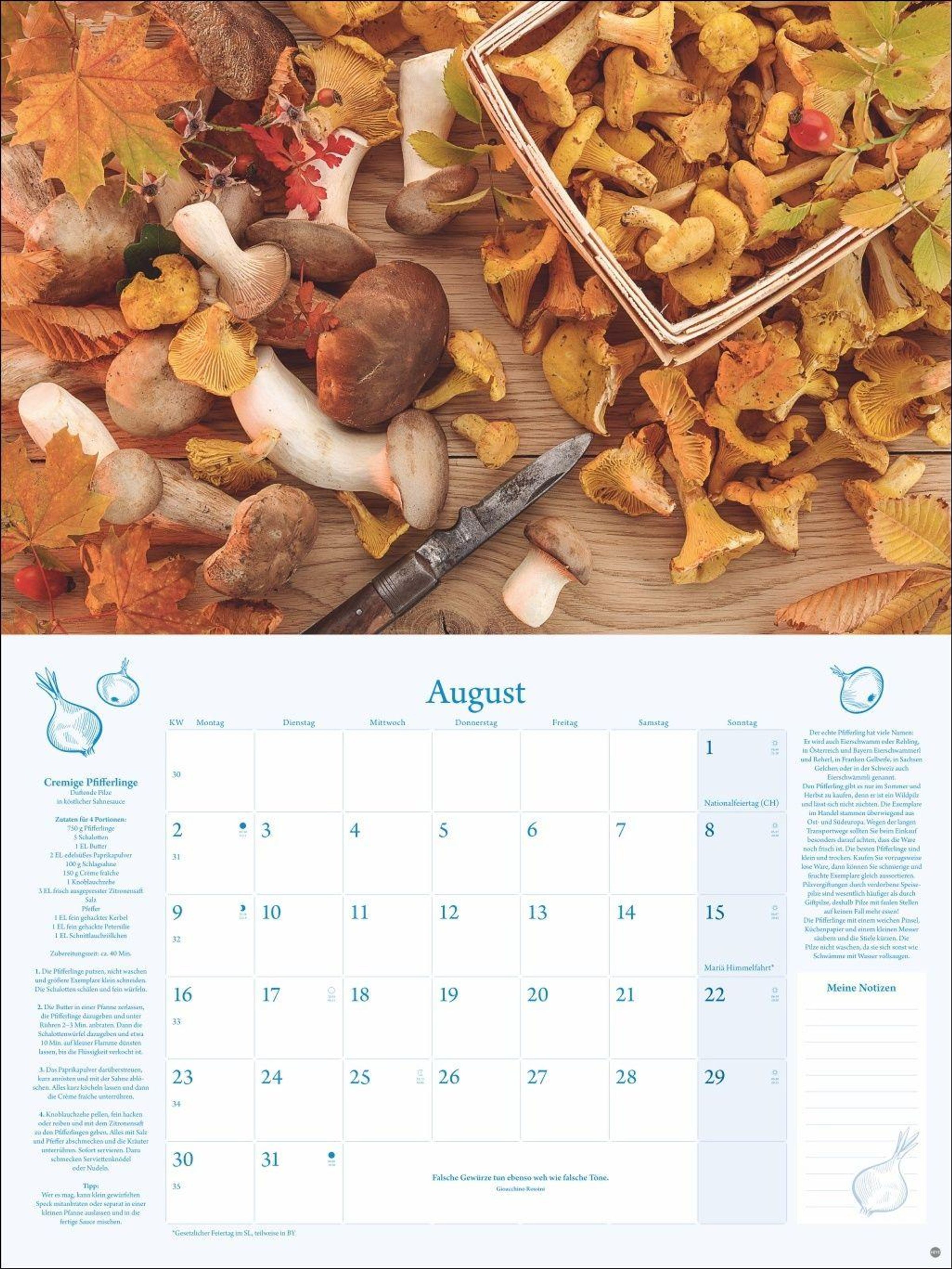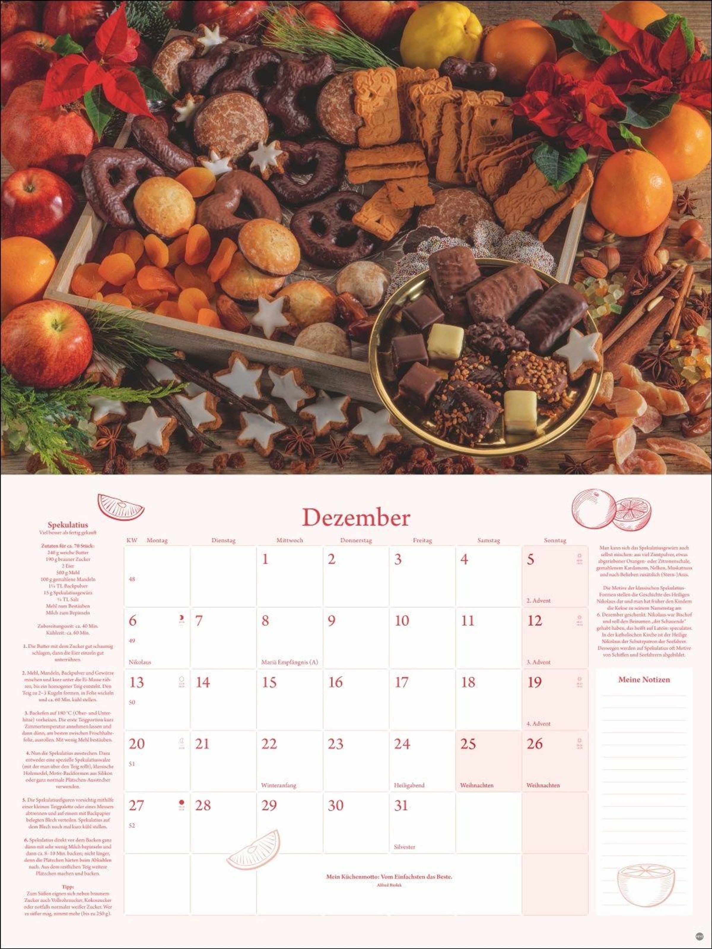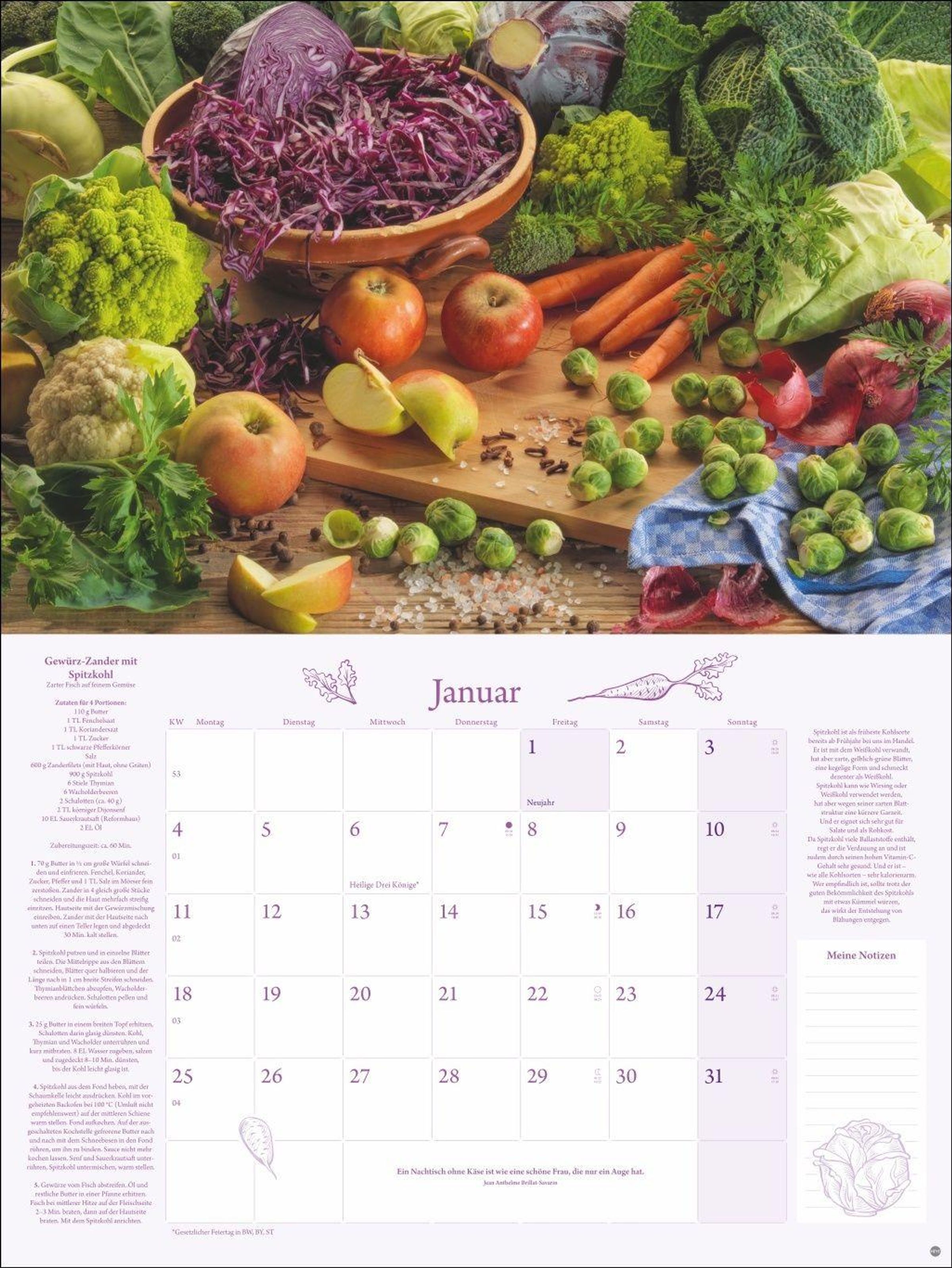- Praktischer und dekorativer Kalender für die Küche: Tolle Fotos, ein monatliches Rezept und viel Platz für Termine in einem hochwertigen Broschürenkalender.