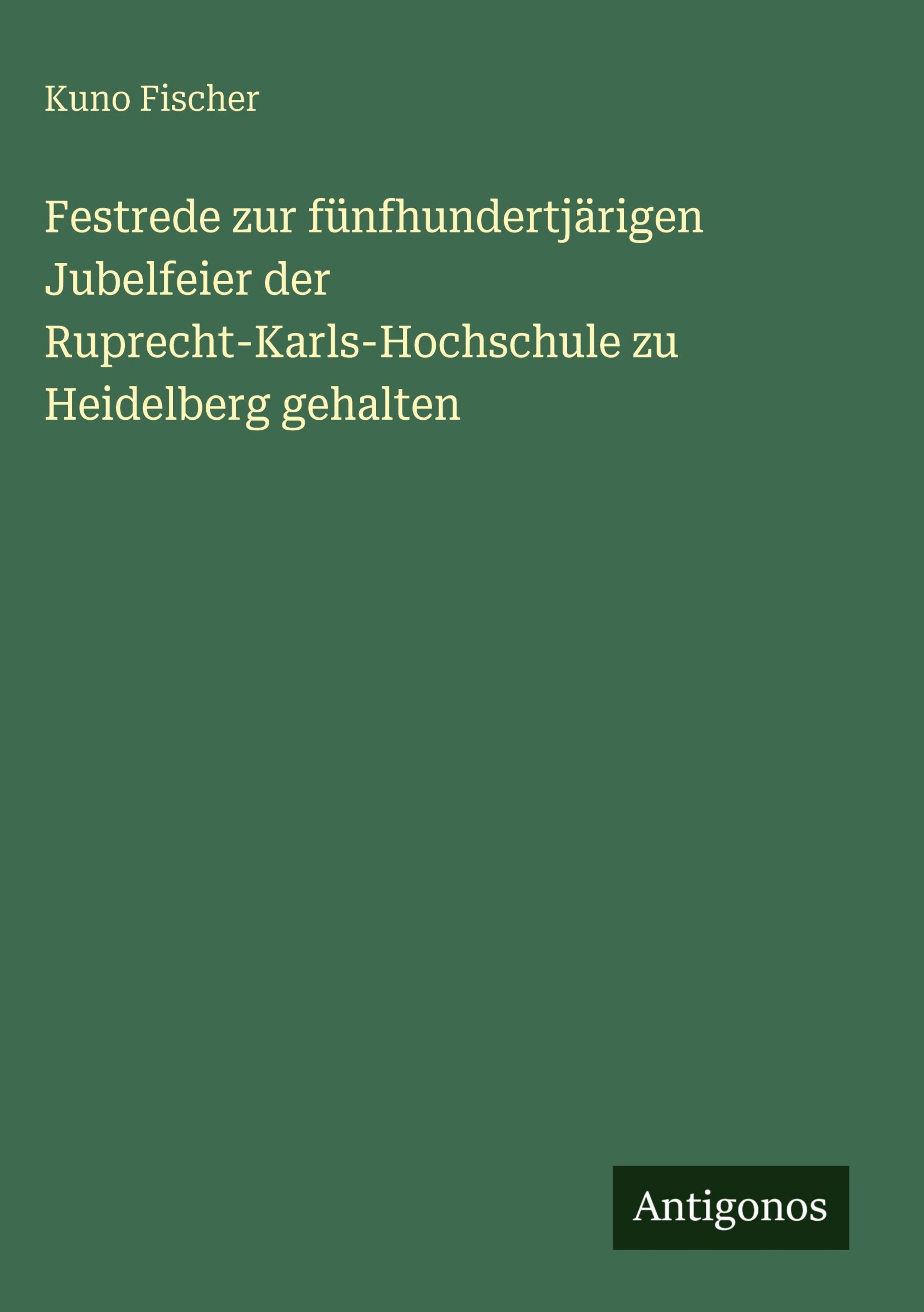 Kuno Fischer: Festrede zur fünfhundertjärigen Jubelfeier der Ruprecht-Karls-Hochschule zu Heidelberg gehalten, Gebunden