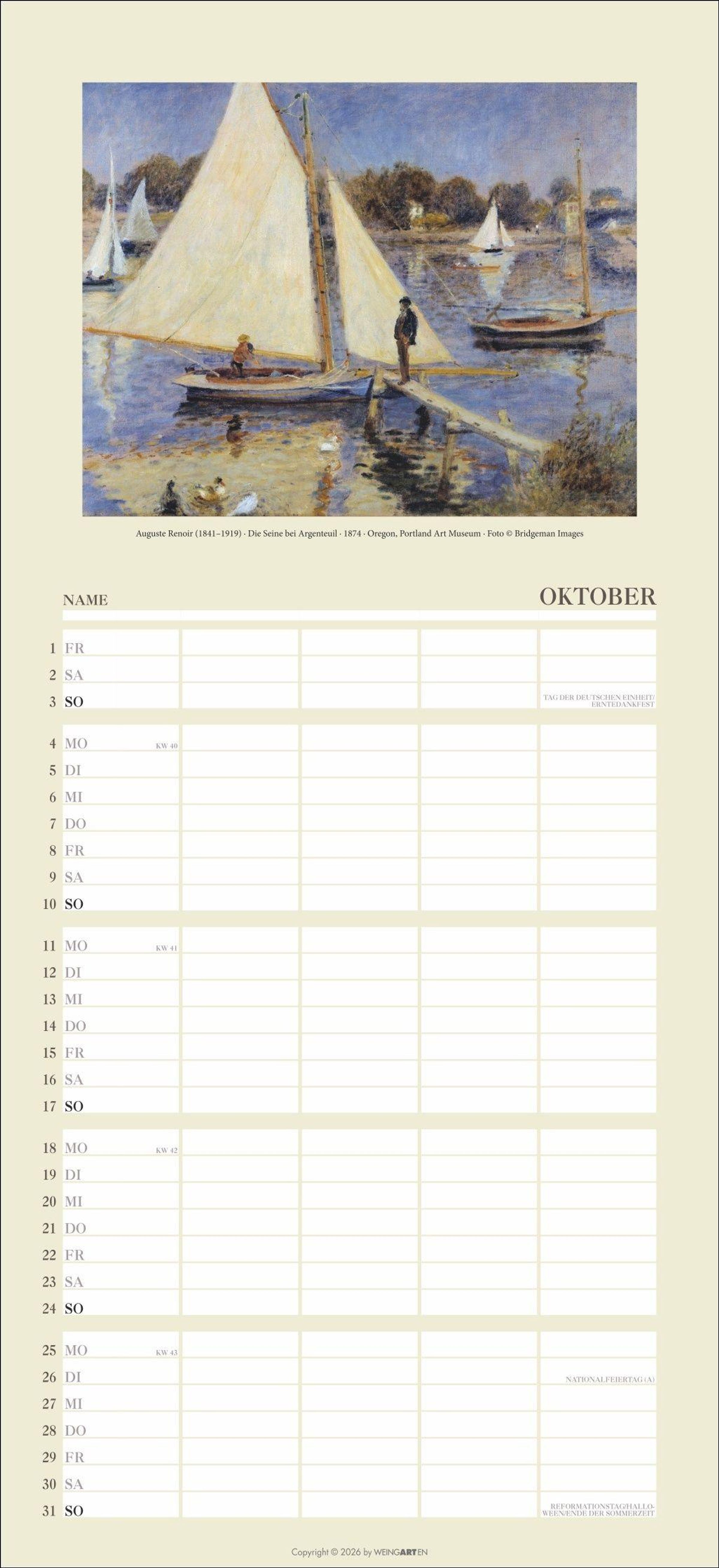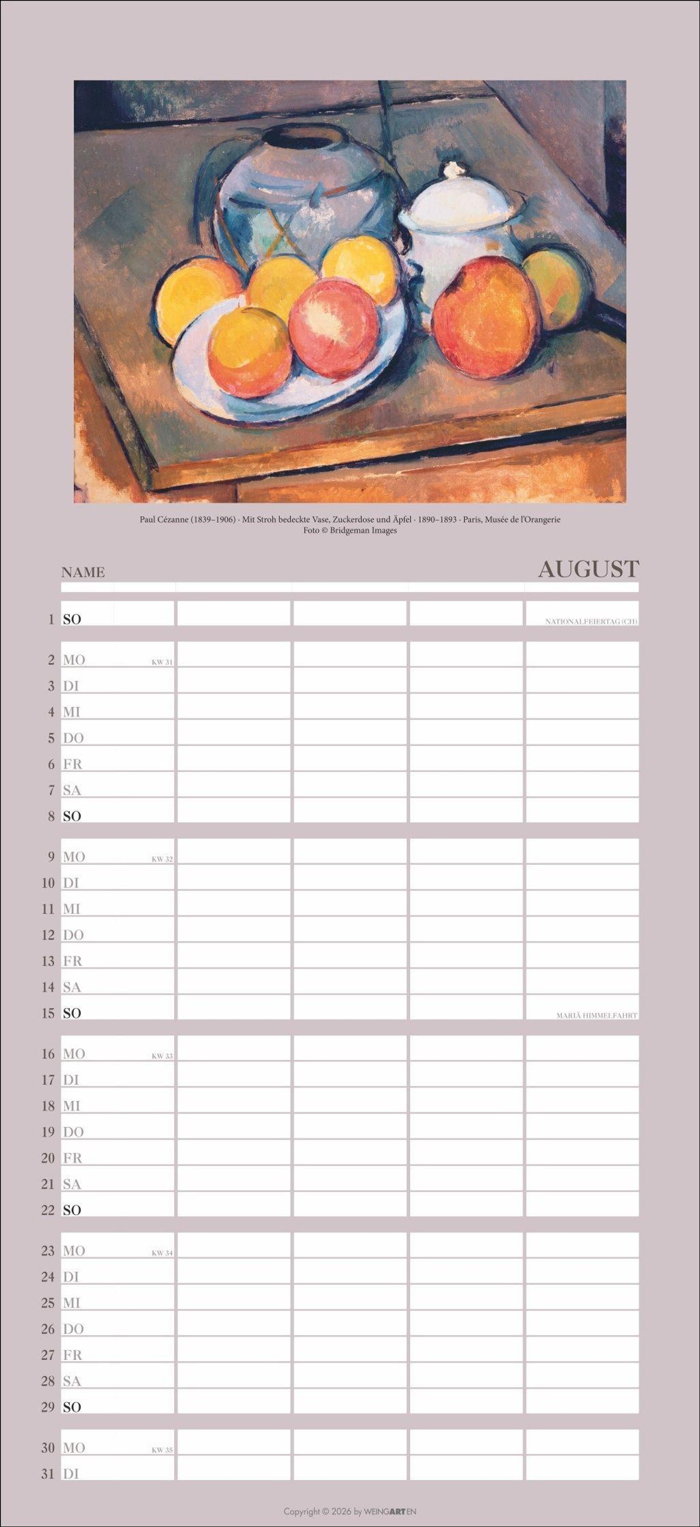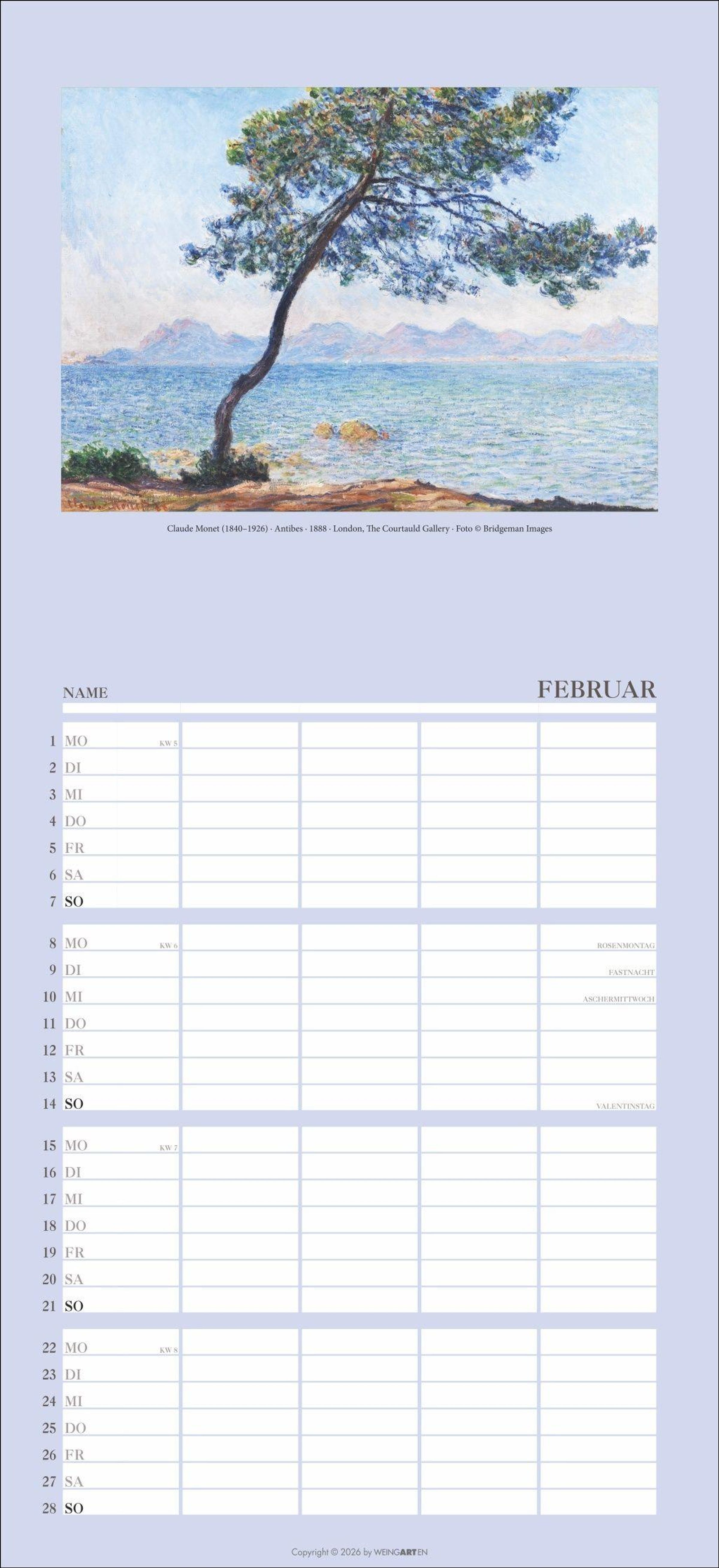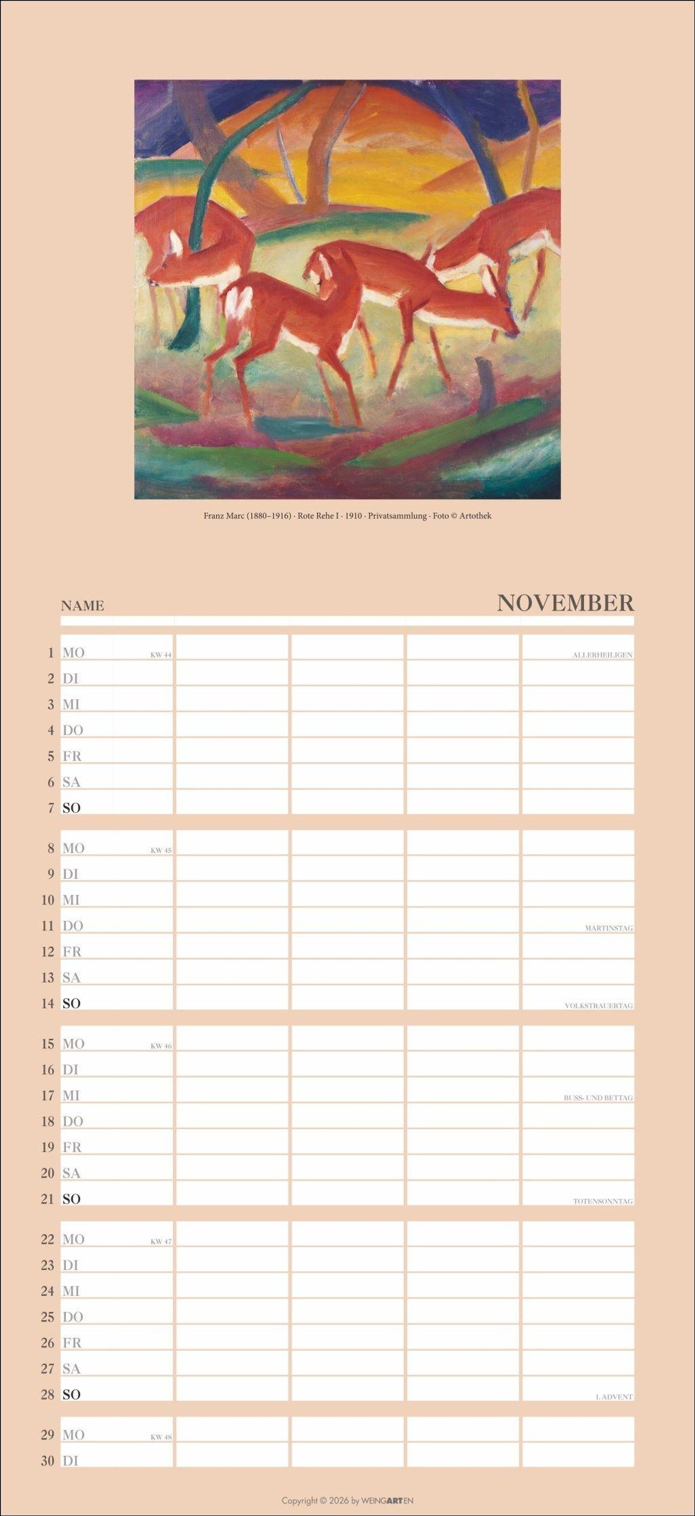 Farbenfrohe Organisationshilfe für den täglichen Termin-Wirrwarr: Terminkalender mit 5 Spalten und einem Kunstwerk pro Monat