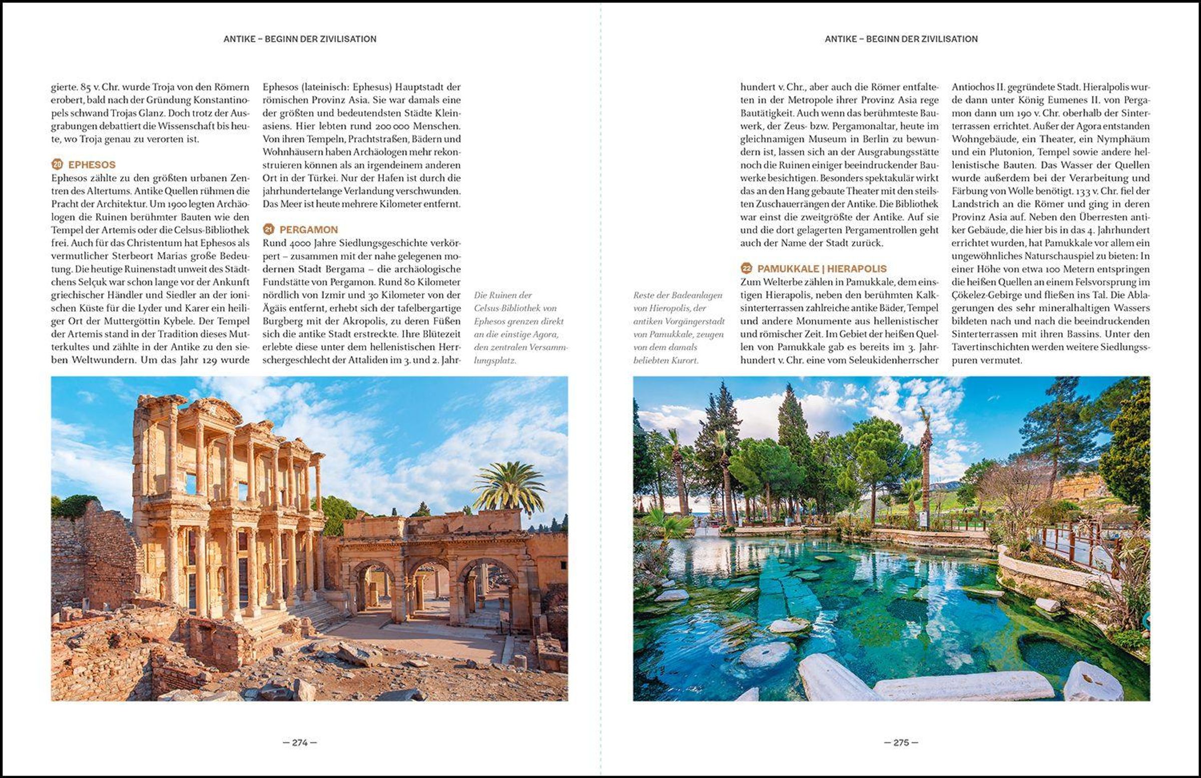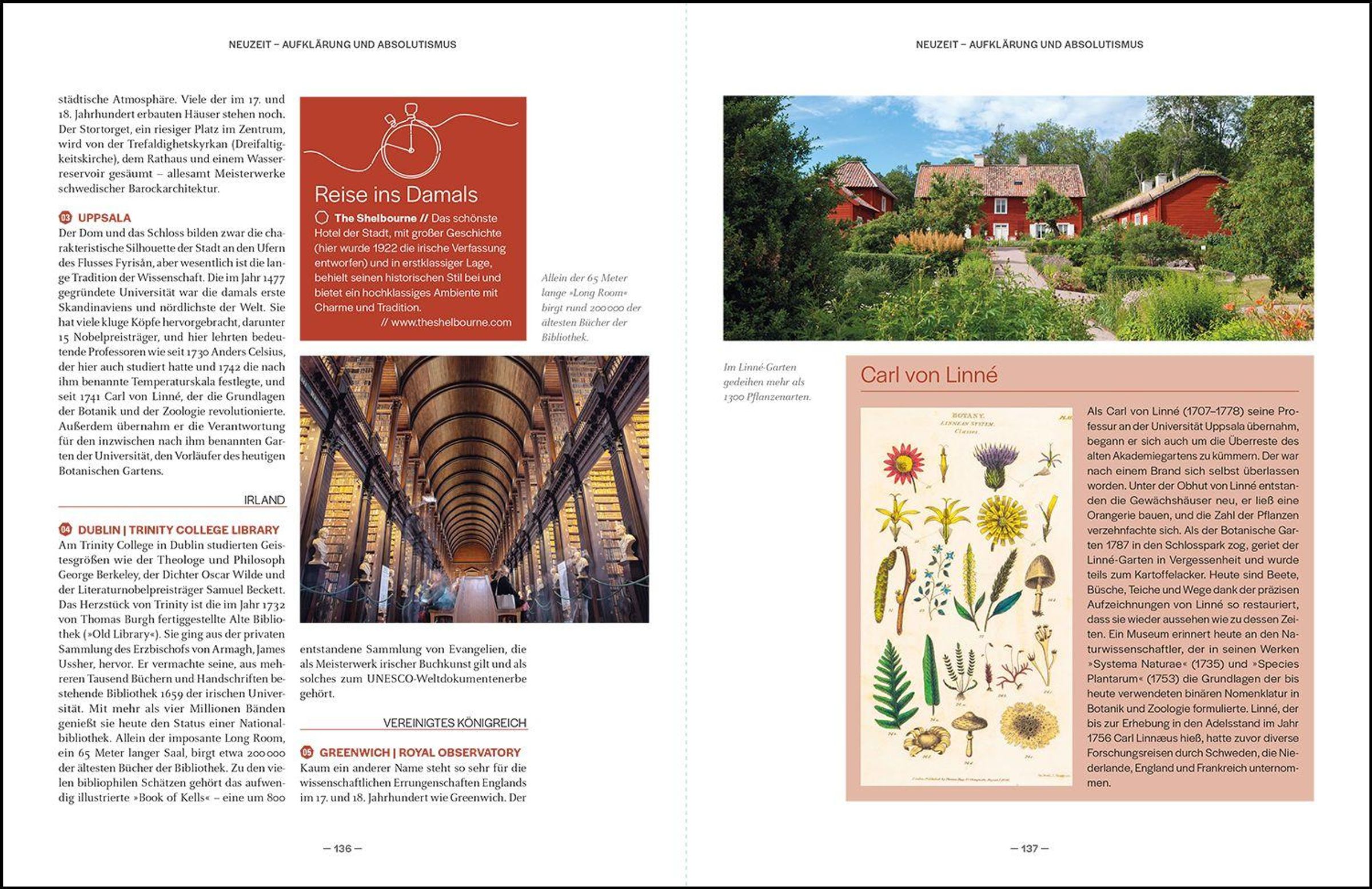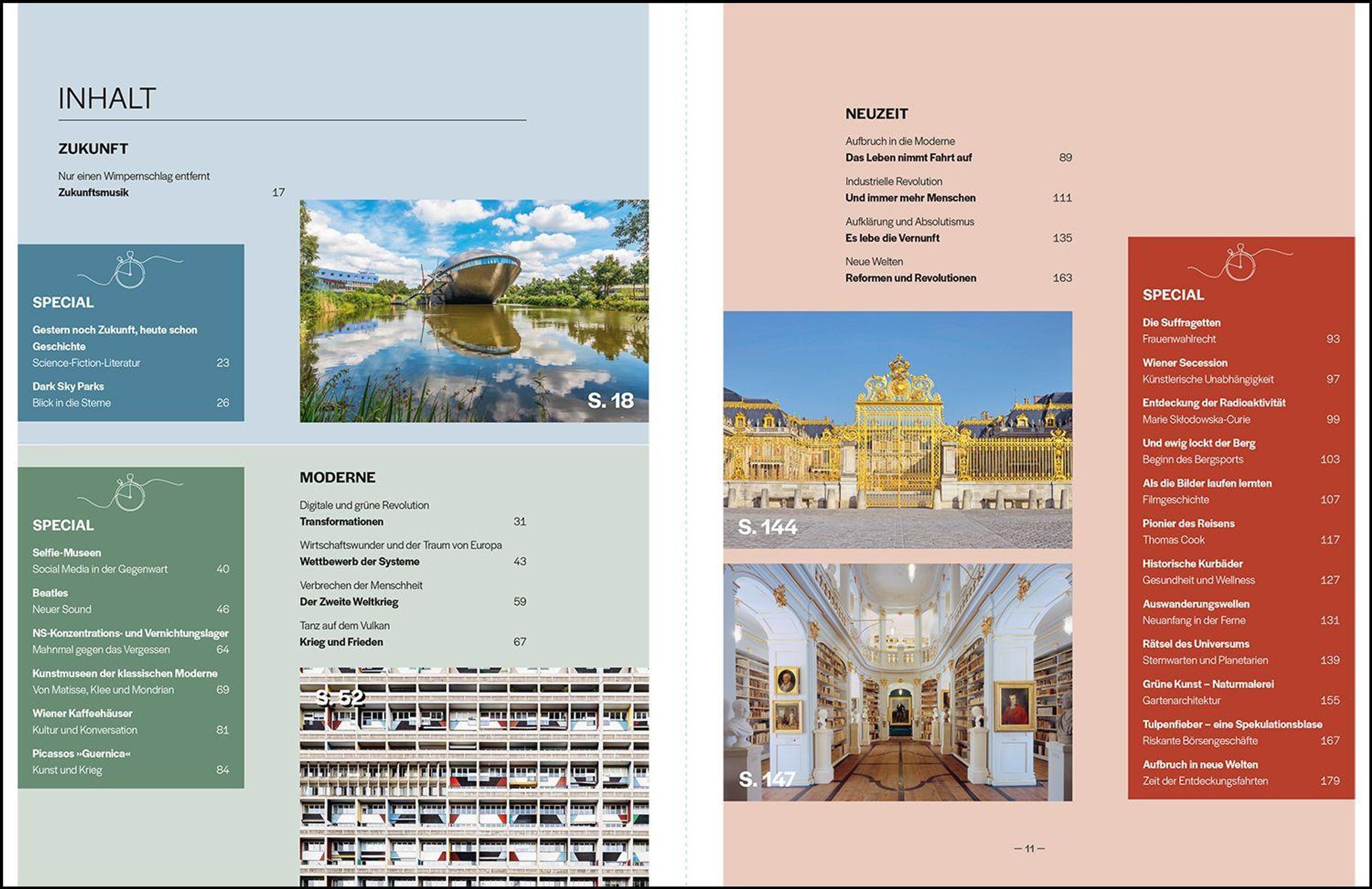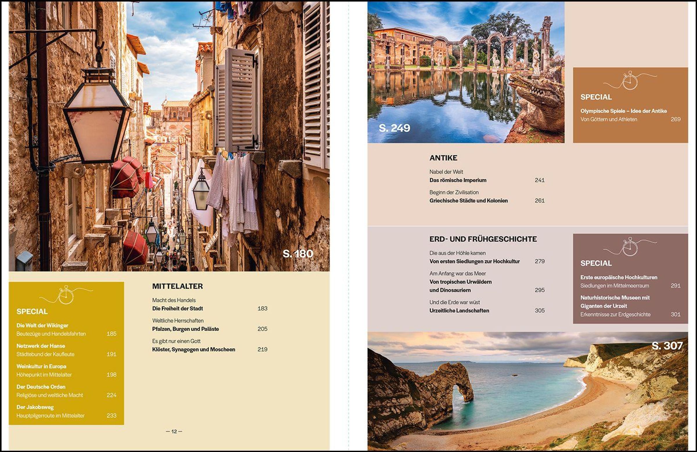 Zeitreisen zurück in die Vergangenheit durch Europa! Das KUNTH Reisebuch "Zeitreise" bietet faszinierende Einblicke in vergangene Zeiten. Echte Dinosaurierspuren lassen sich an der Jurassic Coast entdecken. Wikingersiedlungen und antike Tempel erzählen von mutigen Seefahrern und alten Zivilisationen. Barocke Schlösser lassen uns Reisende im Prunk vergangener Jahrhunderte lustwandeln. Futuristische Museen und Theater schlagen die Brücke zur Gegenwart. Die Special-Seiten im Buch bieten Hintergrundinfos zu Sagen und Legenden, berühmten Persönlichkeiten und geschichtlichen Fakten. Ein Muss für Geschichtsfans!
