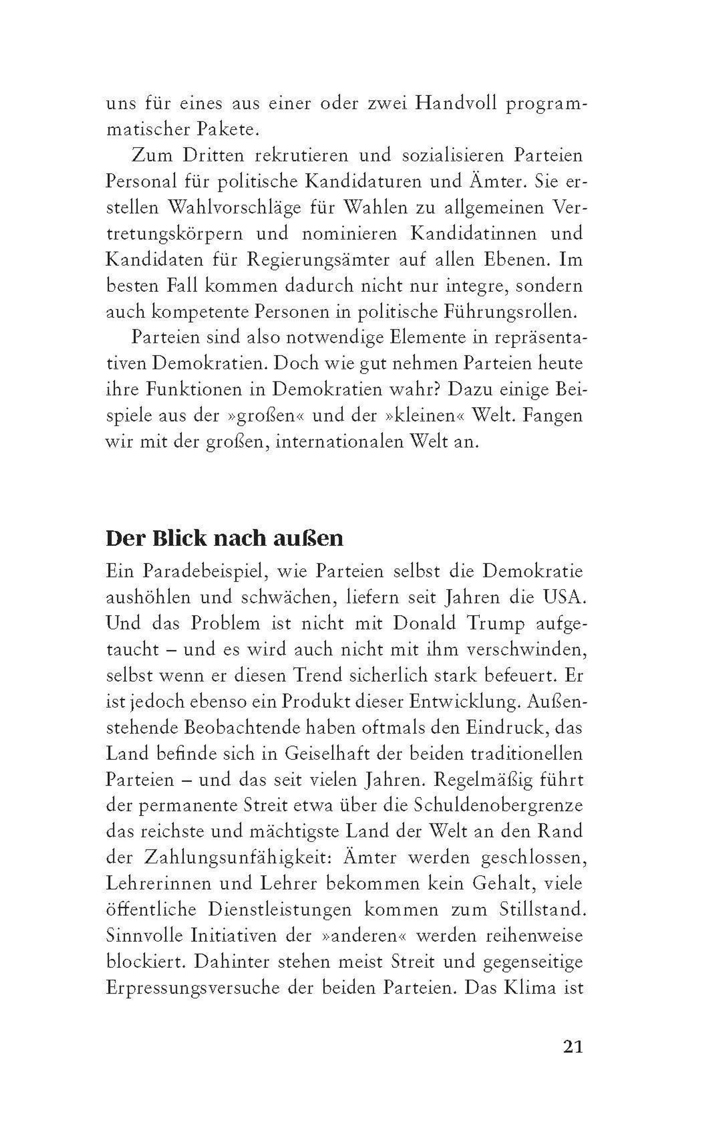 Die ehemals tragenden Säulen der modernen Demokratie, unsere Parteien, wirken heute wie gelähmt. Stillstand, Vertrauensverlust und mangelnde Reformbereitschaft lassen Bürgerinnen und Bürger an Parteien zweifeln. Und auch wenn in der medialen Politik-Diskussion immer wieder einzelnen Personen in den Vordergrund gestellt werden, so liegen die Ursachen dieser katastrophalen Entwicklungen doch meist tiefer, in den inneren Dynamiken von Parteien.