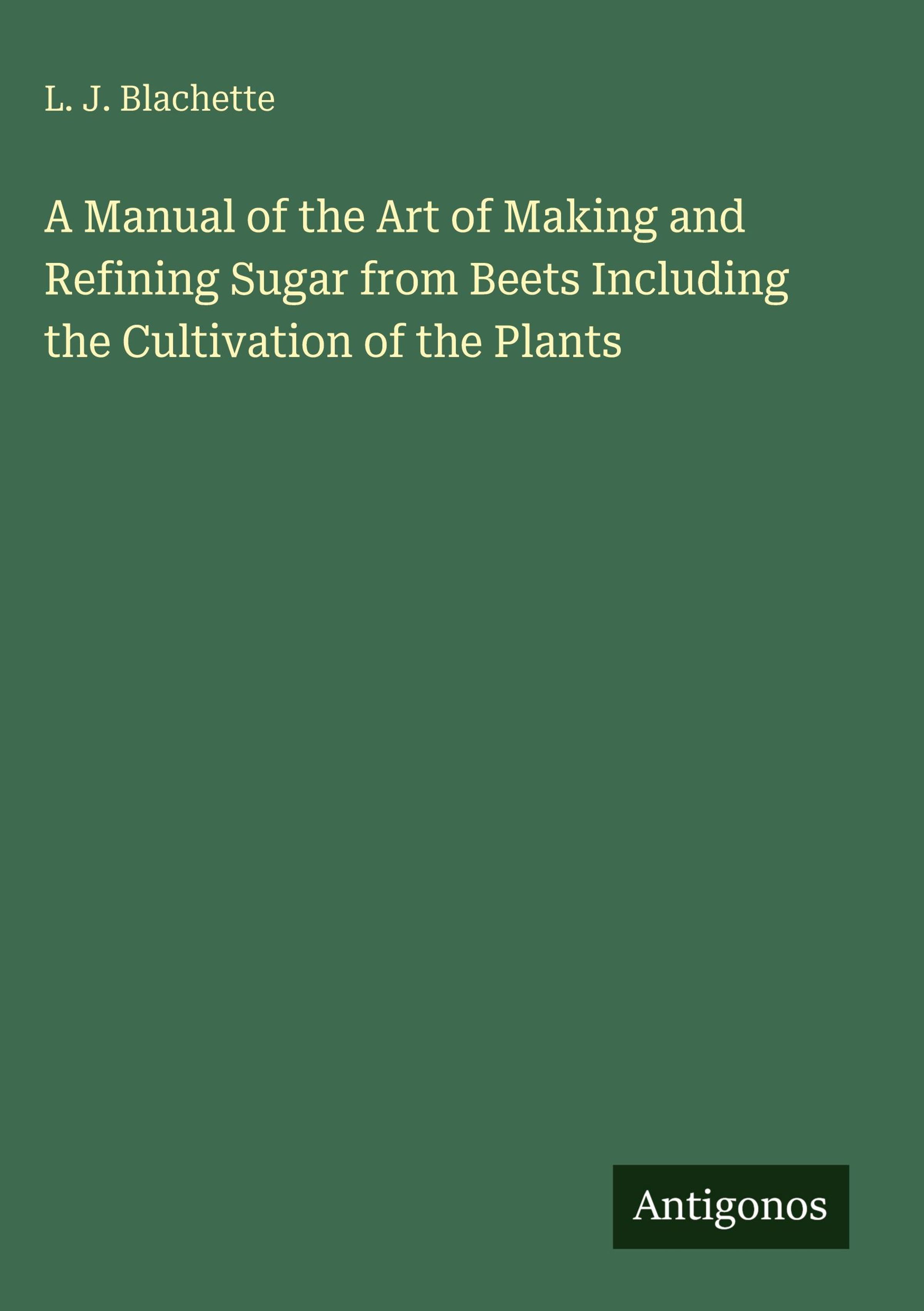 L. J. Blachette: A Manual of the Art of Making and Refining Sugar from Beets Including the Cultivation of the..., Gebunden